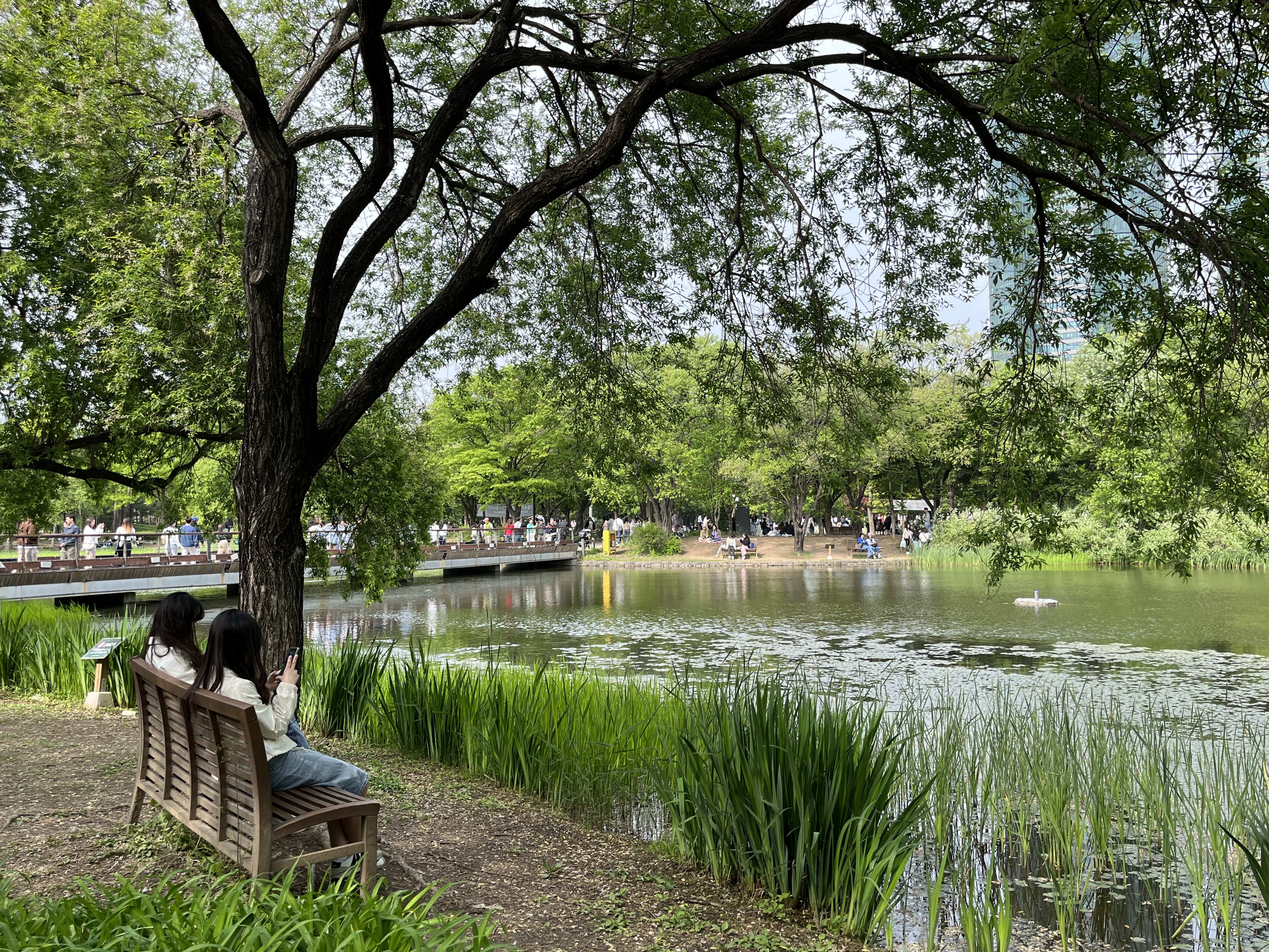 여름의 녹음이 짙을 때 가장 아름답다고 생각하는 서울숲 스팟은 바로 별빛정원인데요. 커다란 저수지 주변으로 멋진 나무들이 심어져 있어 여유로움과 힐링을 느낄 수 있습니다. 또한 저수지 주변으로 벤치가 있어 사색을 즐기기에도 좋아요.