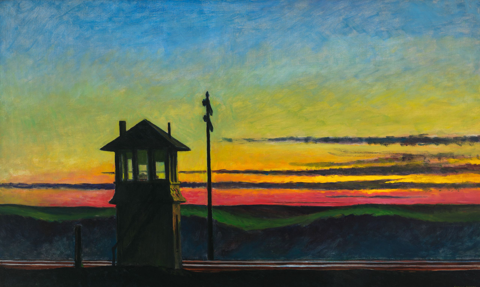 도시와 자연을 오가는 호퍼의 시선을 명확하게 느낄 수 있는 그림은 ‘길 위에서’라는 특별 섹션에 전시된 <철길의 석양>이라는 작품입니다.