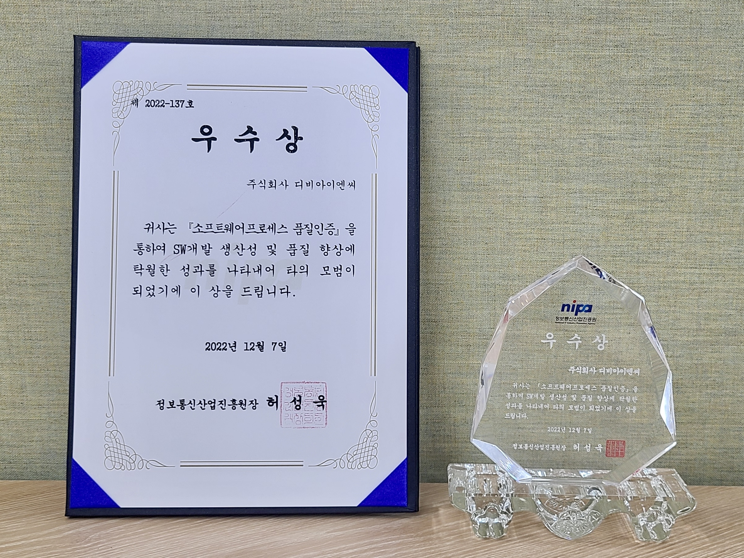 이 같은 노력으로 DB Inc. 품질서비스팀은 지난 2022년 12월 7일 제29회 SW 퀄러티 인사이트 컨퍼런스에서 '소프트웨어 프로세스 품질인증' 정보통신산업진흥원장상(우수상)을 수상하기도 했다.