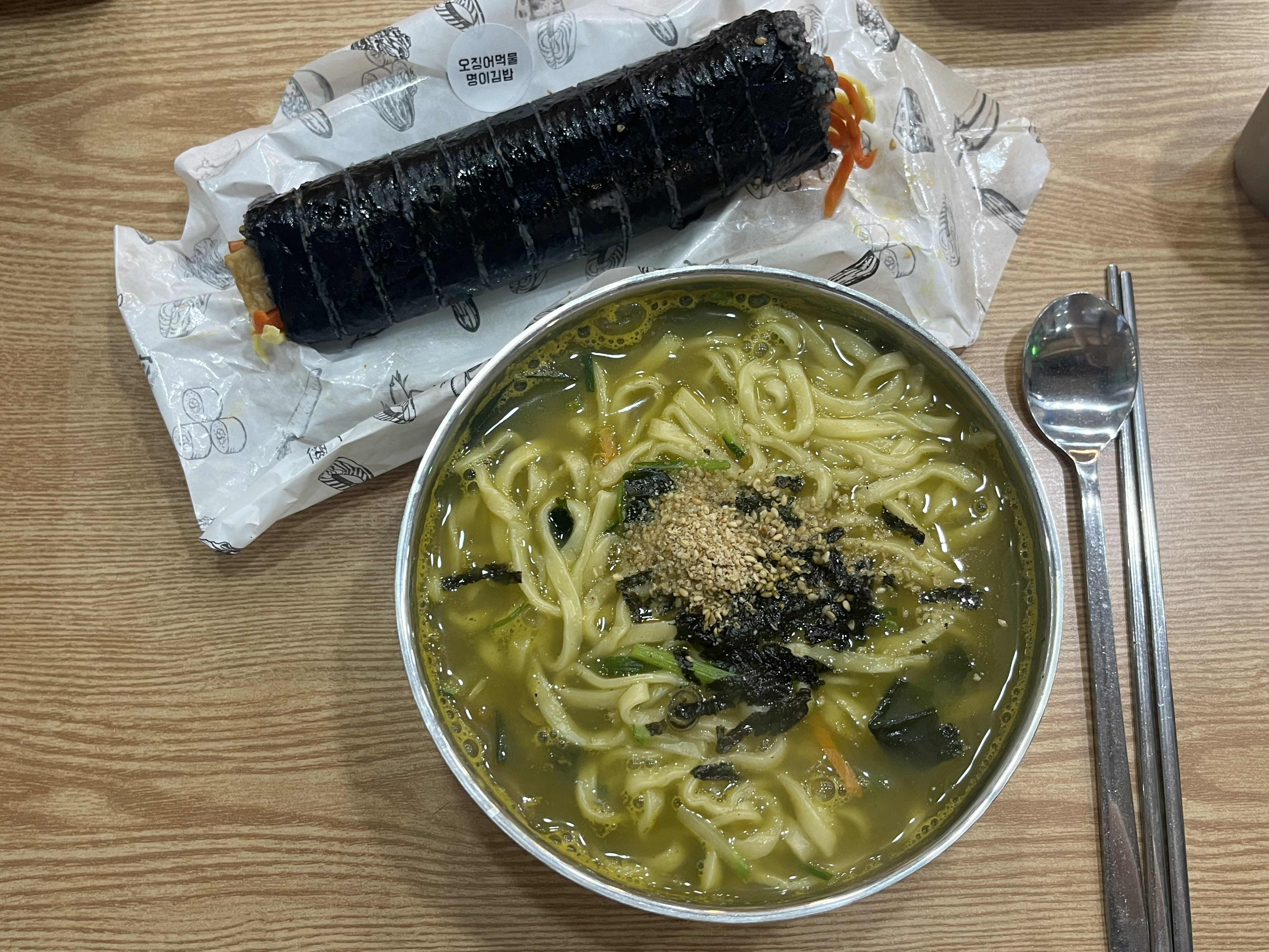 함께 주문한 김밥은 오징어 먹물 명이 김밥이었는데, 울릉도가 오징어와 명이나물, 부지갱이나물, 독도새우, 따개비 등이 유명하기 때문에 관련 음식들이 많이 보이는 편입니다.