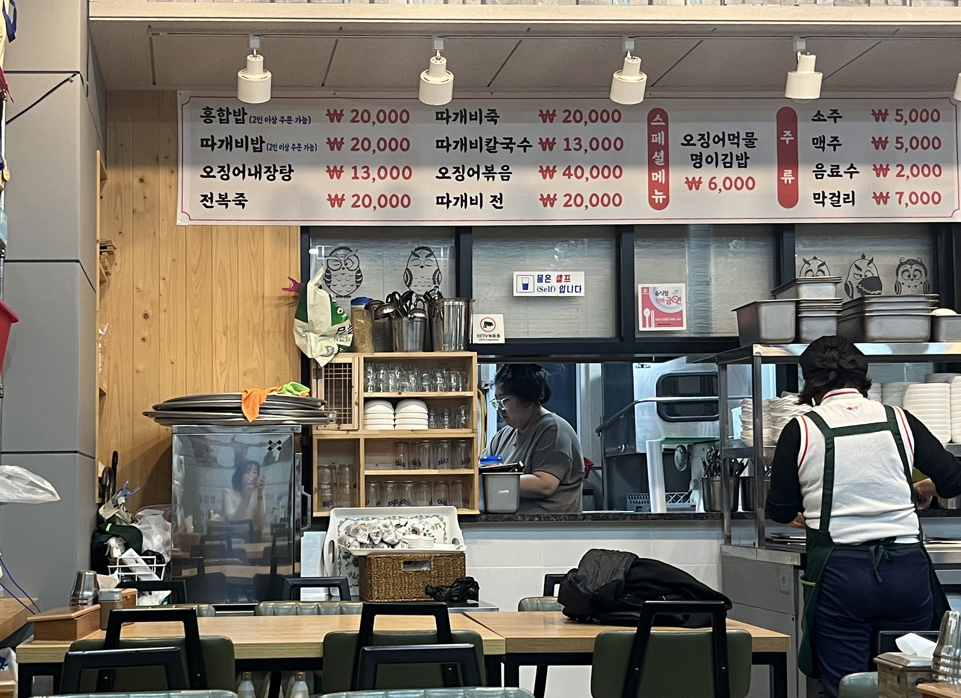 • 메뉴 : 따개비칼국수 13,000원, 따개비전 20,000원, 오징어먹물명이김밥 6,000원 등