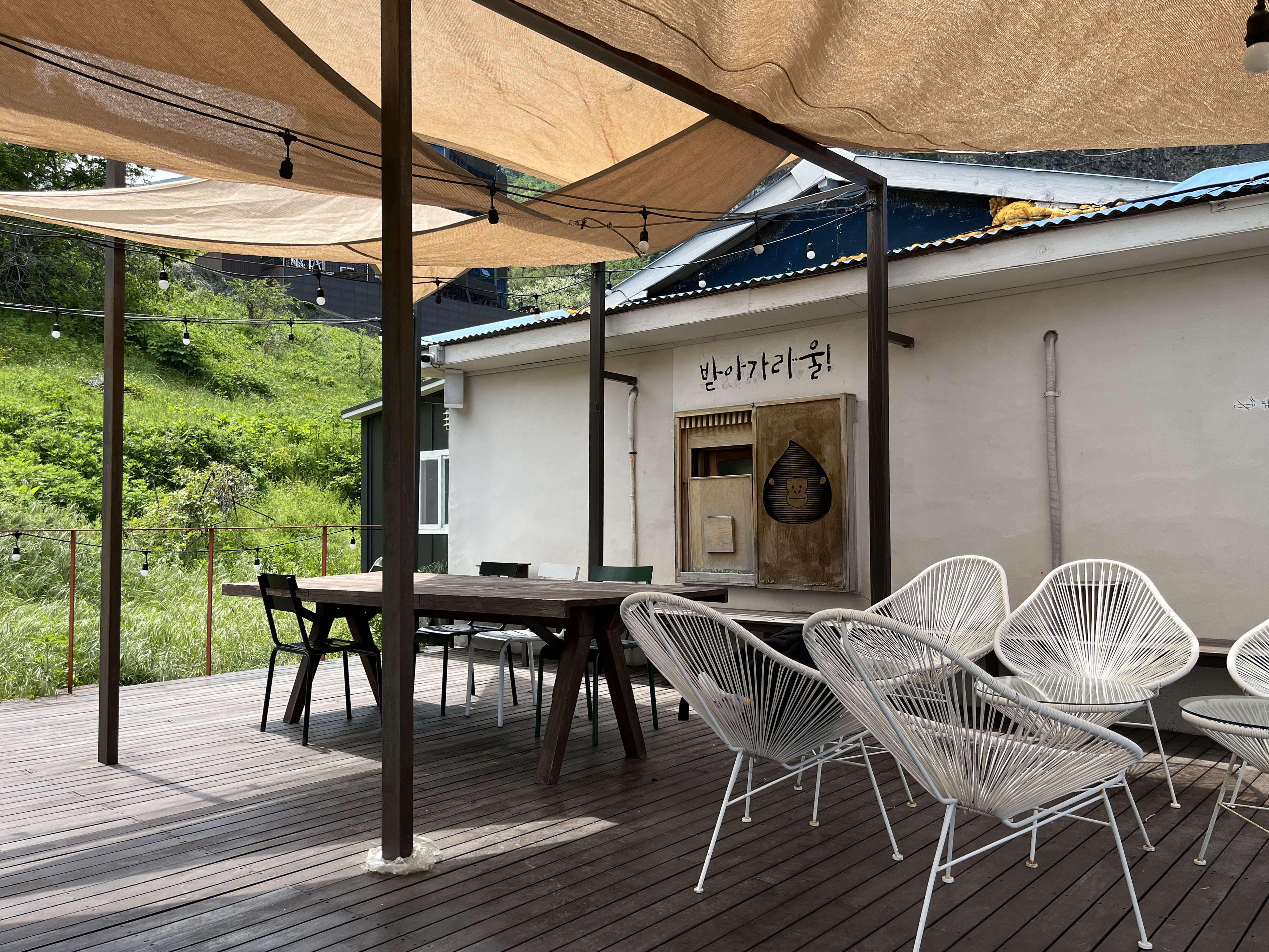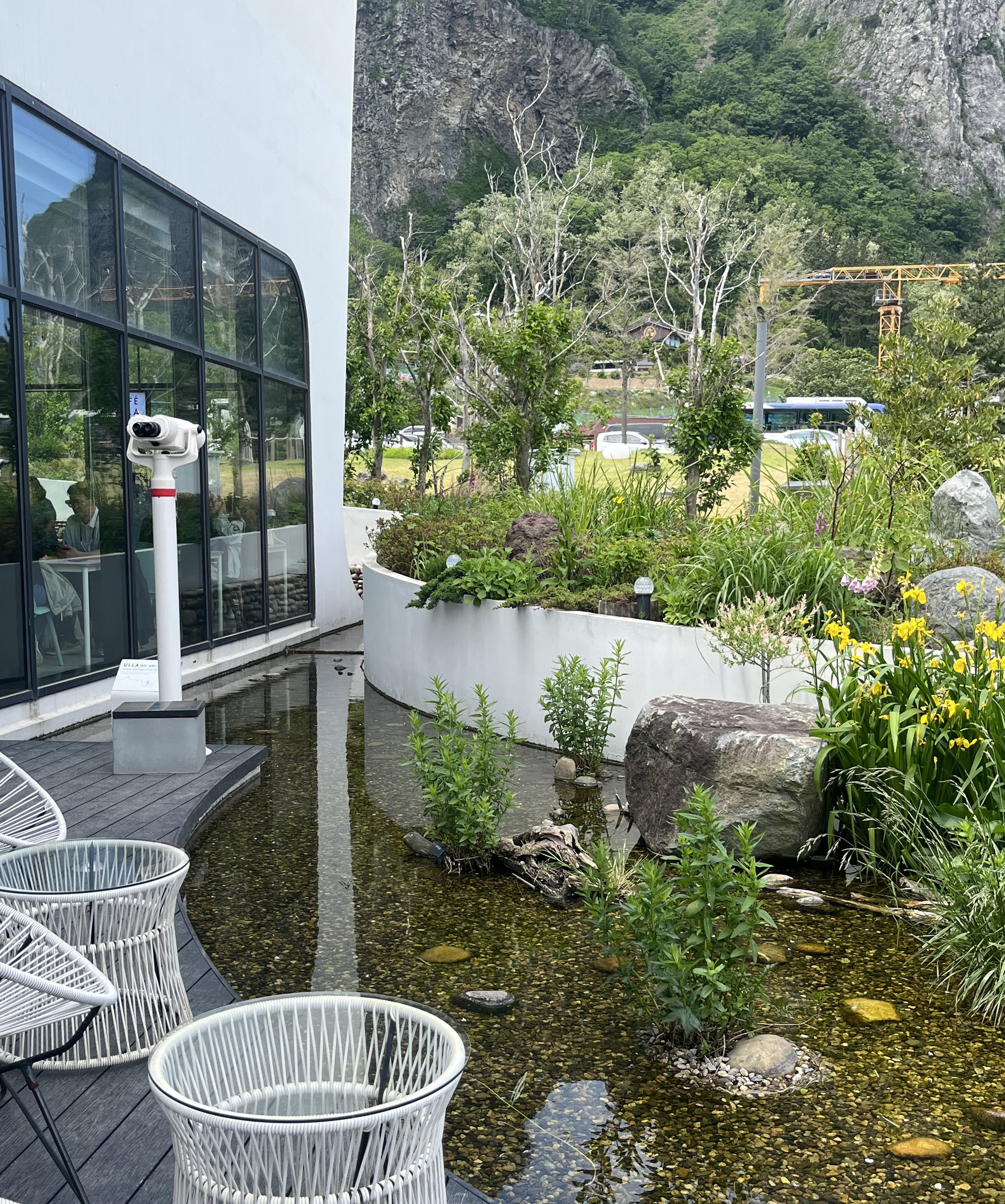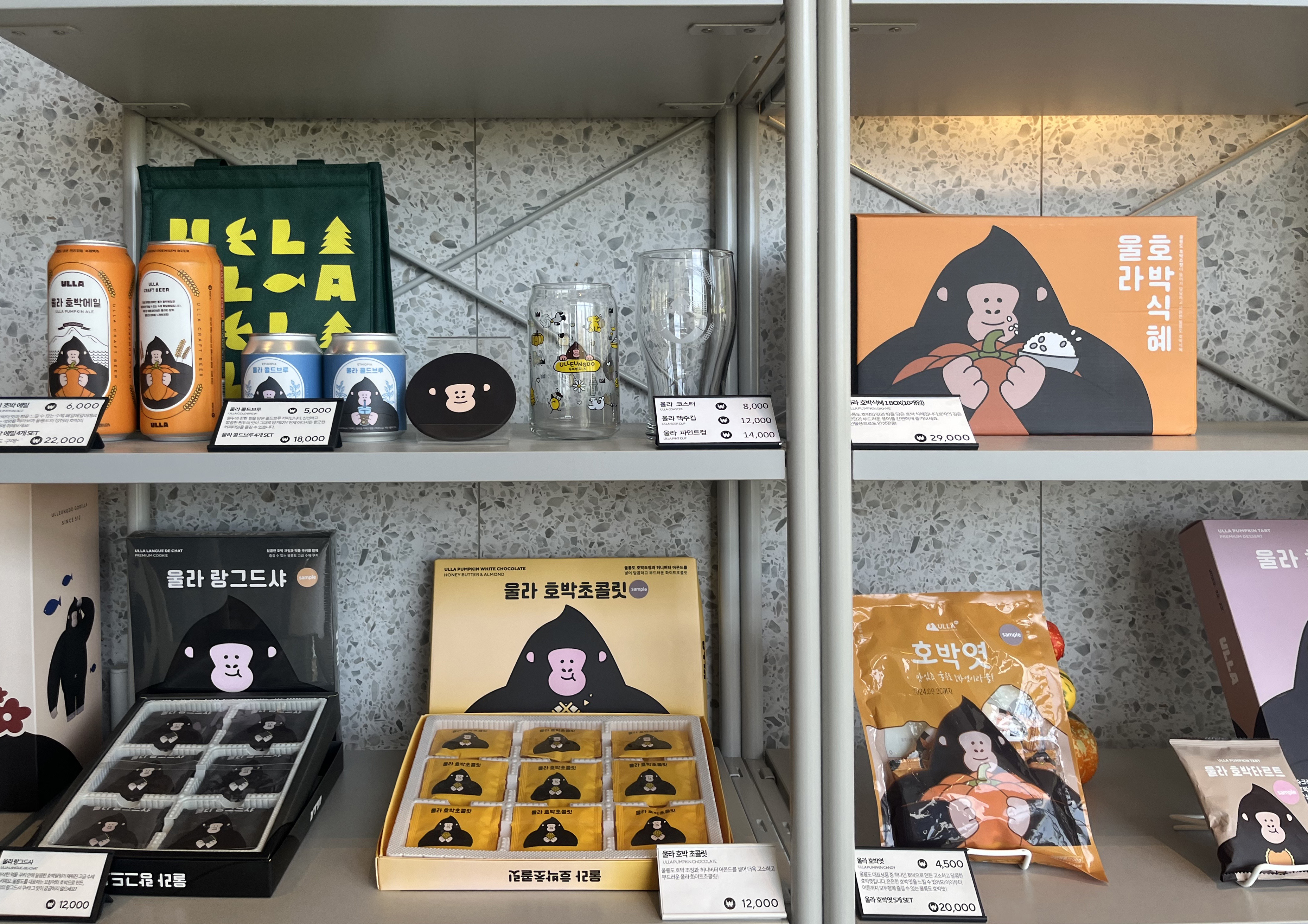 울라는 ‘울릉도 고릴라’의 줄임말입니다. 송곳산의 봉우리 중 하나가 고릴라의 옆통수를 닮았다고 하여 울릉도 고릴라가 탄생하였다고 합니다. 코스모스 리조트의 마스코트와 같은 이 울라는 카페 음료를 시킬 때 큐브라떼 속 커피 큐브로, 생크림이 올라간 음료 위의 마시멜로우가 올라가지요. 코스모스 리조트 건축물 자체가 아름다워 카페 야외에서 티타임을 하기에도 여유로움을 한껏 느낄 수 있습니다.