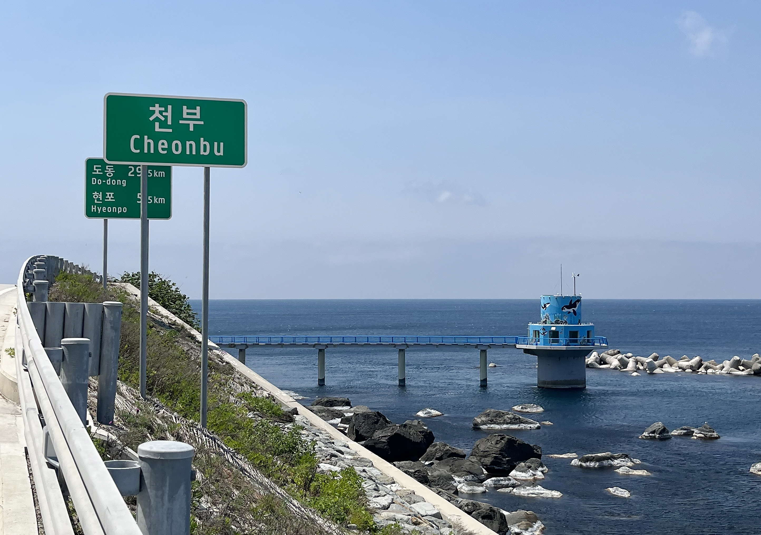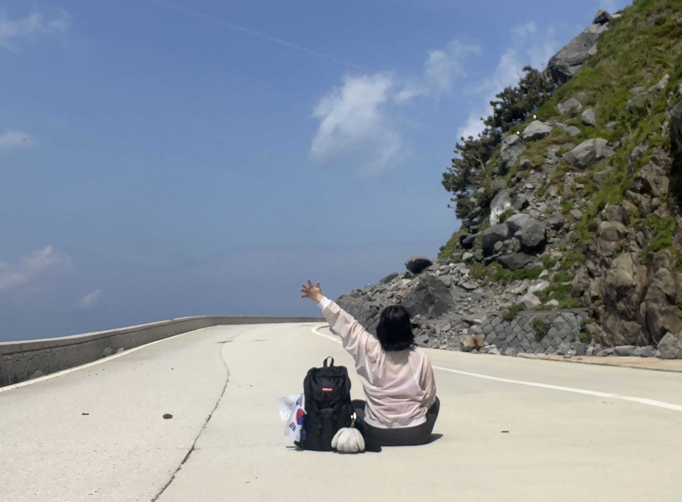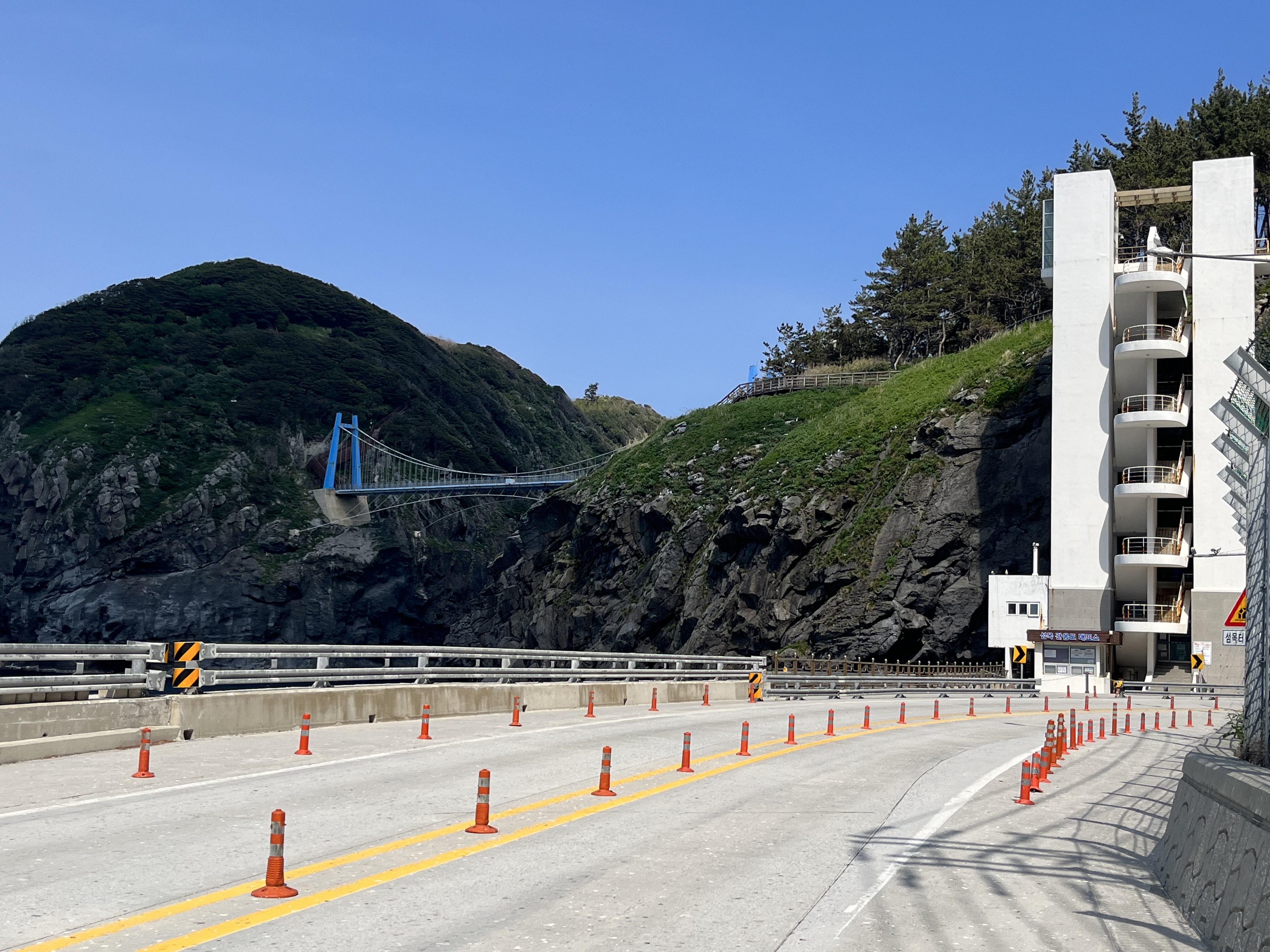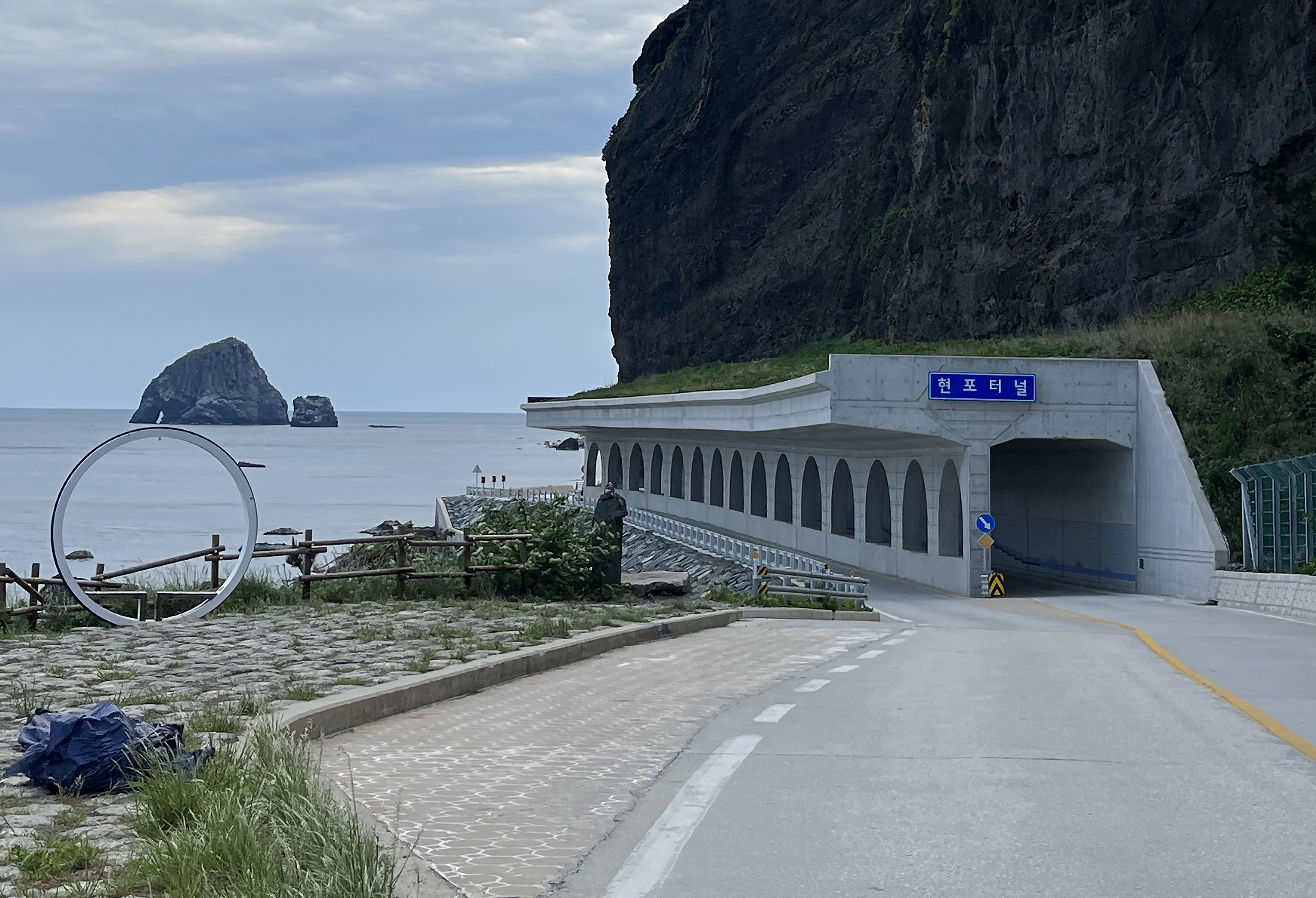 삼선암을 만나기 전, 도로를 걸으며 해안 도로 넘어 보이는 바다와 바로 위에 보이는 기암절벽들이 눈에 들어옵니다. 이 길가를 걷다 보면 유독 갈매기가 많은가 싶었는데 알고 보니 괭이갈매기 서식지여서, 코앞을 날아가는 괭이갈매기를 가까이에서 볼 수 있는 재밌는 경험이었습니다.