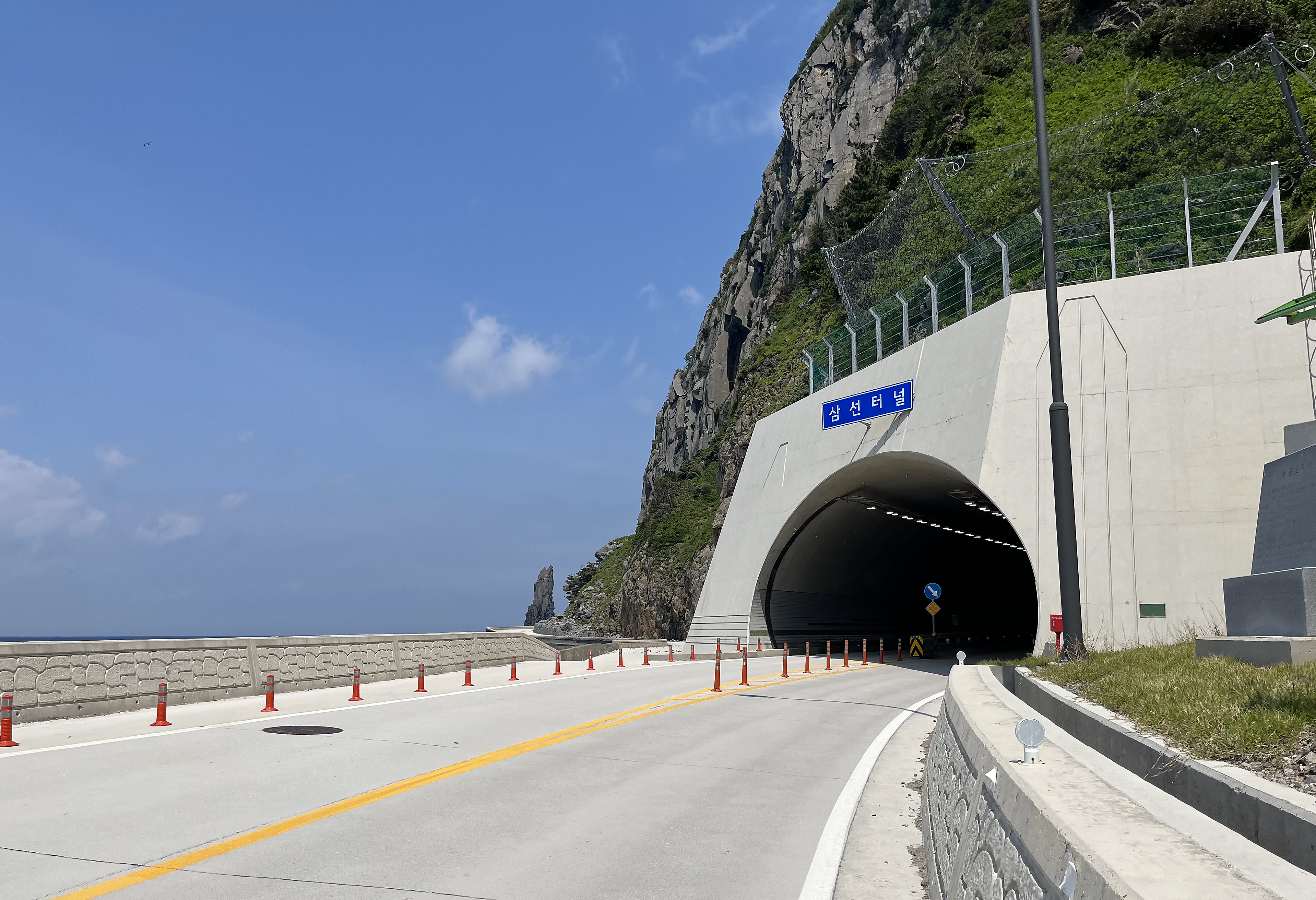 삼선암은 삼선 터널 옆으로 나 있는 작은 해안 도로로 걷다 보면 만날 수 있어요. 이 좁은 해안 도로는 따로 차량이 들어갈 수 없다 보니 더욱 마음 편하게 사진을 찍고 풍경을 즐길 수 있다는 것도 매력적이랍니다.