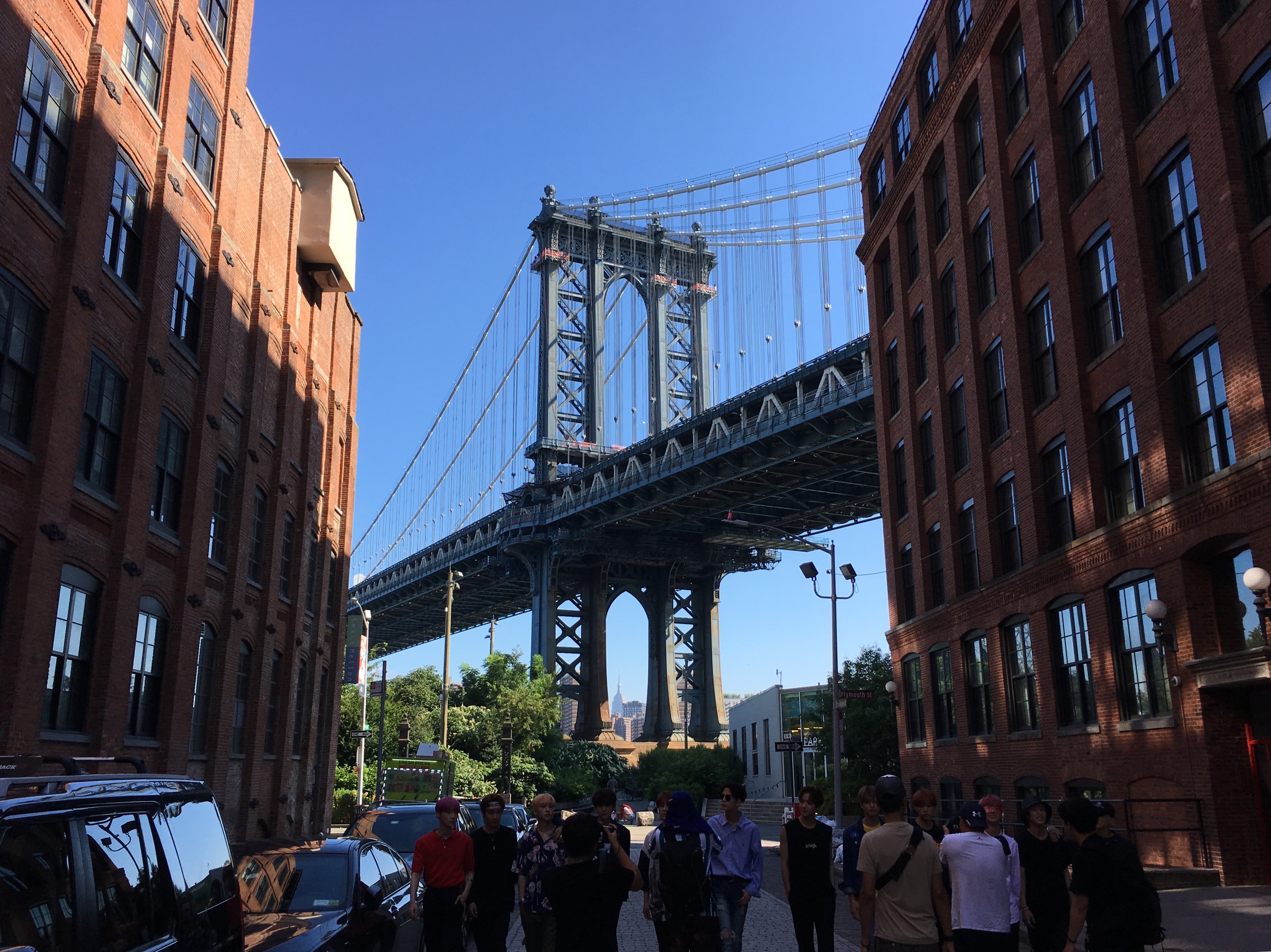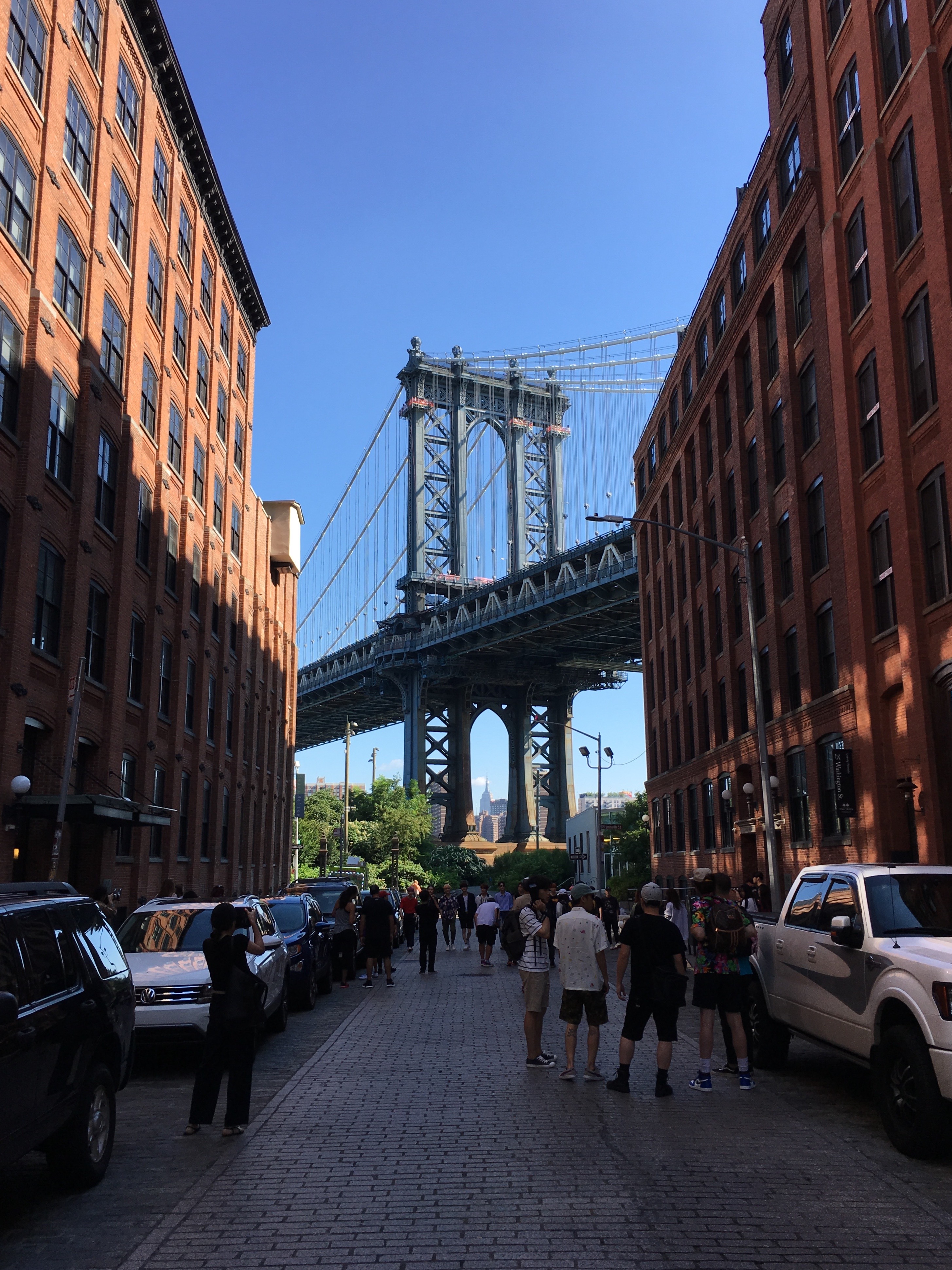 건물 사이로 보이는 맨해튼 브리지가 보이는 이곳이 그 유명한 덤보 포토 스팟인데, 워싱턴 스트리트(Washington St.)와 워터 스트리트(Water St.)가 만나는 지점에 있어요.