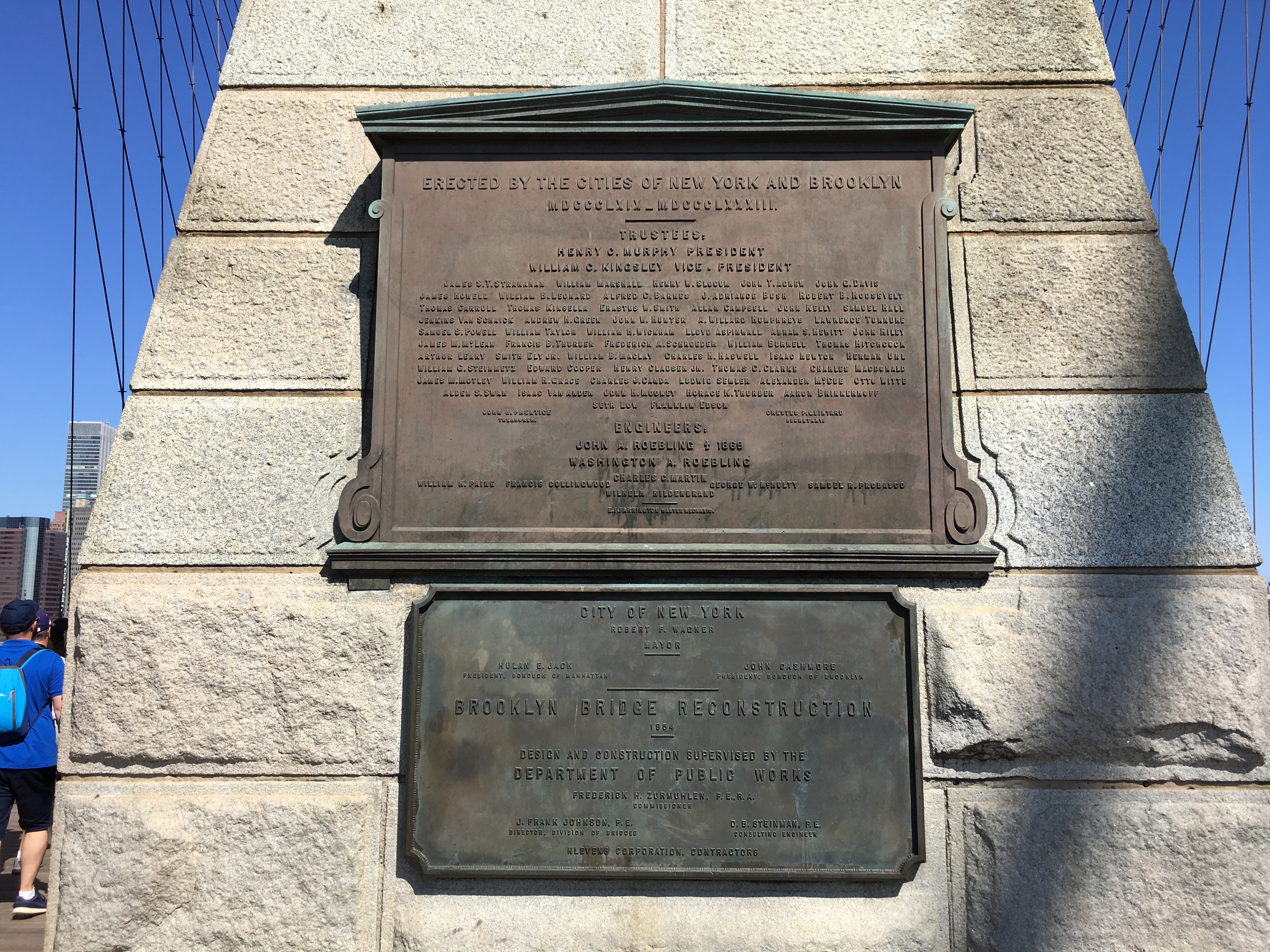 존 로블링은 프로젝트를 맡은 지 얼마 되지 않아 건설 도중 사망했는데, 작업 현장 감독 중 배에서 다리를 짓이기는 상처를 입게 됩니다. 이 파상풍이 합병증으로 커져 다리 절단 수술을 받지만, 얼마 후 결국 숨을 거두고 맙니다.