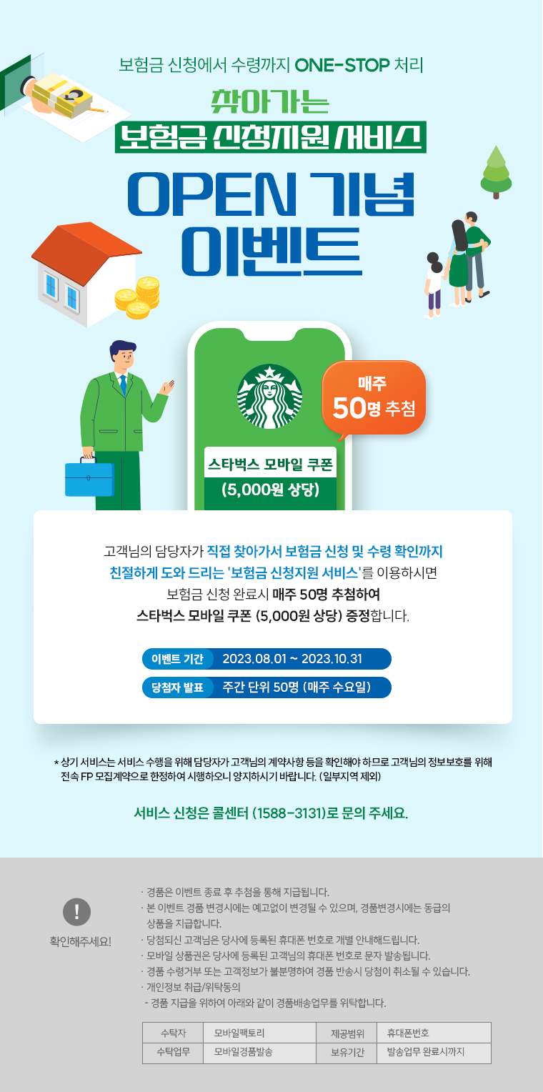 보험금 신청 완료시 매주 수요일 50명 추첨하여 스타벅스 모바일 쿠폰 (5,000원 상당) 증정!
