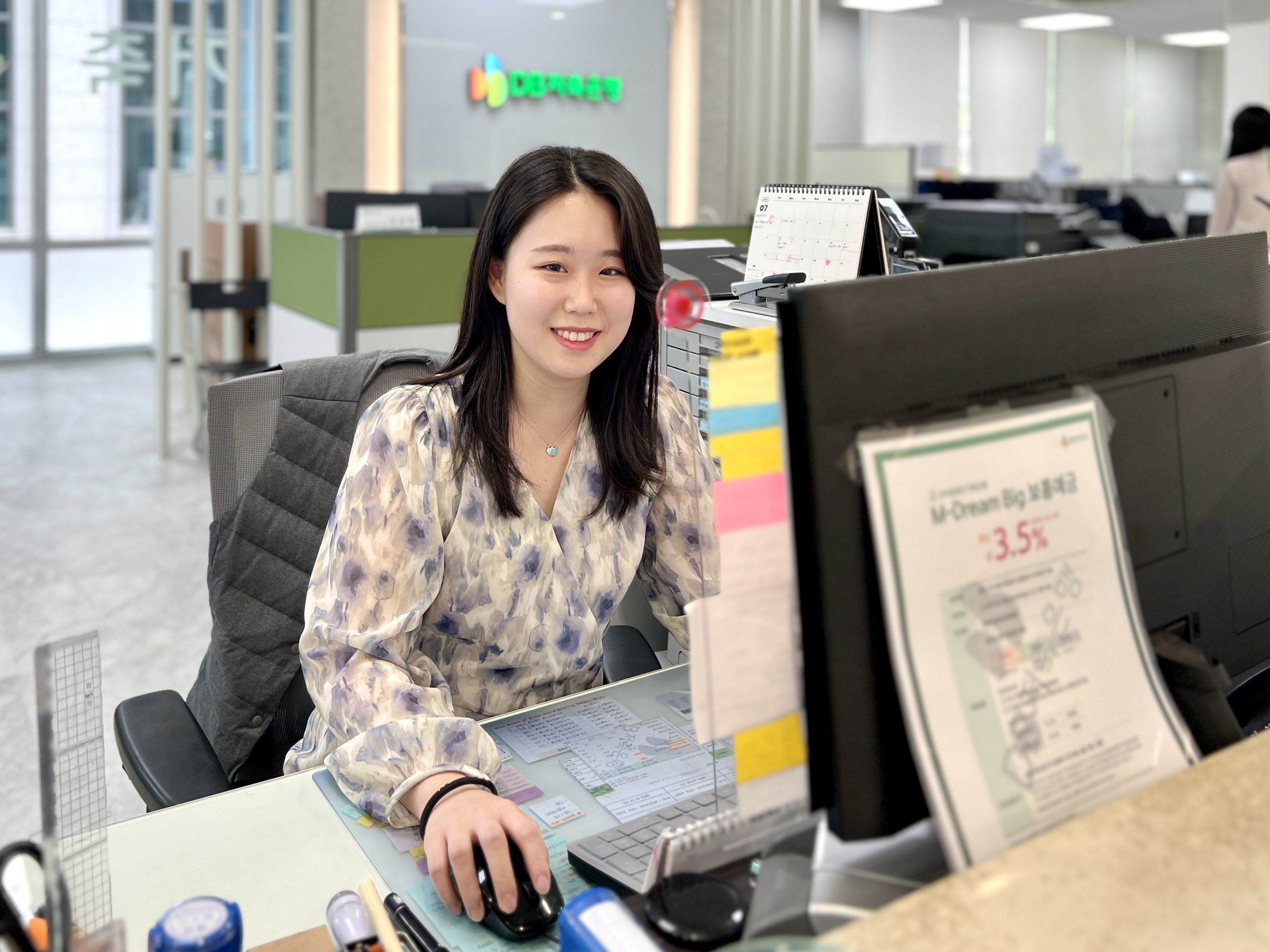 DB저축은행 입사 2년 7개월차 박지은 사원은 ”지점장님께서 수신 업무를 맡은 경험이 많으셔서 창구에서 해결하기 어려운 상황이 생겨도 해결 노하우를 알려 주세요. 고객이 기다리고 있을 때 바로 도움 받은 적이 많습니다.”