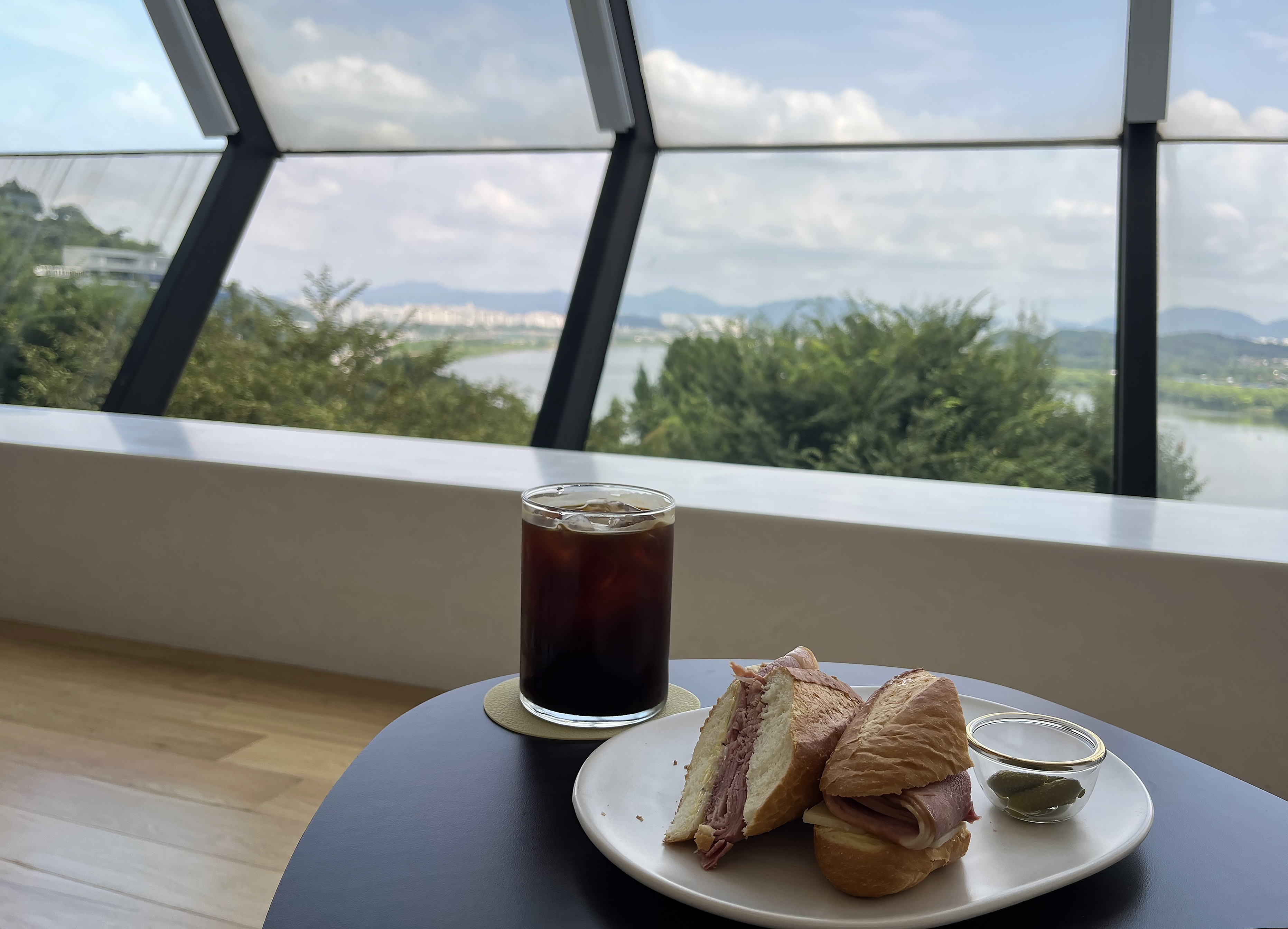 전시 관람과 아트샵 쇼핑을 마치고 나오면 ‘빛의 라운지’를 마주합니다. 빛의 라운지는 간단한 브런치와 커피를 즐길 수 있는 카페로 ‘빛의 시어터’ 관람객의 경우 10% 할인 혜택이 있어 더욱 합리적으로 이용이 가능합니다. 가로로 길게 뻗은 창문을 통해 파노라마처럼 펼쳐지는 한강뷰를 감상하며 여유를 즐기는 것도 좋을 것 같습니다.