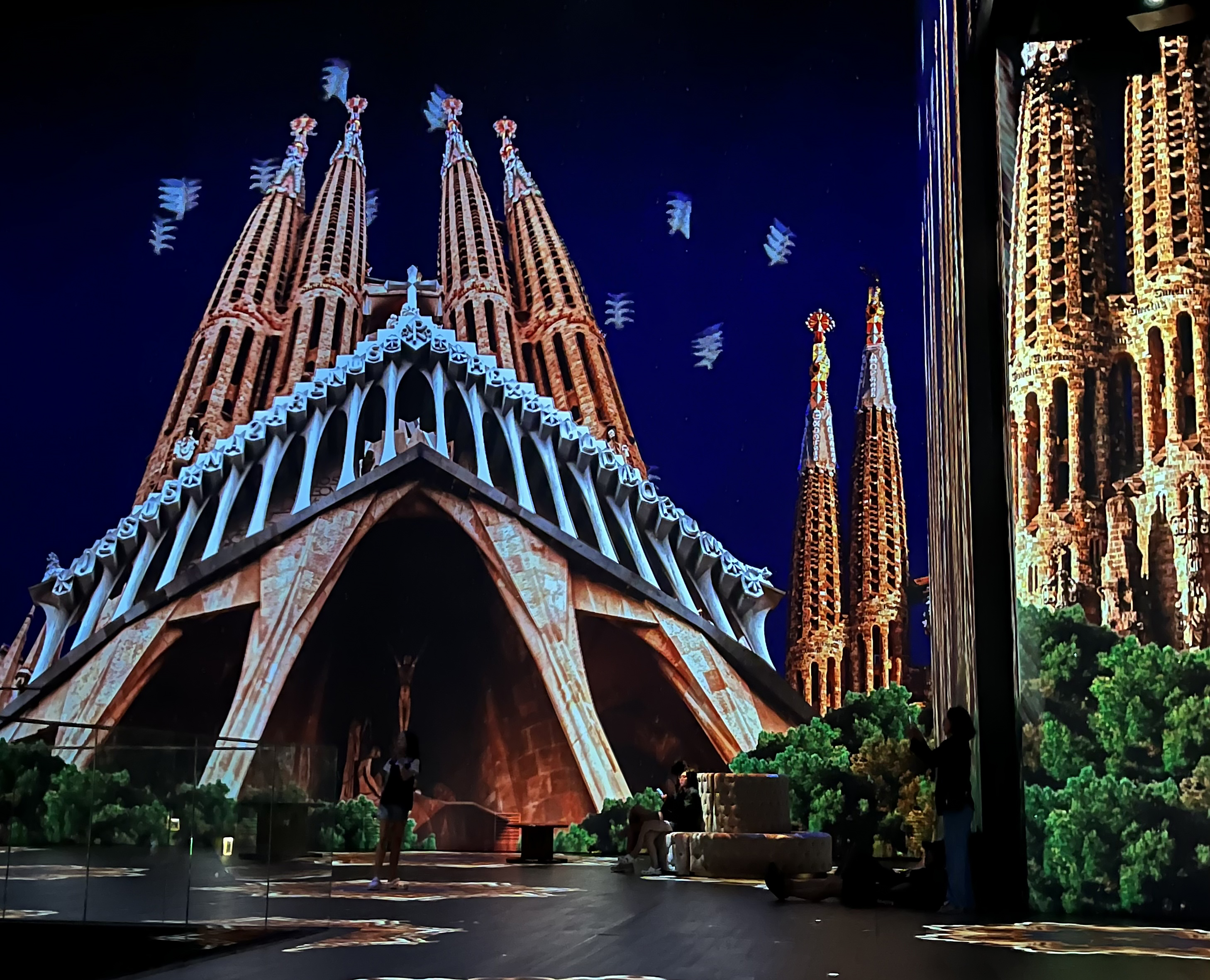 전시에서는 자연의 구조를 모티브로 한 곡선, 곡면이 풍부한 안토니오 가우디의 건축 양식과 스테인드글라스를 통해 표현한 황홀한 빛의 표현을 수많은 빔프로젝터와 스피커를 통해 생생하게 느낄 수 있습니다. 바르셀로나를 여행하며 가우디의 건축물들을 실제로 본 경험이 있는 분들에게는 더욱 특별한 시간이 될 것 같은데요.