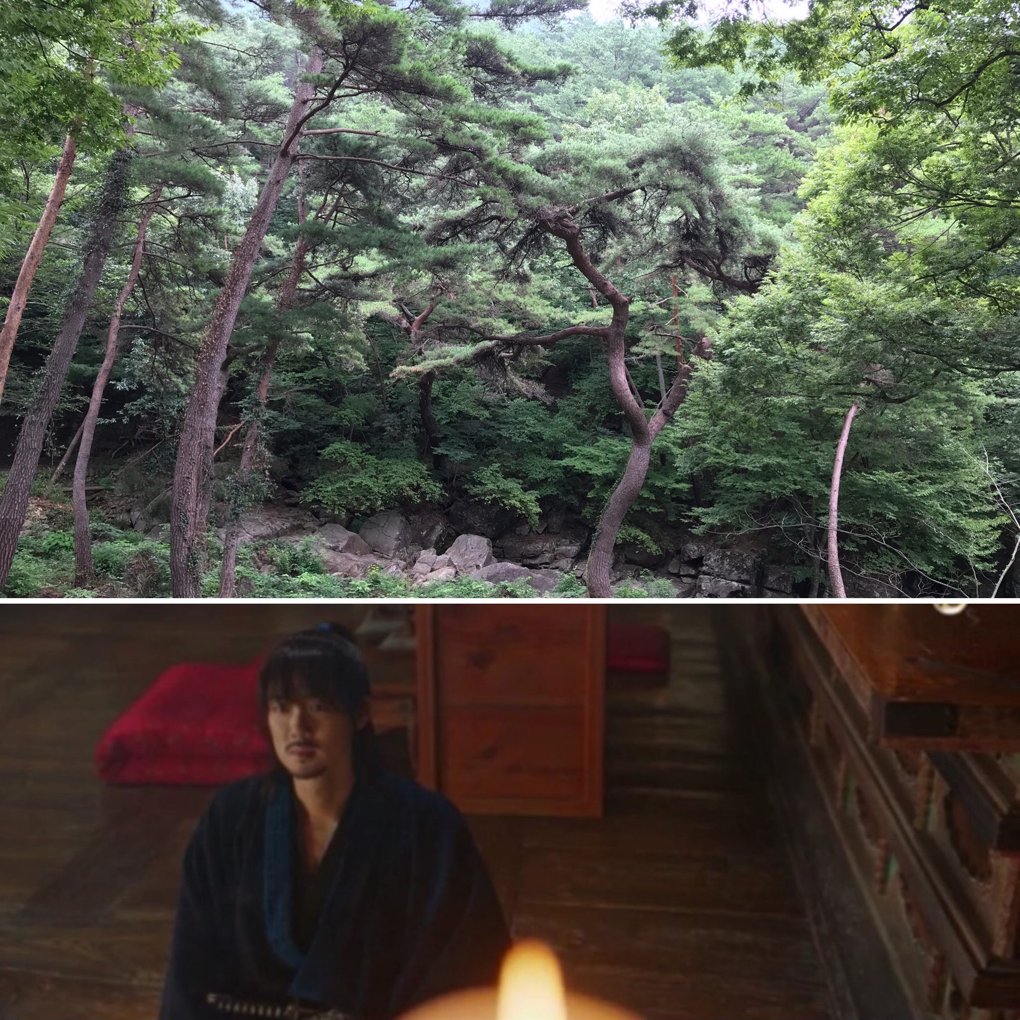 천은사의 진가는 팔상전을 돌아 담장 밖으로 나설 때 발휘되는데요. 야생차밭을 지나 계곡을 건너면 소나무 숲이 펼쳐집니다. 쉬엄쉬엄 걷다보면 이 길은 수홍루 앞에서 끝을 맺습니다.
