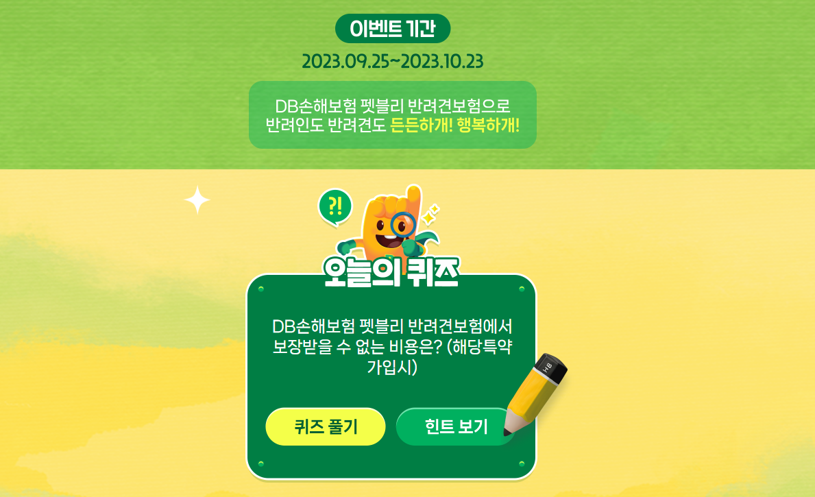 DB손해보험, 펫블리 반려견 보험 데일리 퀴즈 이벤트