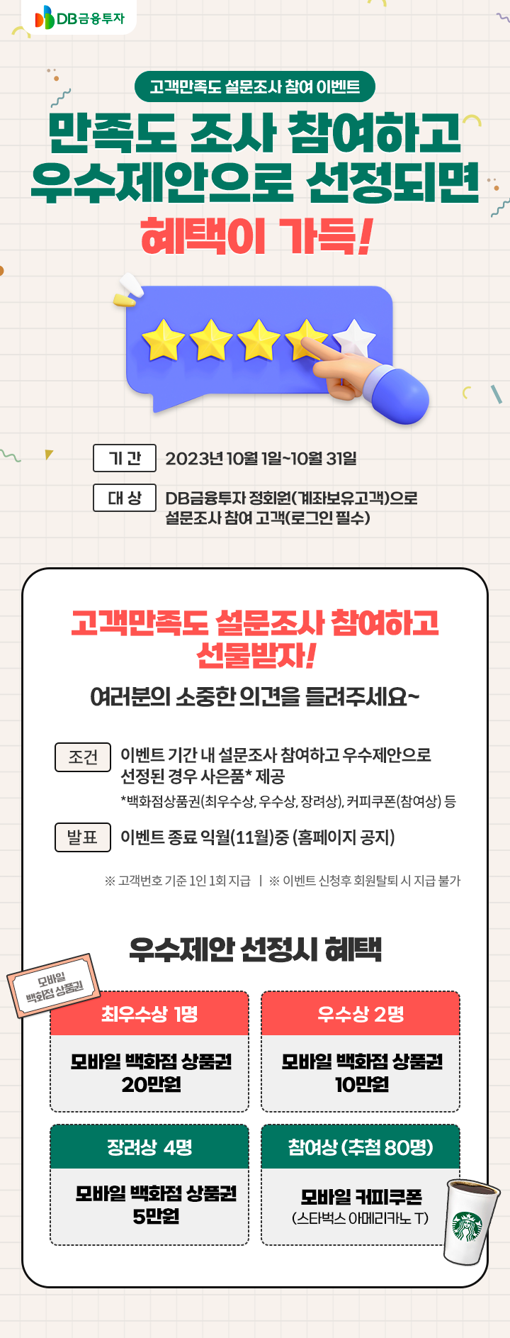 | DB금융투자, 신규/휴면고객대상 웰컴 이벤트 (0) | 2023.10.31 |