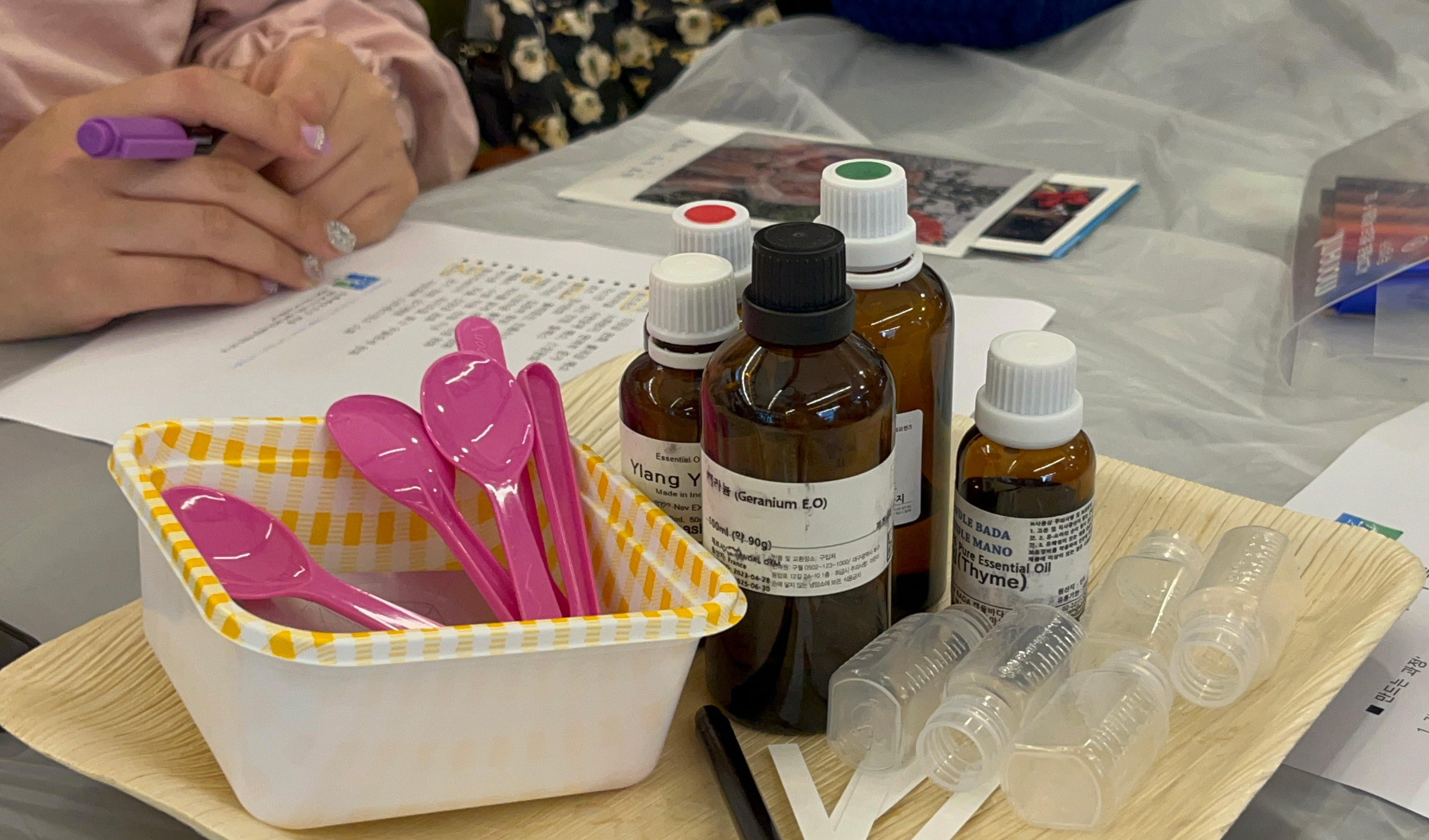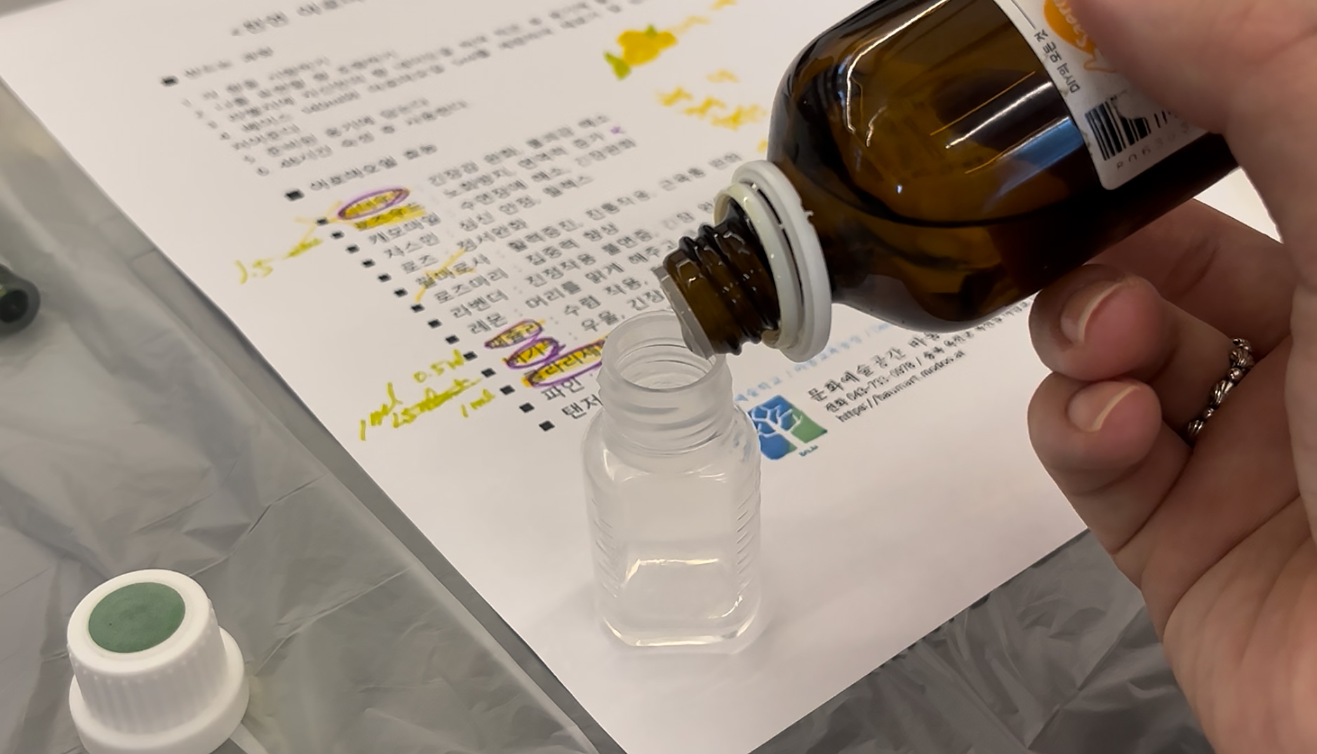 저는 아로마 오일을 이용한 룸 스프레이 만들기 체험을 해 보았는데요. 아로마 오일의 효능과 배합 시 필요한 기본 지식 등에 대해 알아보는 시간과 함께 다양한 아로마 오일을 직접 시향하고 좋아하는 향들을 이용해 나만의 향을 만들 수 있었습니다. 만든 룸 스프레이는 약 48시간 후의 숙성 후에 직접 사용할 수 있어 더욱 실용적이고 재미있는 체험이었습니다. 간단한 체험 후에는 나무 달팽이에서 돈까스와 파스타도 식사도 가능하며 나무 달팽이는 청정 고장 옥천에서 생산된 식재료만으로 요리된답니다.