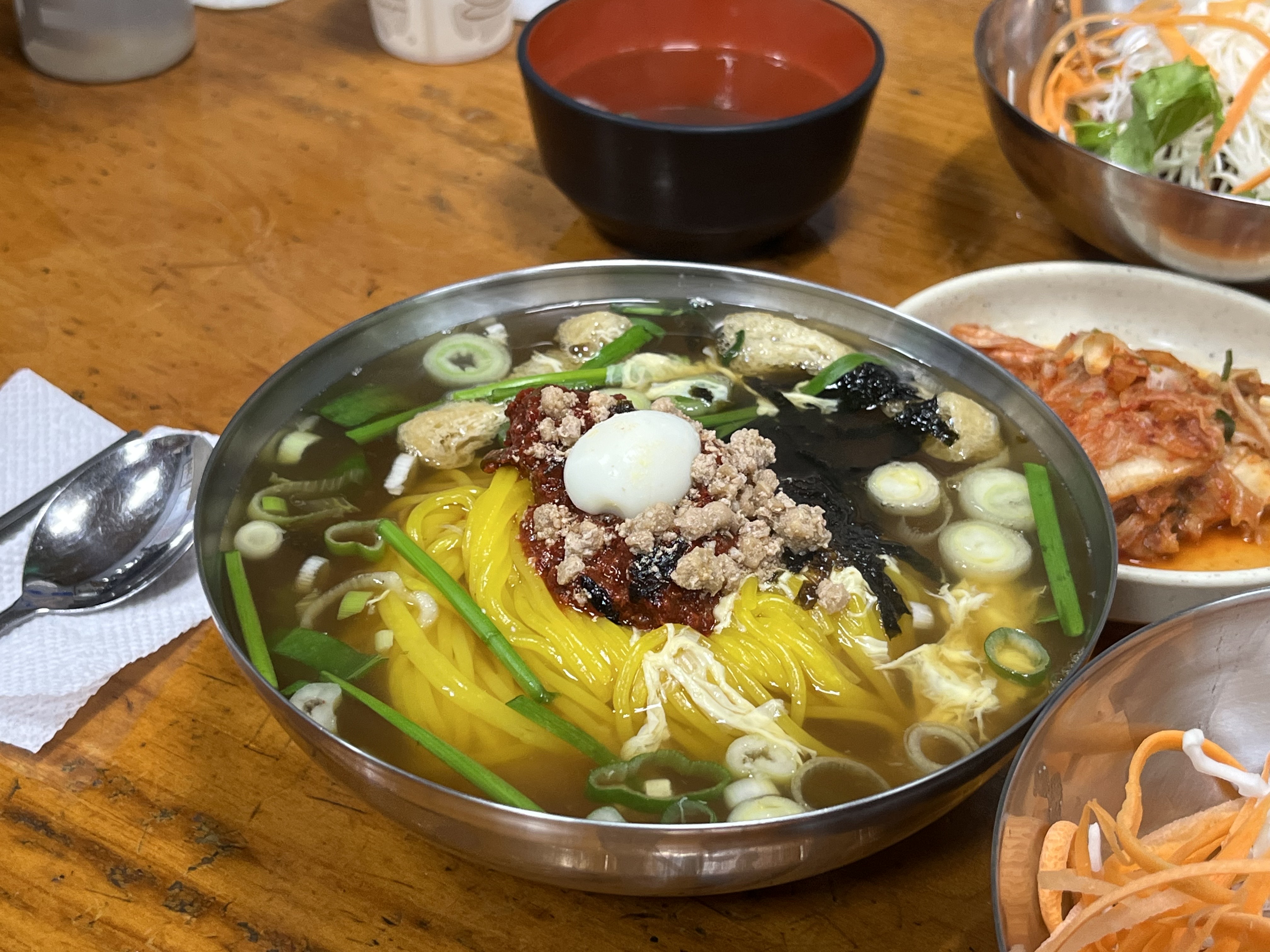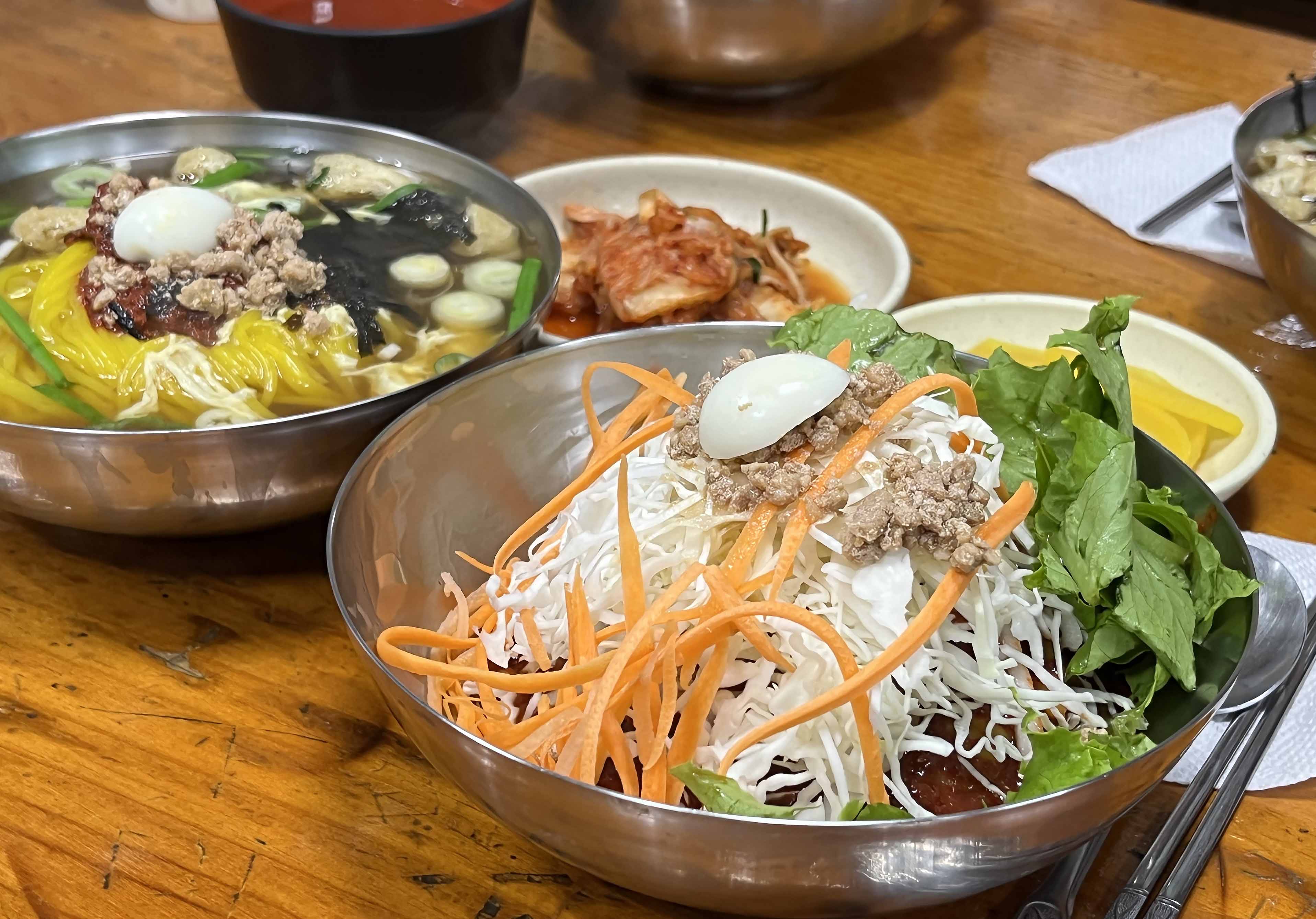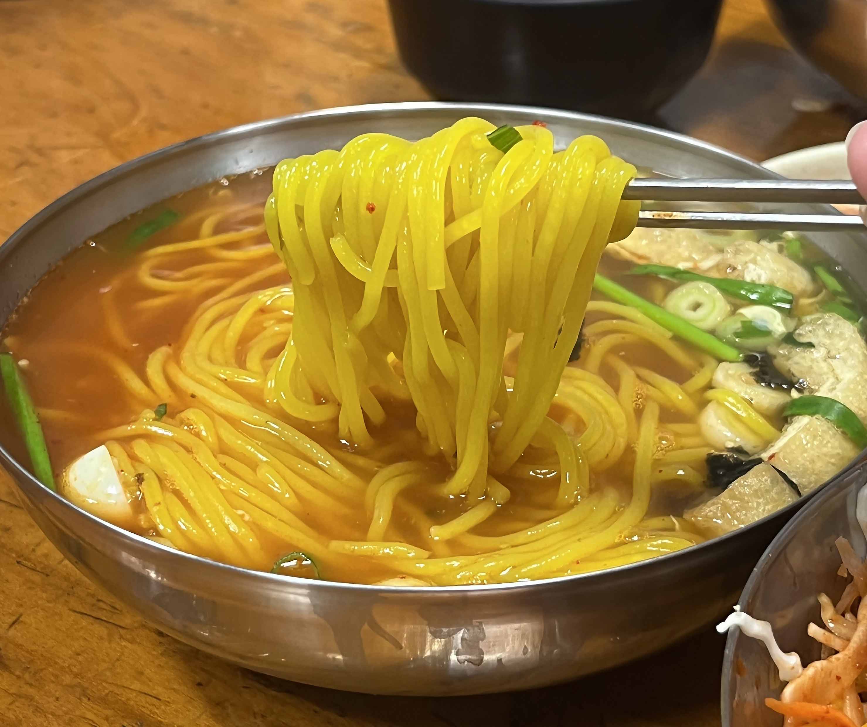 평소 분식집에서 먹던 차가운 쫄면을 생각하니 물쫄면은 쉽사리 그 맛이 짐작이 가지 않았는데, 물쫄면은 따뜻한 국물에 즐기는 온면으로 맛볼 수 있고, 평소 생각하던 쫄면을 찾으신다면 비빔 쫄면을 드시면 됩니다. 잔치국수의 국물 맛도 냉면육수의 맛도 아닌 물쫄면만의 구수하면서도 시원한 맛은 감칠맛이 가득해 옥천 여행의 별미랍니다.