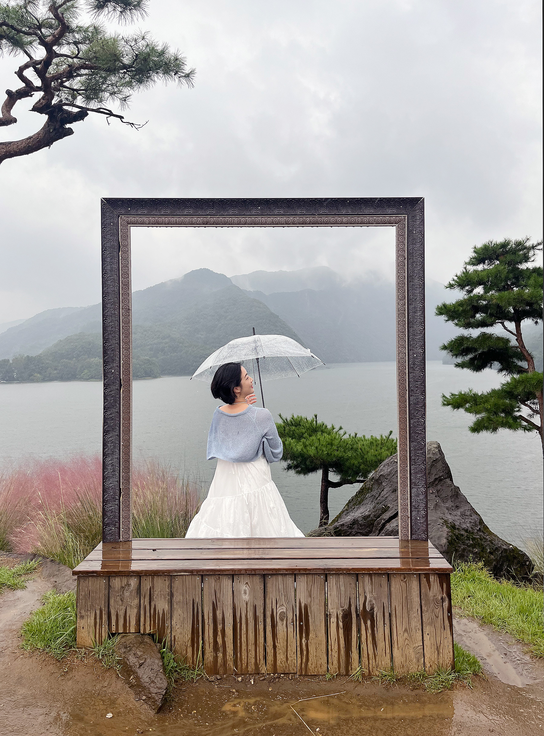 산책로를 따라 걷는 길 곳곳에서 만날 수 있는 포토스팟도 가득했는데요. 핑크 뮬리가 가득한 언덕과 액자 모양의 프레임은 날이 맑다면 더할 나위 없는 인생 사진을 건지실 수 있을 것 같습니다. 당시 비바람이 심해 올라가지 못했지만, 길을 따라 언덕을 오르면 2인이 비좁게 들어갈 정도의 규모인 세상에서 가장 작은 교회도 만날 수 있다고 하니 수생식물학습관을 방문하신다면 함께 들러 관람하시면 좋을 것 같습니다.