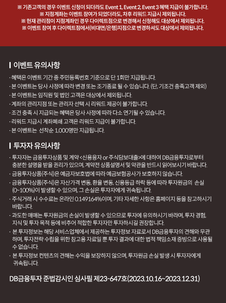 | DB금융투자, 신규/휴면고객대상 웰컴 이벤트 (0) | 2023.10.31 |