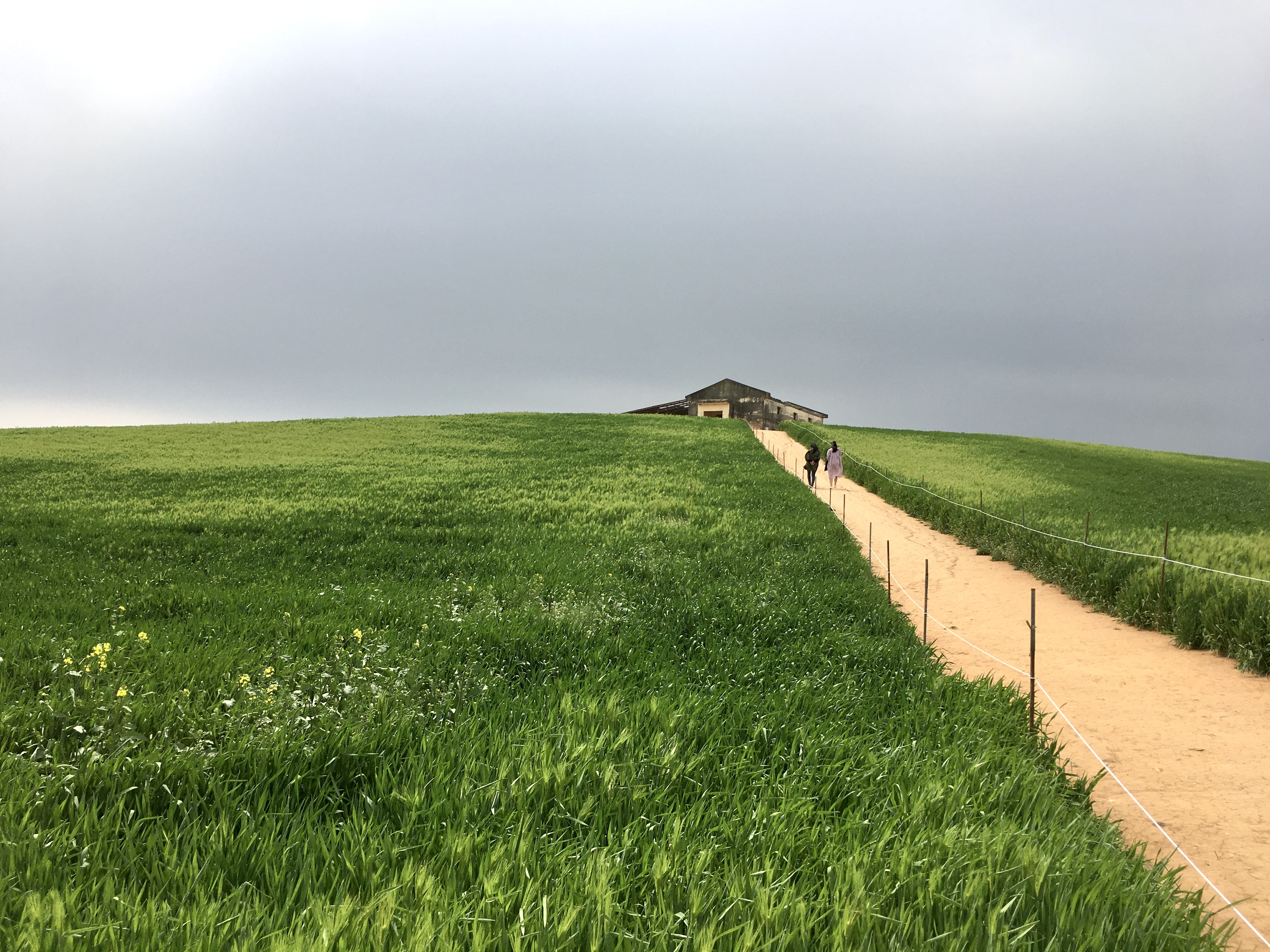 드넓게 펼쳐진 푸른 언덕 끝 하늘과 맞닿은 낡은 창고 건물은 마치 그림 속에 들어와 있는 것 같아요. 이곳에서 보는 마을 모습도 정겨운데요. 보리에 가려진 채 교회 종탑만 우뚝 솟은 풍경도 아름답습니다. 화창한 날씨와 함께 드라마 주인공인 된 것 같아요.