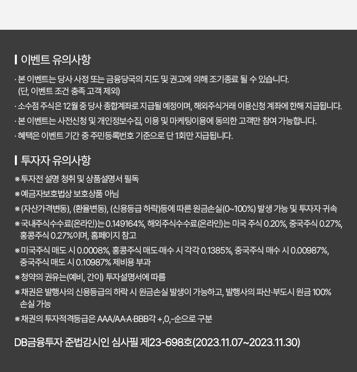 | DB금융투자, 신규/휴면고객대상 웰컴 이벤트 (0) | 2023.10.31 |