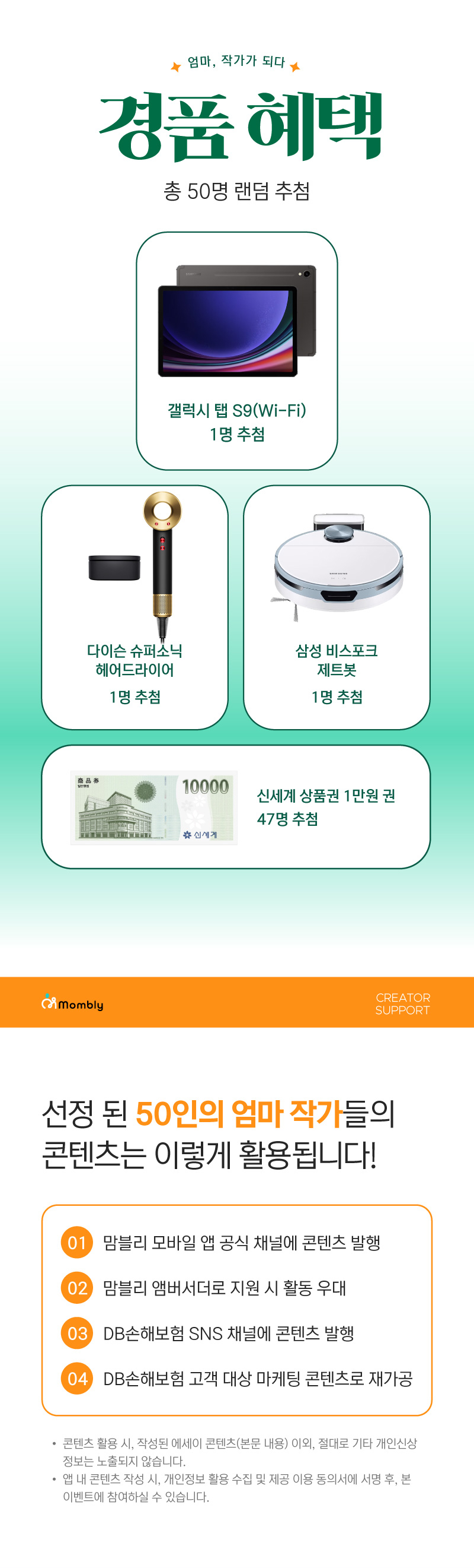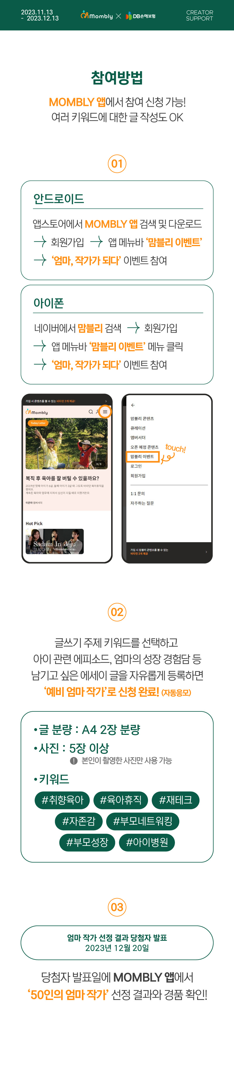 (3) 당첨자 발표일에 MOMBLY 앱에서 "50인의 엄마 작가" 선정 결과와 경품 확인