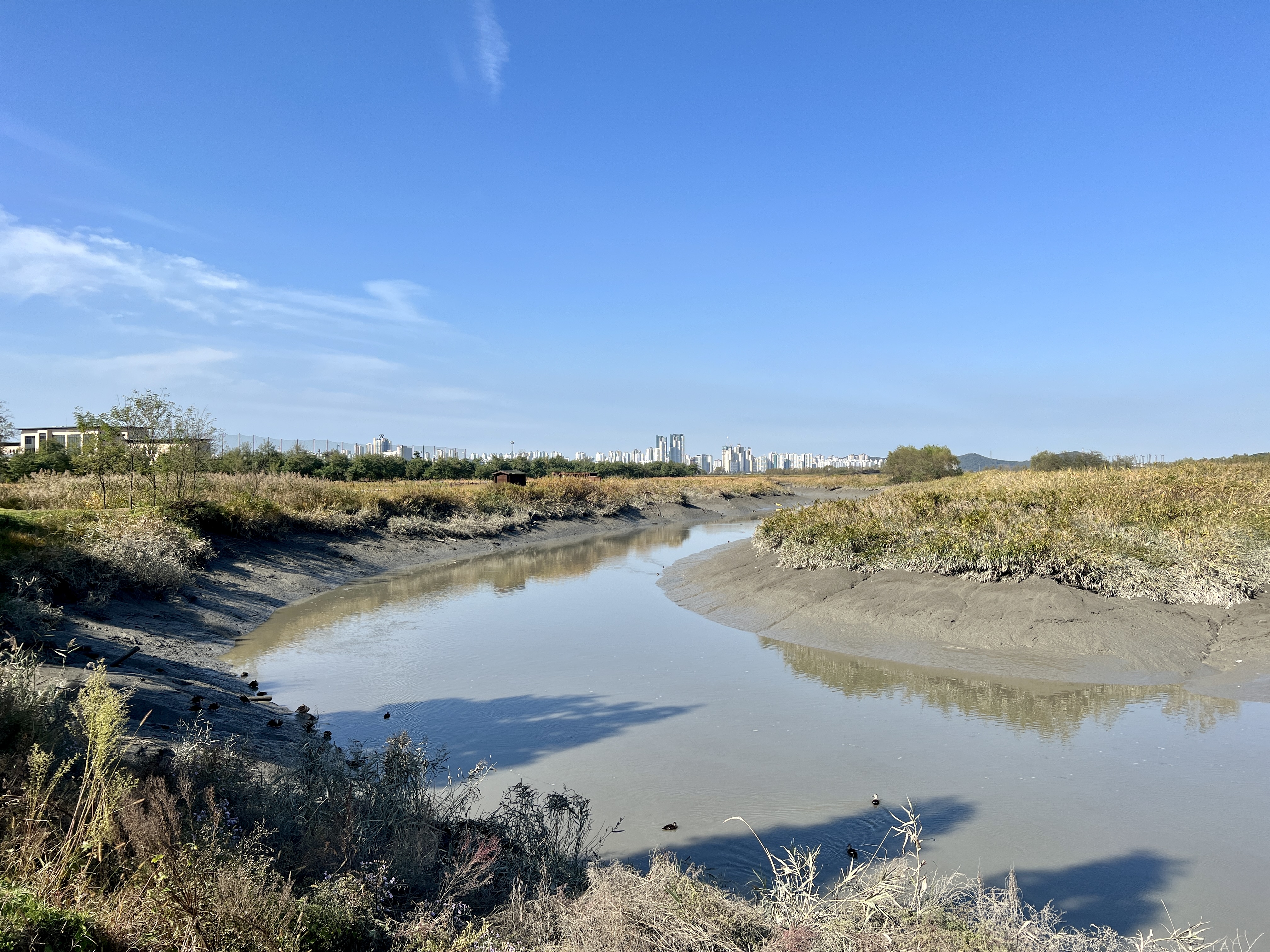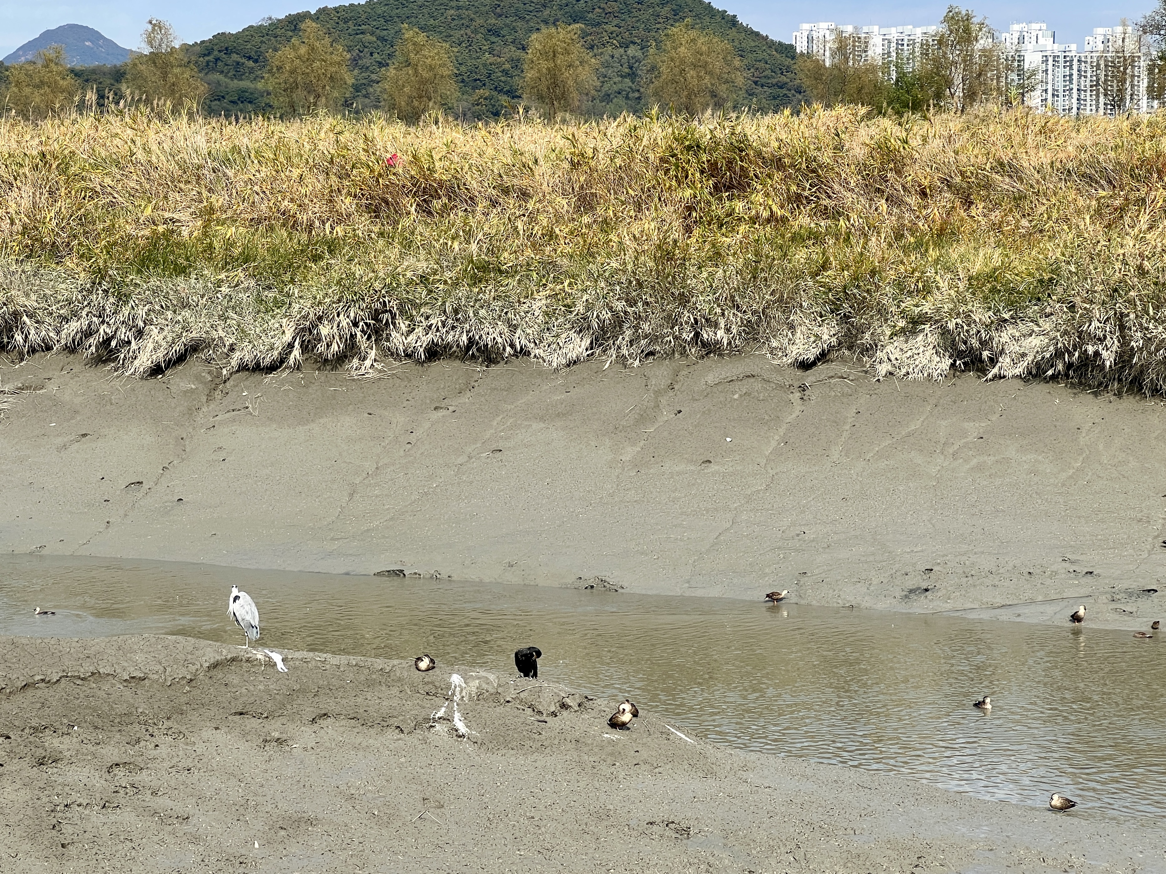 시흥갯골은 구불구불한 물길을 따라 내륙 깊숙이 바닷물이 들어왔다 나가는 특이한 사행성(蛇行性) 내만 갯벌을 이뤄요. 이처럼 갯가에 고랑처럼 파인 갯골은 넓게 펼쳐진 갯벌과는 다른 특색을 보입니다.