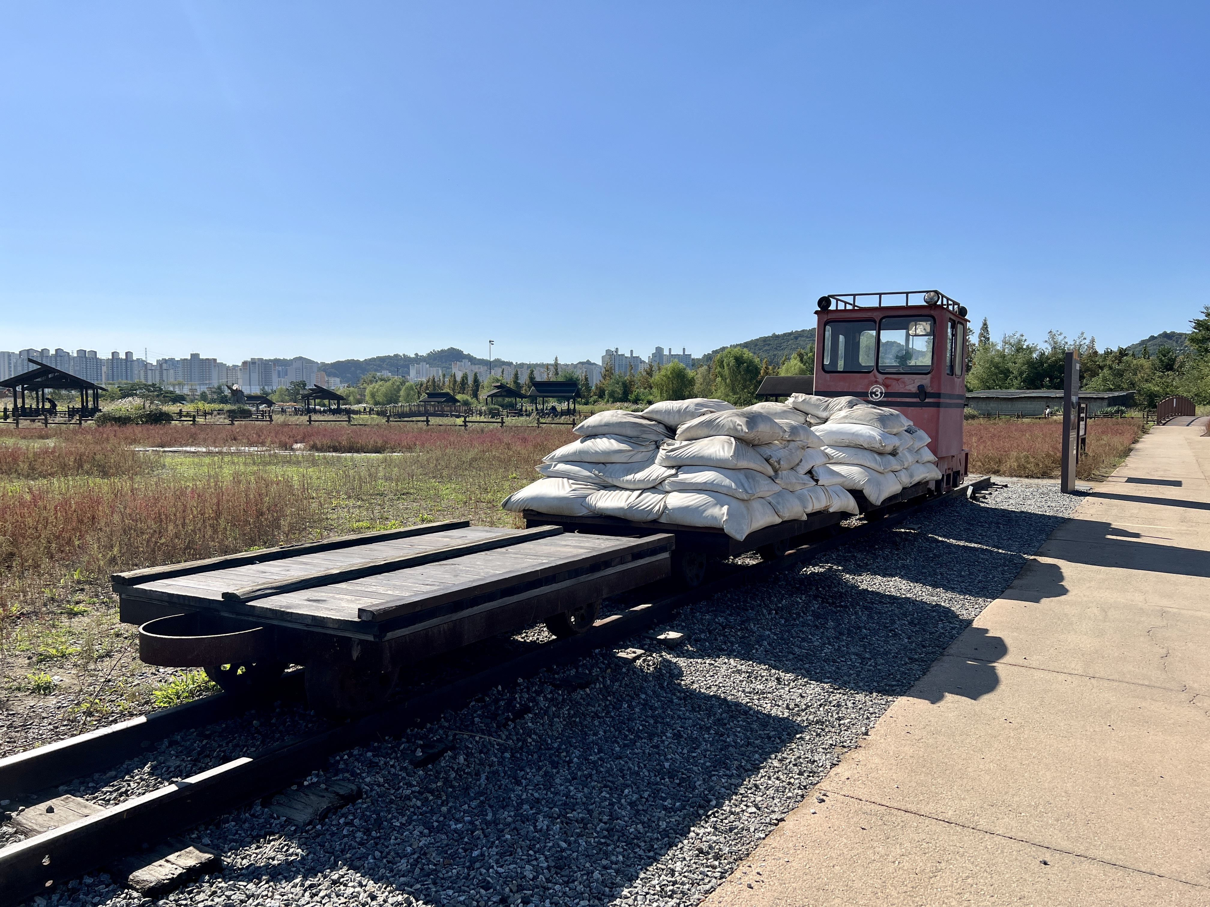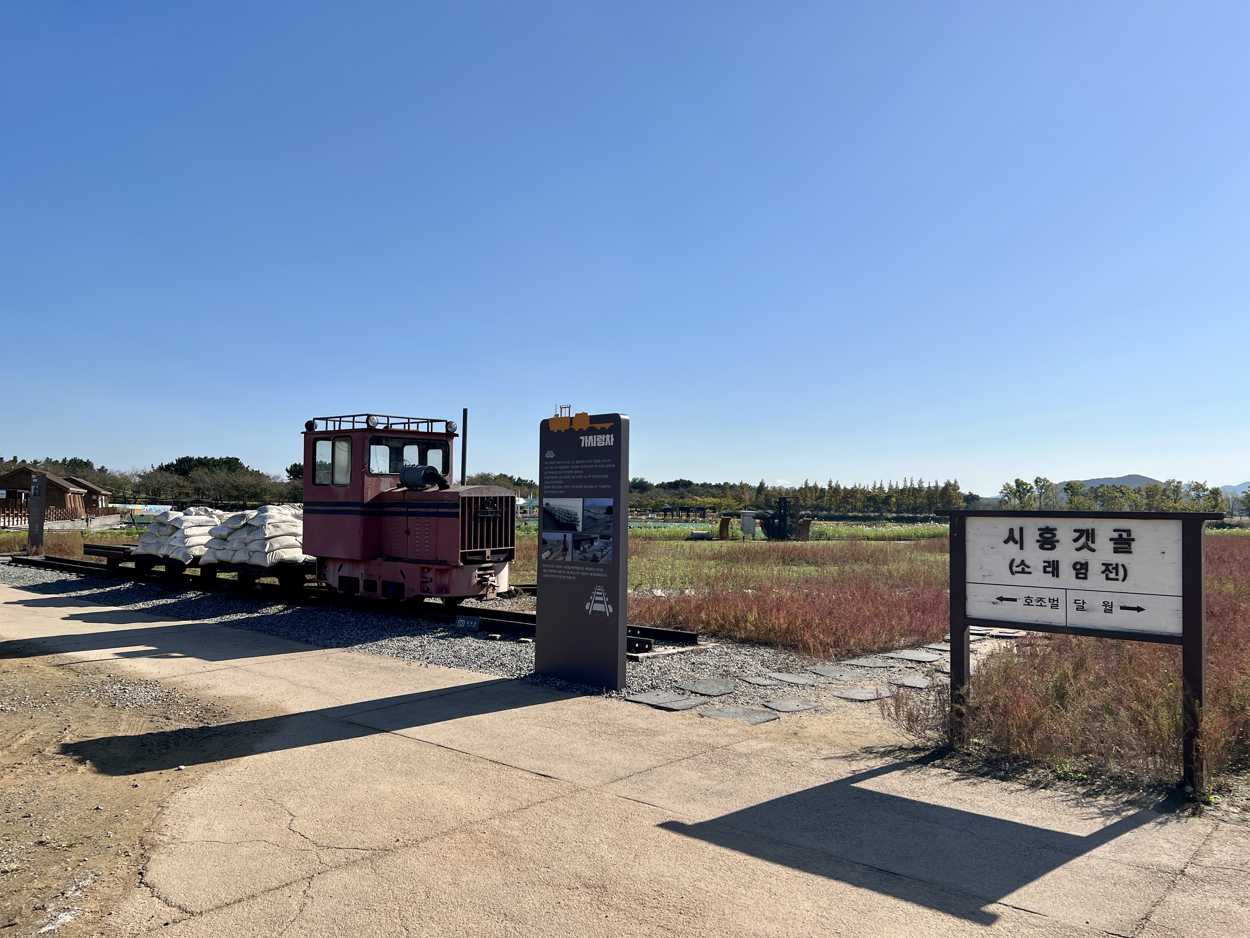 갯골생태공원 인포센터 앞에 있는 ‘시간의언덕’은 이곳이 ‘시흥’으로 불린지 100주년이 다가오던 2014년, 이를 기념해 조성했어요. 타임캡슐과 백년나무, 백년시계가 있는데 주변으로 댑사리가 빨갛게 물들어 있어요.