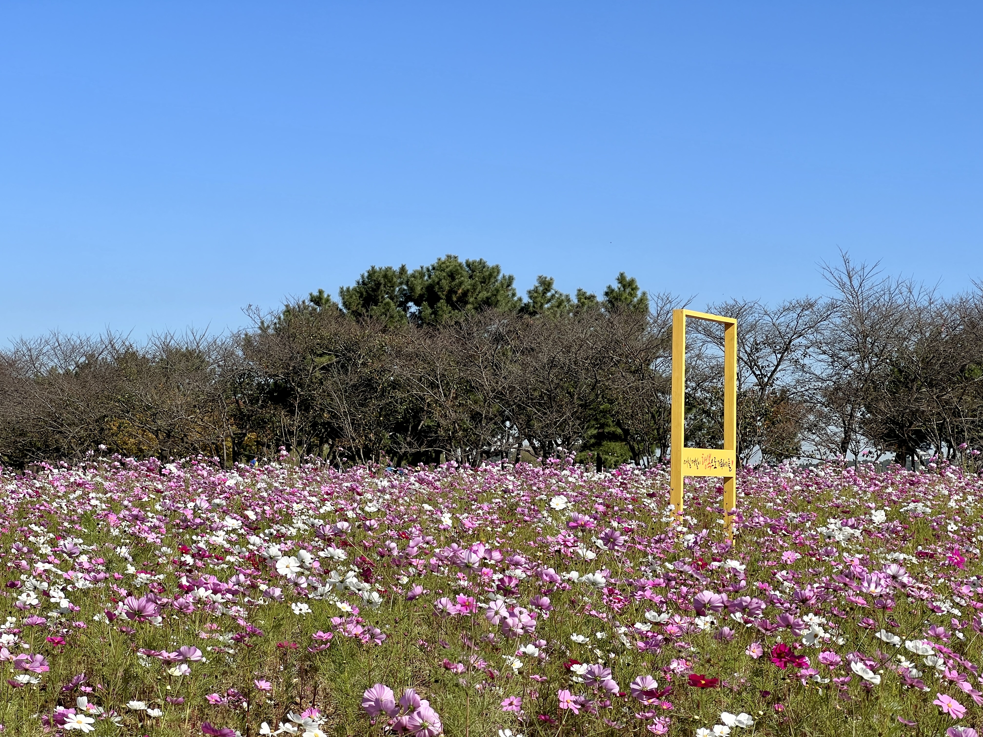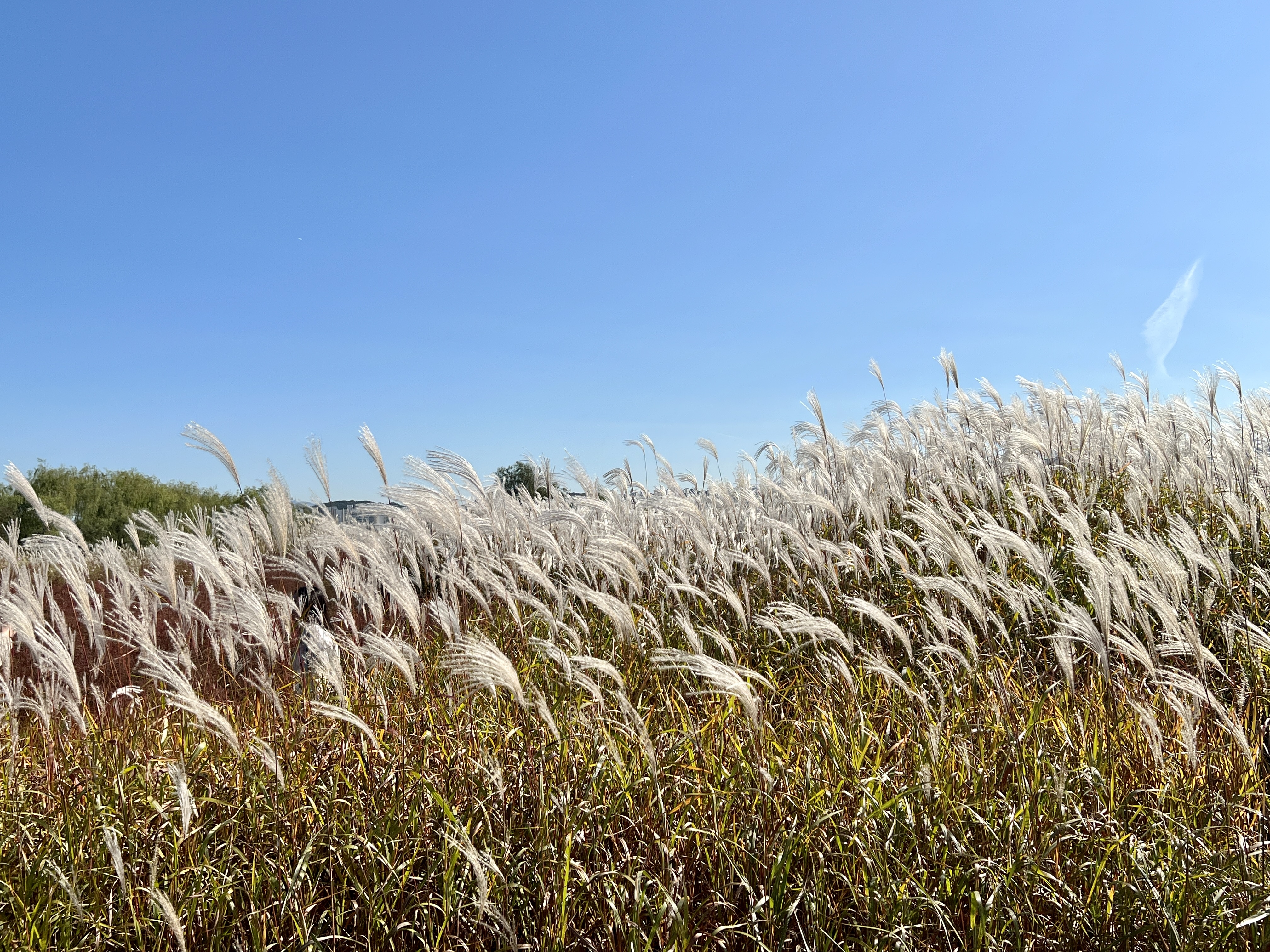 늦가을 시흥 갯골생태공원은 평화로운 풍경으로 가득해요. 바람이 불 때마다 하얗게 핀 갈대꽃과 소담스런 코스모스 꽃무리가 하늘거립니다. 공원 곳곳에서 꽃피운 가을꽃과 물이 차오른 갯골 위로 무리 지어 날아오르는 새들의 장대한 광경도 볼 수 있어요.
