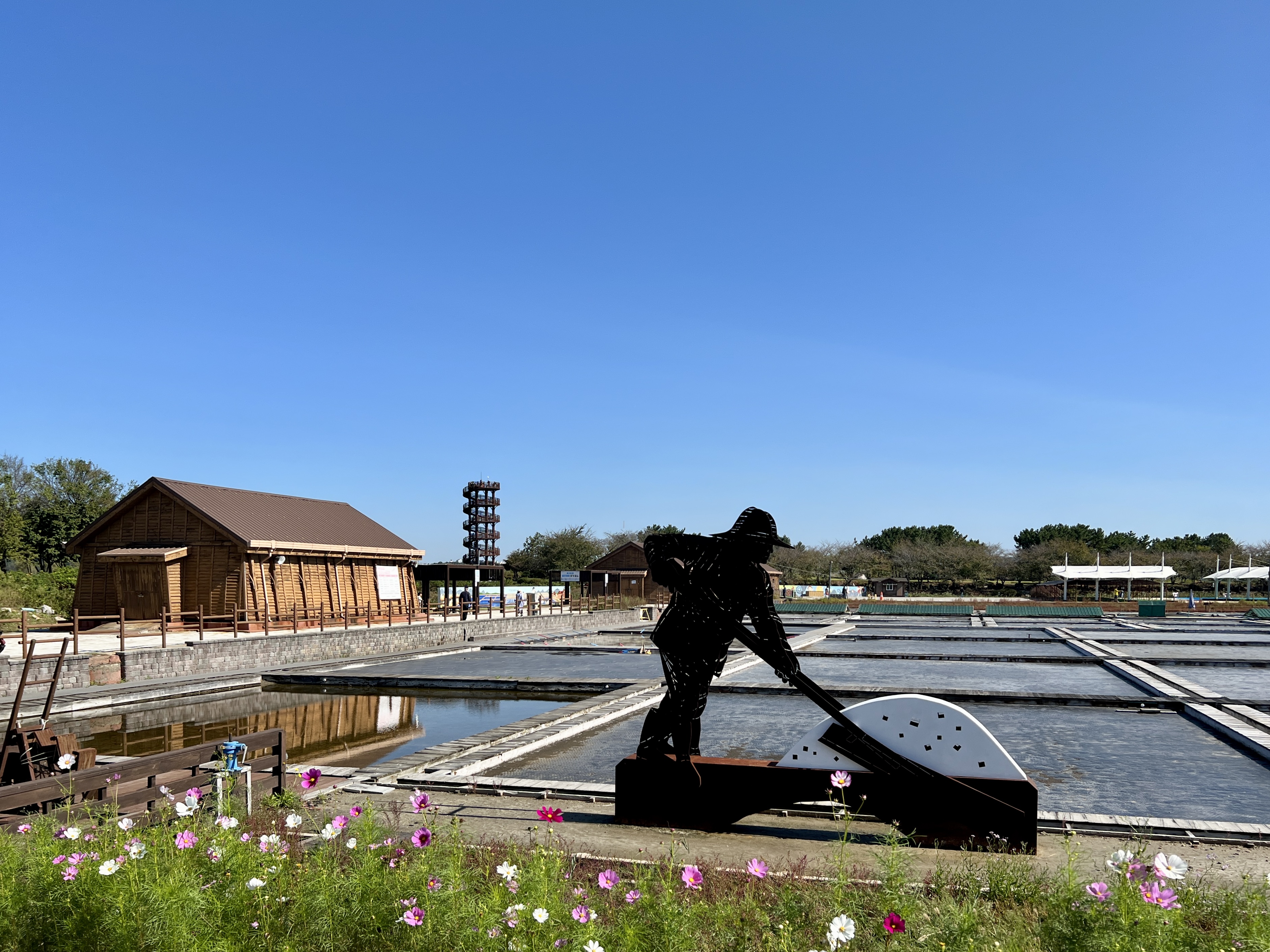 염전체험장에서는 소금의 종류와 생산 과정을 볼 수 있는데요. 네모반듯한 염전은 생산 방식에 따라 토판과 옹패판, 타일판으로 나뉘어져요. 소금을 만들 수 있는 물인 간수를 저장하는 해주와 염전에 물을 대는 수차, 굵은소금이 쌓여 있는 소금창고도 볼 수 있어요.