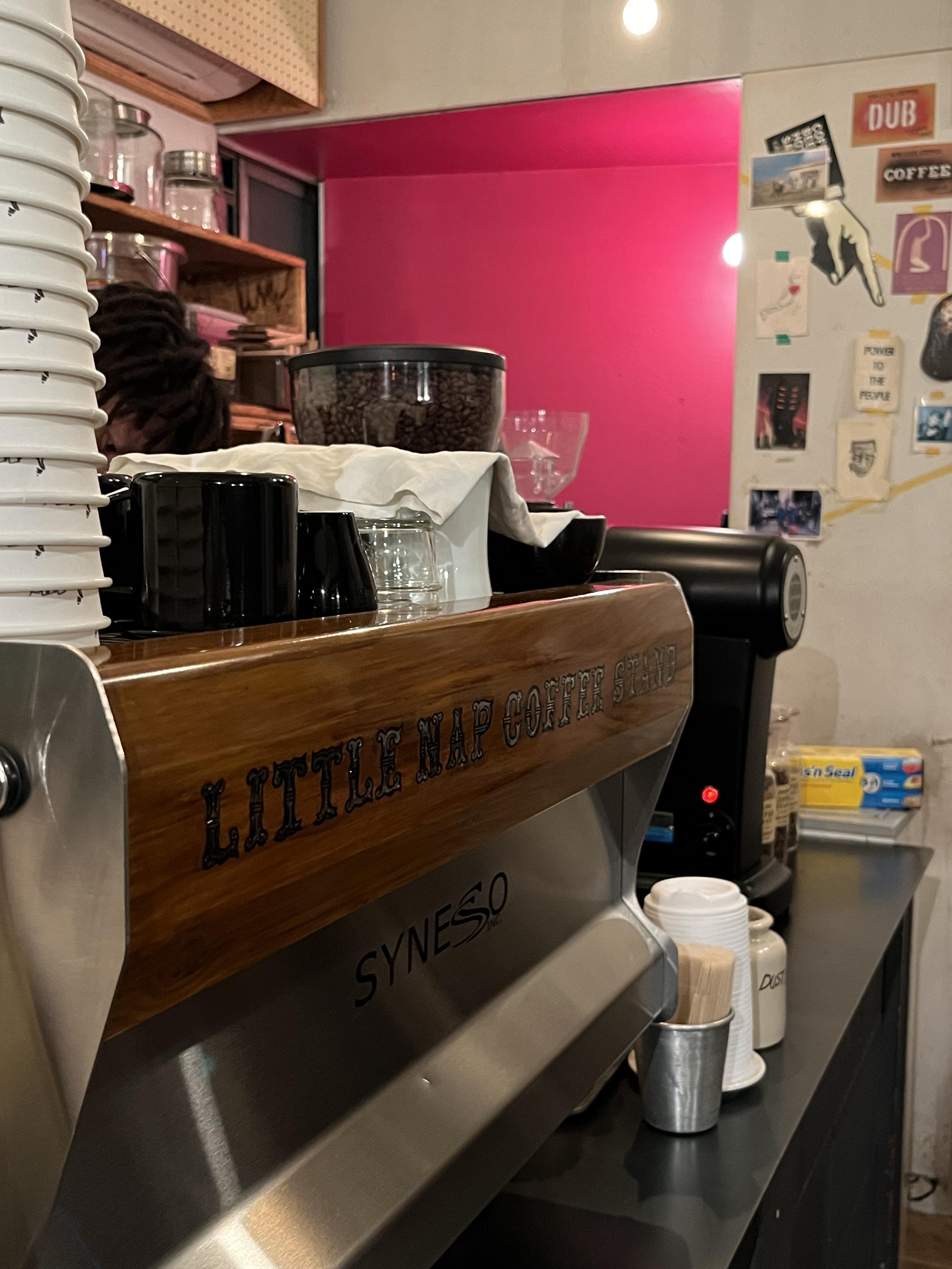 # 카페 옆의 작은 스탠드에서 마시는 커피 감성!