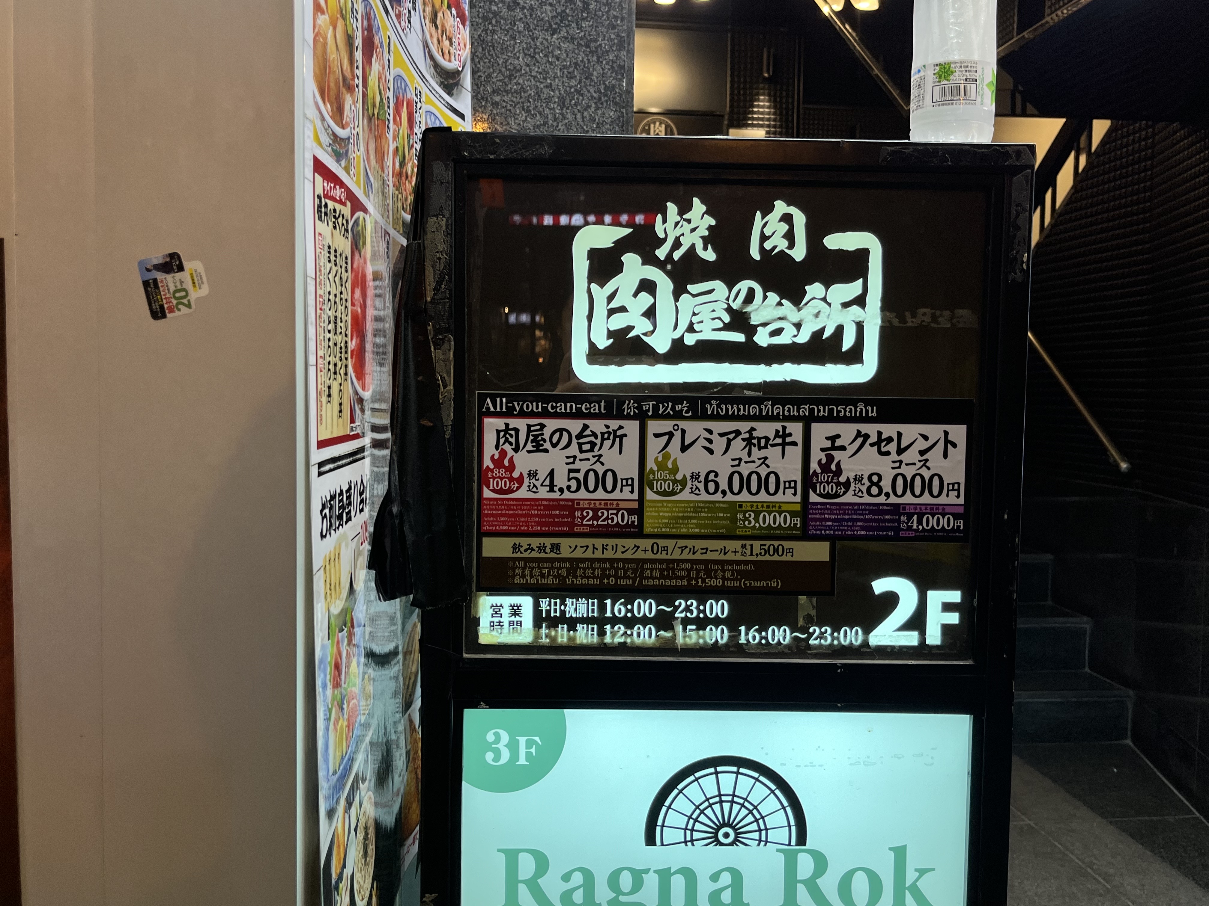 질 좋은 와규를 즐길 수 있고, 한 점씩 구워 먹는 재미가 있는 야키니쿠 역시 일본에 가면 꼭 찾는 음식 중 하나인데요. 가성비 있는 야키니쿠를 마음 편히 즐기고 싶다면 니쿠야 노 다이도코로 야키니쿠를 추천드립니다. 4,500엔, 6,000엔, 8,000엔으로 즐기는 무제한 야키니쿠 집인데요. 와규들의 종류가 조금씩 더 많이 포함된다고 생각하시면 좋을 것 같습니다. 4,500엔 코스에는 포함되는 와규의 종류가 적어 6,000엔 코스가 무난하게 즐기기 좋았던 것 같아요.