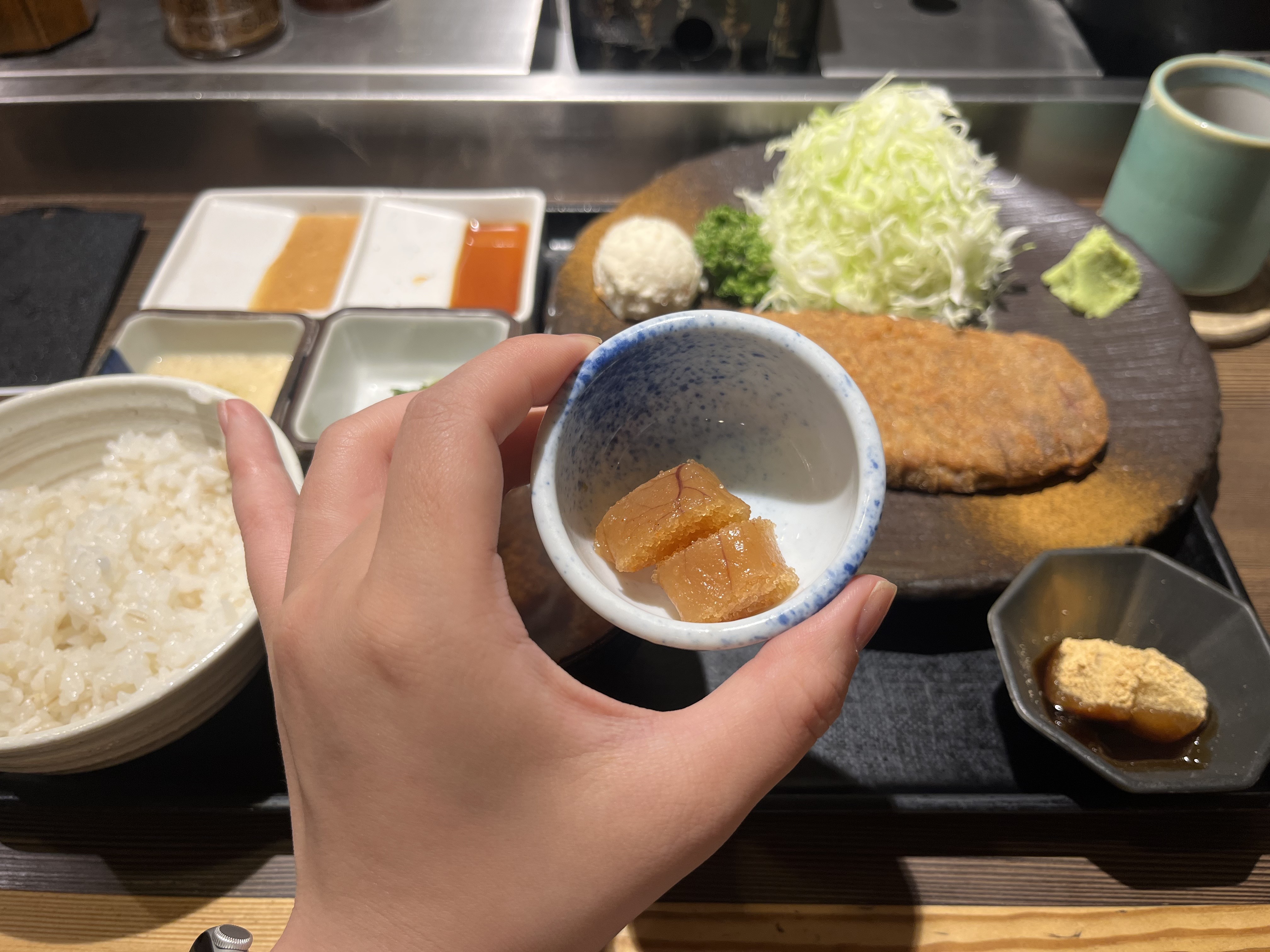 3-4점씩 올려 취향에 맞춰 익혀 먹는 재미가 있어 한국에서도 주기적으로 규카츠를 찾게 되는 것 같은데요. 규카츠 외에 후식으로 먹을 수 있는 인절미 모찌와 명란젓이 함께 나옵니다. 규카츠를 먹으며 흰밥에 명란을 올려 먹으면 맛이 없을 수 없는 조합이죠. 모토무라는 지점이 여러 곳에 있어서 있는 위치에서 가까운 곳으로 방문하셔도 무방할 것 같습니다.