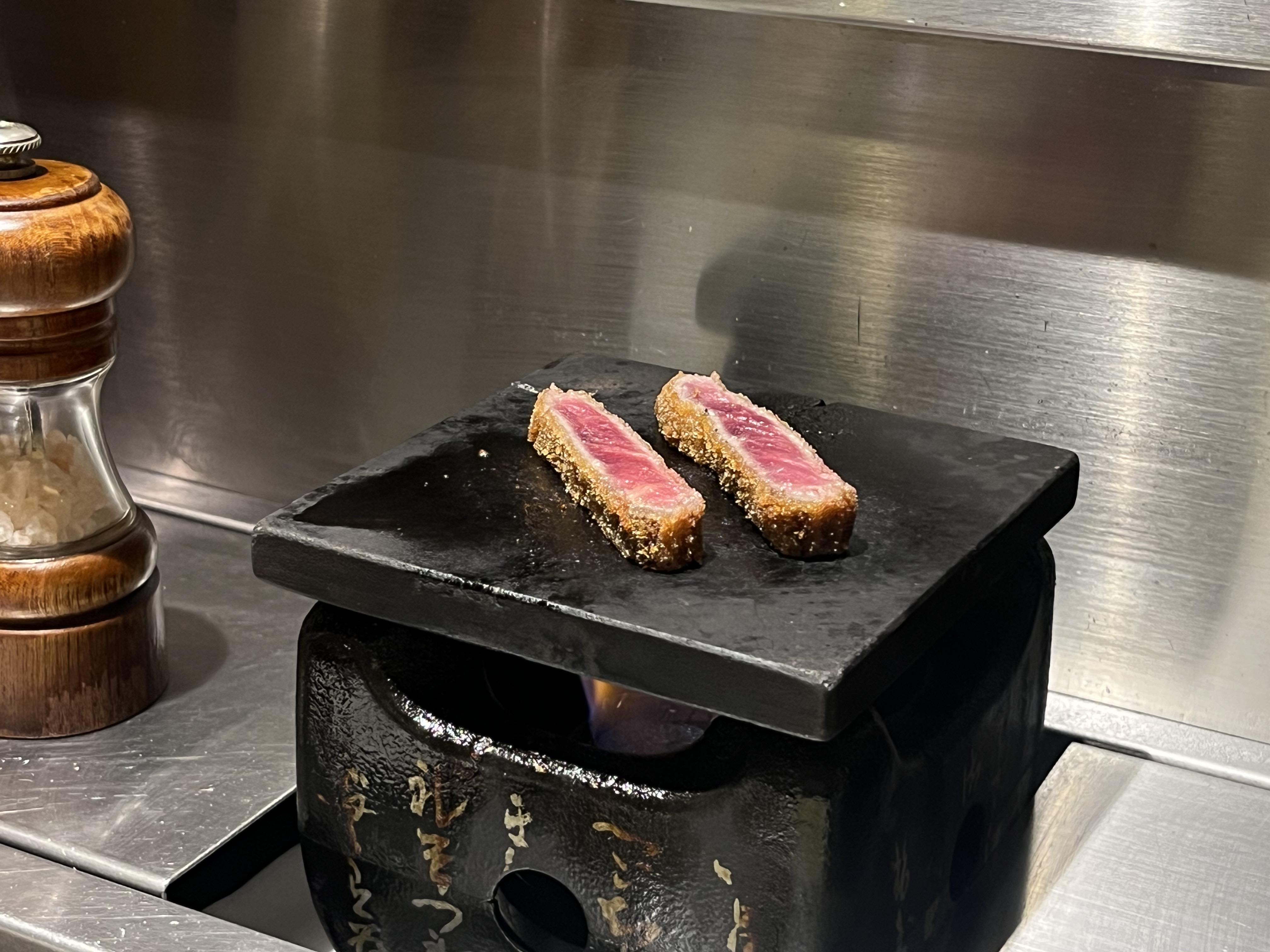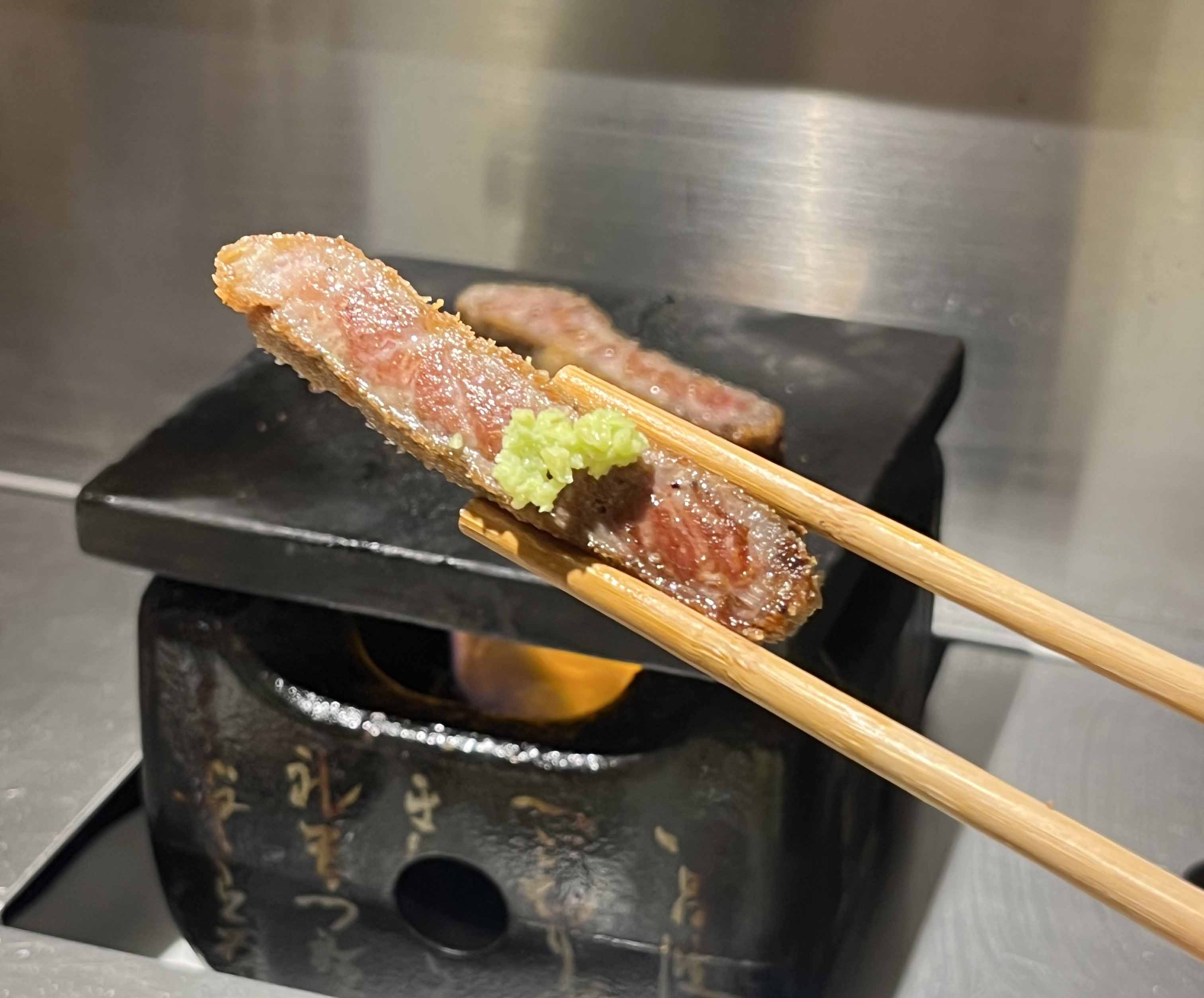 개인 화로에 한 점씩 구워 먹는 규카츠, [모토무라]