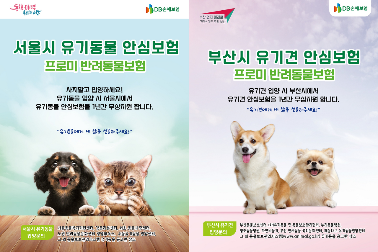 DB손해보험(대표 정종표)은‘유기동물 펫보험 지원사업”을 통하여 서울시, 부산시와 함께 유기동물 입양문화 조성에 협력하고 있다고 10월 26일 밝혔다.