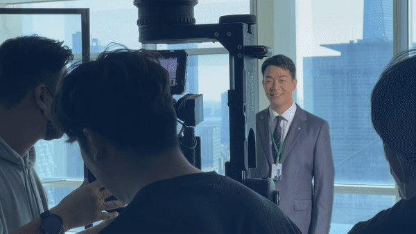 DB 금융그룹의 꿈은 해가 뜨기 시작하는 새벽부터 바쁘게 일하고 있는 DB금융투자 이민섭 대리의 모습으로 표현했다. 증권사 하면 떠오르는 여러 개의 모니터 앞에서 복잡한 그래프를 분석하고, 이와 관련해 직원들과 회의하는 모습이 인상 깊었다. 오랜 촬영에도 불구하고 카메라 앞에서 환한 미소를 잃지 않는 이민섭 대리의 모습에 촬영 현장은 화기애애했다.