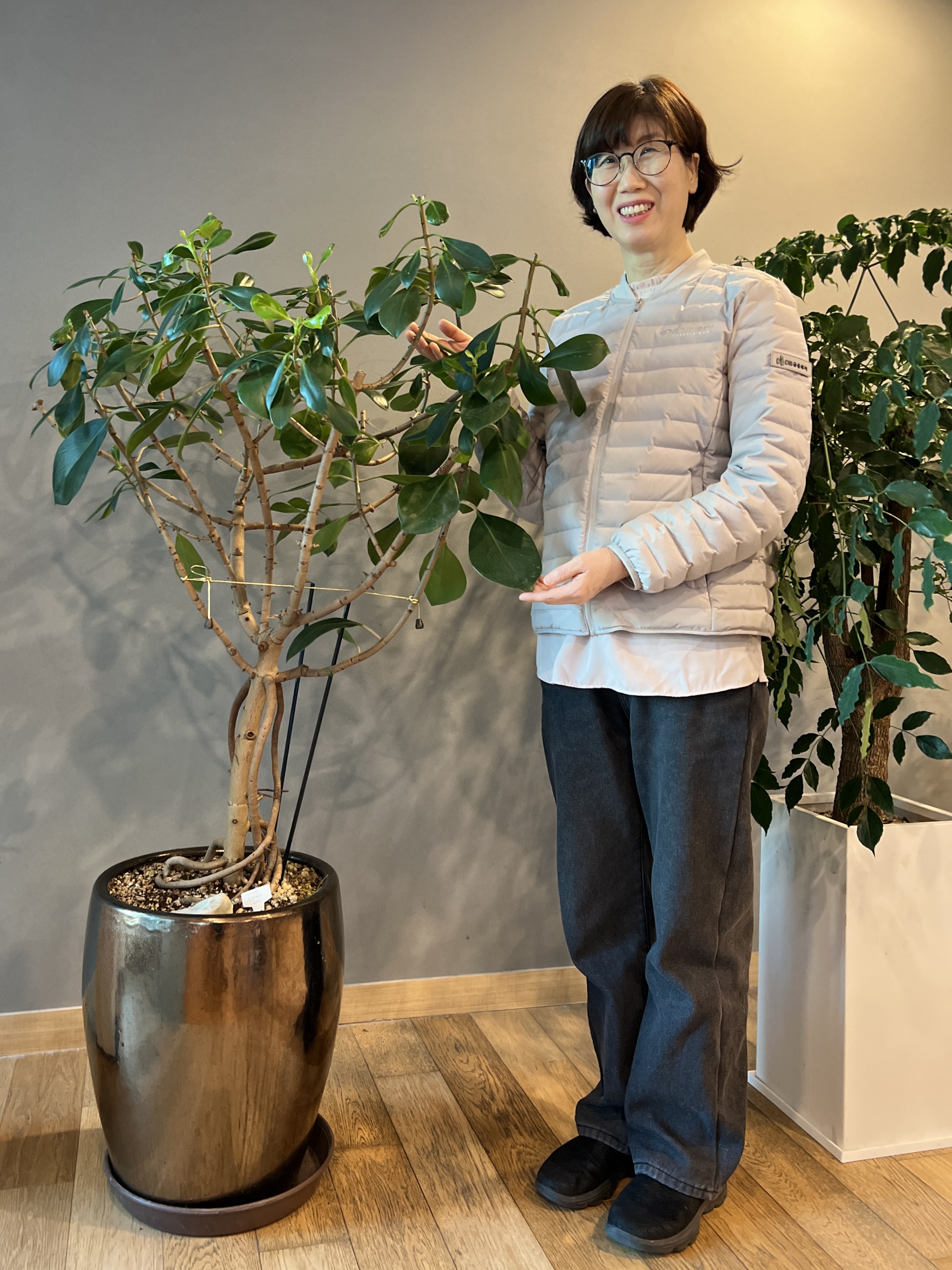 유레카 한쪽 면에는 대형 화분에 희귀 식물들이 자라고 있다. 임직원들이 가져다 놓은 나무들이다. “임직원분들의 식물 사랑을 많이 느껴요. 특히 S&T사업부장 강성욱 상무님이 한 번씩 오셔서 나무를 보며 미소 짓고 식물 관리에 대해 조언도 해 주십니다. 저도 식물에 관심이 많아 화훼를 조금씩 공부하면서 유레카 나무들을 가꾸고 있어요.”
