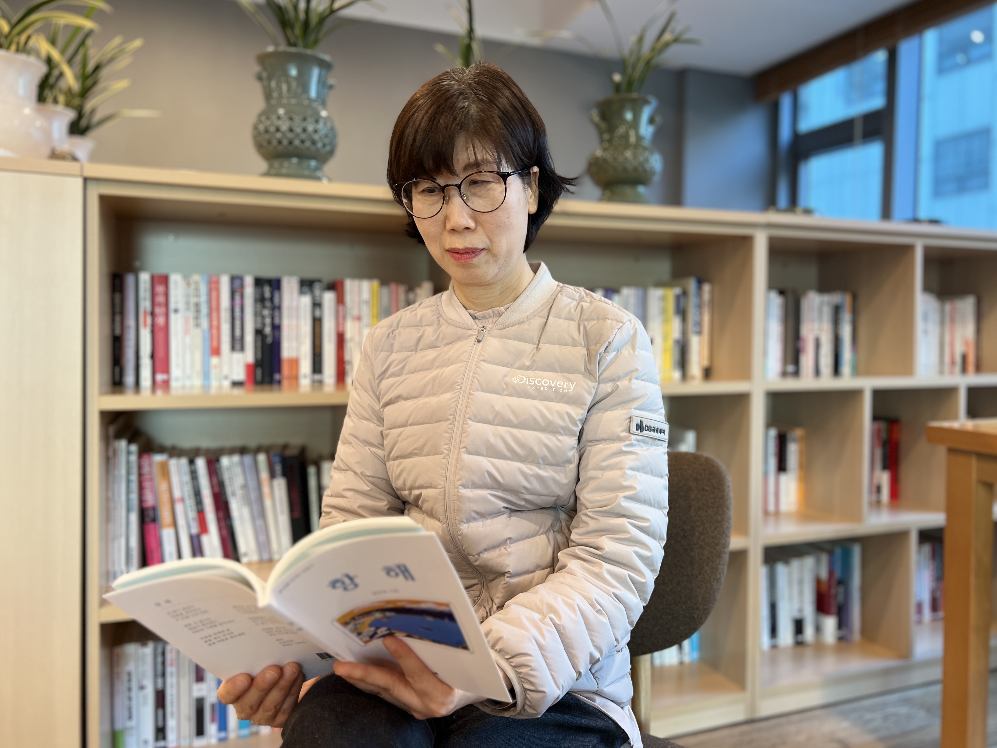 장순복 사원은 DB금융투자 총무팀 소속으로 여의도 사옥 7층에 마련된 직원 휴게공간 ‘유레카’ 관리를 책임지고 있다. 3년째 아침 7시 30분이면 출근해 직원들이 먼저 유레카를 편안하게 이용하도록 환경을 정돈한다.