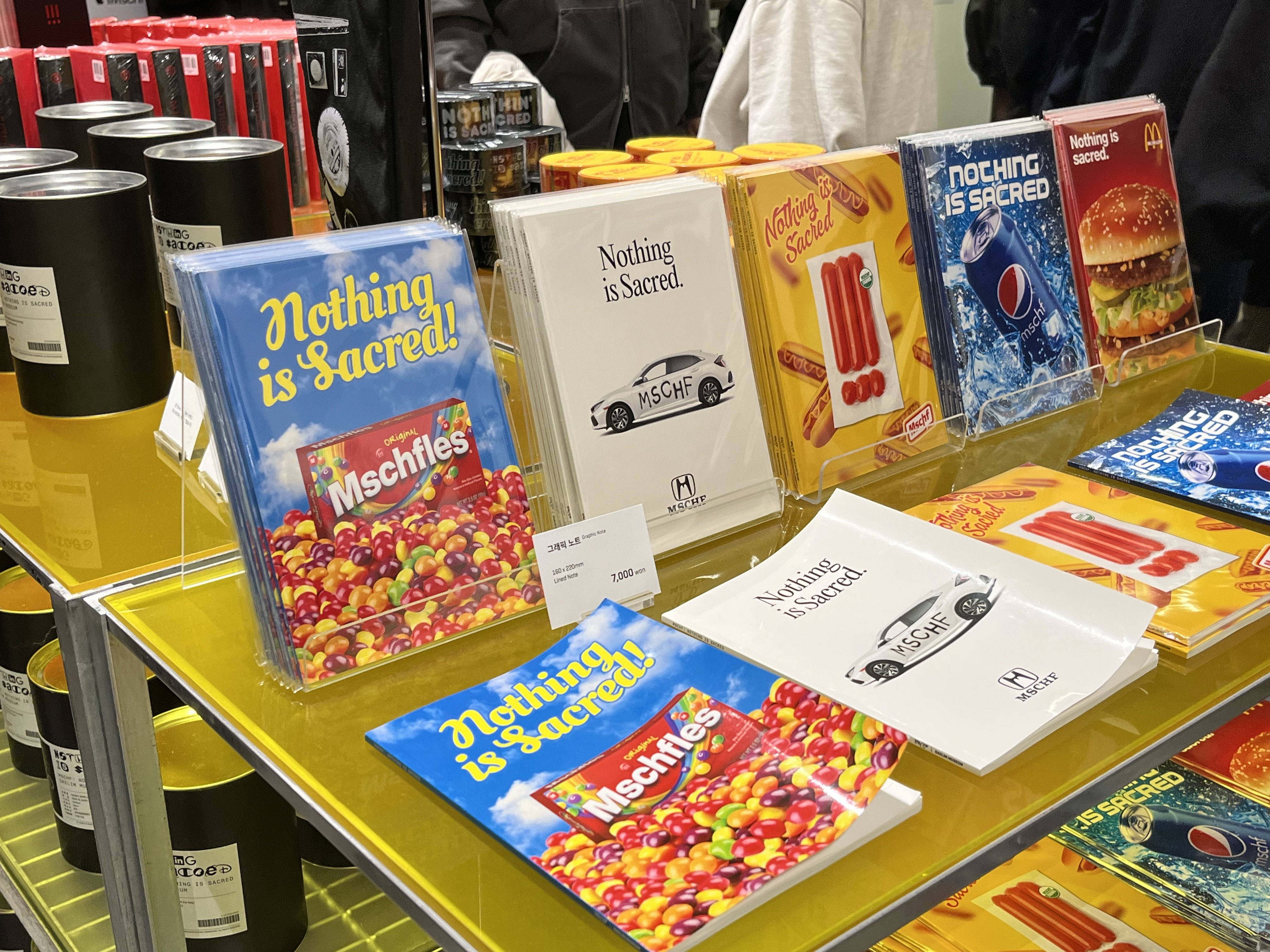 소개해 드린 작품들 외에도 대부분의 작품에 미스치프의 작품 의도가 적혀 있어 관람이 어렵지 않고 재미있어 한 시간이 훌쩍 지나가는 전시였습니다. 관람 후 빼놓을 수 없는 기념품 상점 역시 그냥 지나치기에는 아쉽습니다. 도록은 물론 미스치프의 로고 플레이로 만들어진 모자와 티셔츠 등을 구매할 수 있답니다.