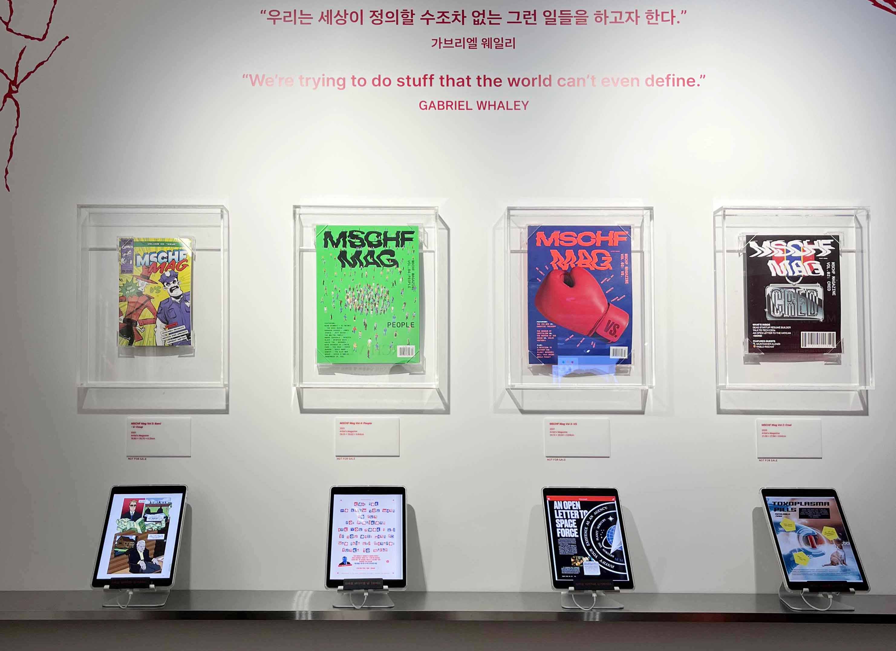 오디오 가이드가 제공되고 있기 때문에 이어폰을 지참하는 것을 추천드려요. 가장 먼저 만나볼 수 있는 ARCHIVE 섹션은 미스치프가 분기마다 웹 형태로 발행하는 인쇄물과 잡지를 디지털 버전으로 살펴볼 수 있는 공간으로 앞으로 펼쳐질 미스치프의 짓궃은 전시들을 미리 맛볼 수 있는 공간이기도 합니다.