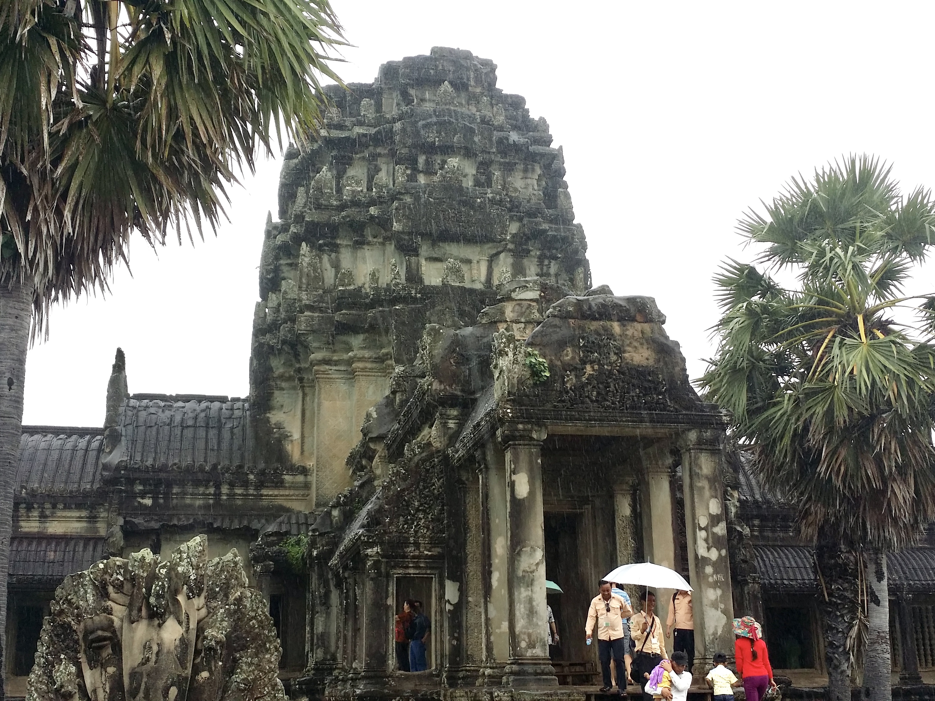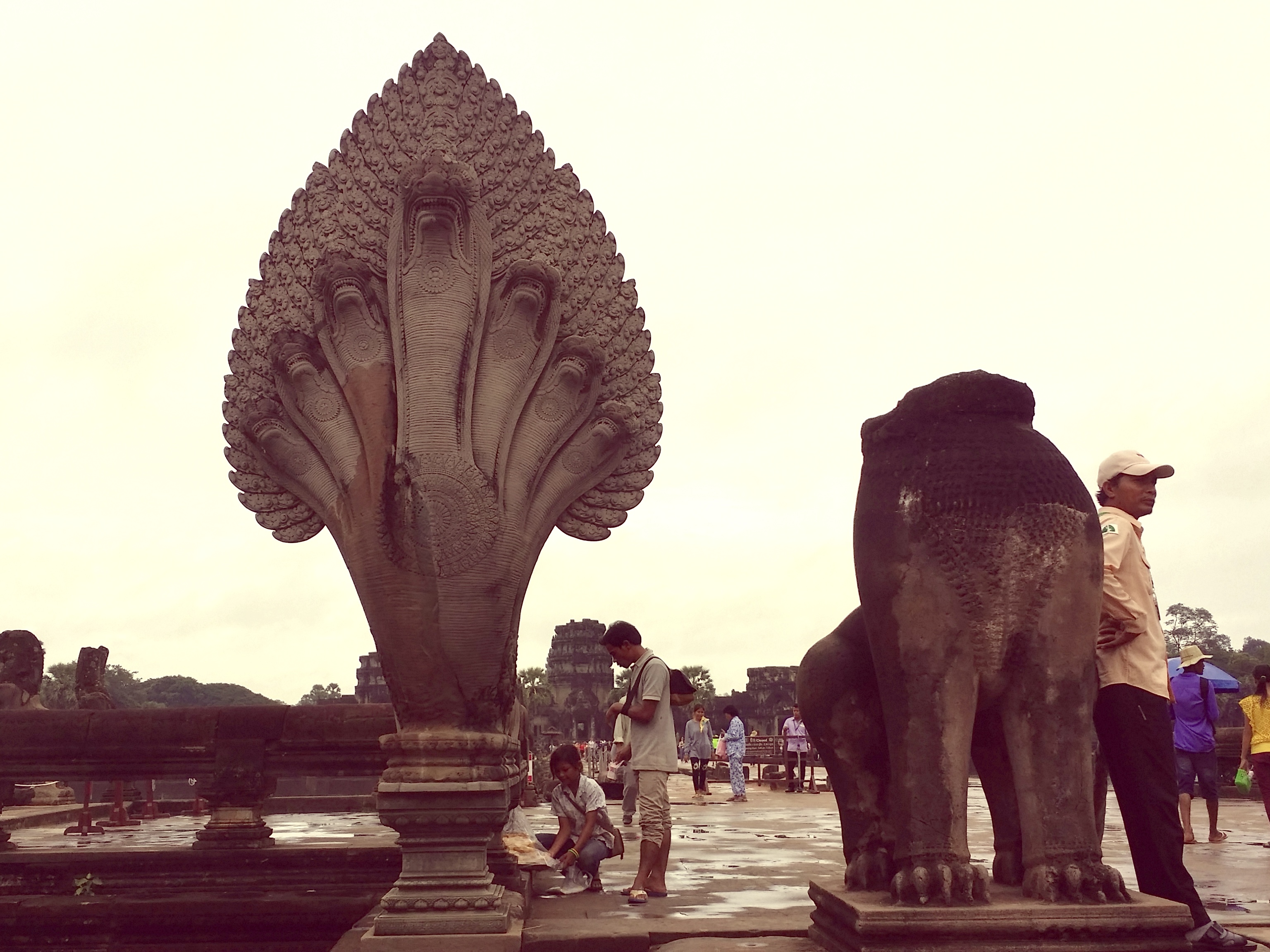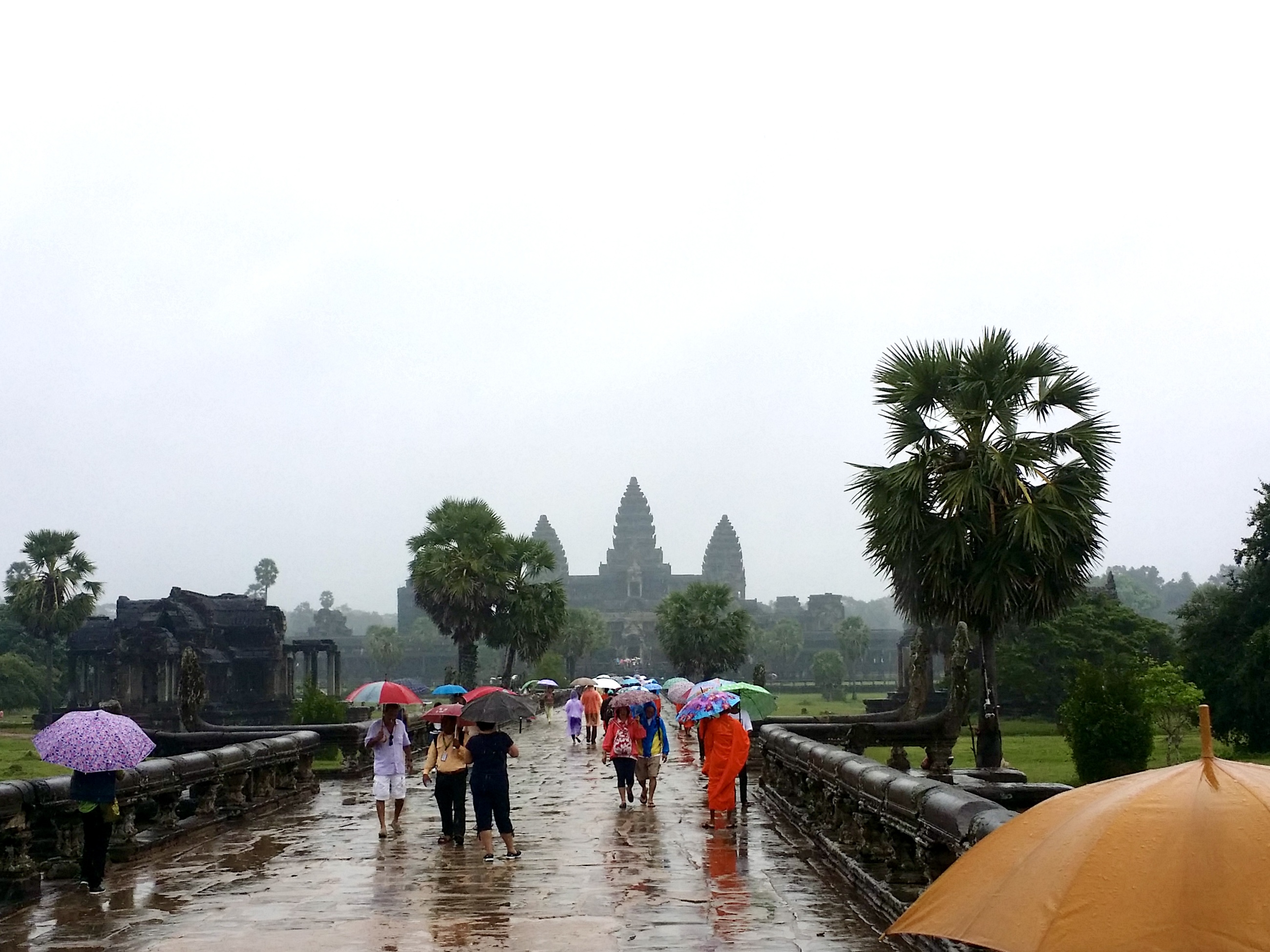 앙코르 와트는 캄보디아 씨엠립의 작은 마을에서 4킬로미터 거리에 있어요. 폭 200m의 해자를 건너는 신도(神道)에는 여전히 부슬비가 내렸습니다.