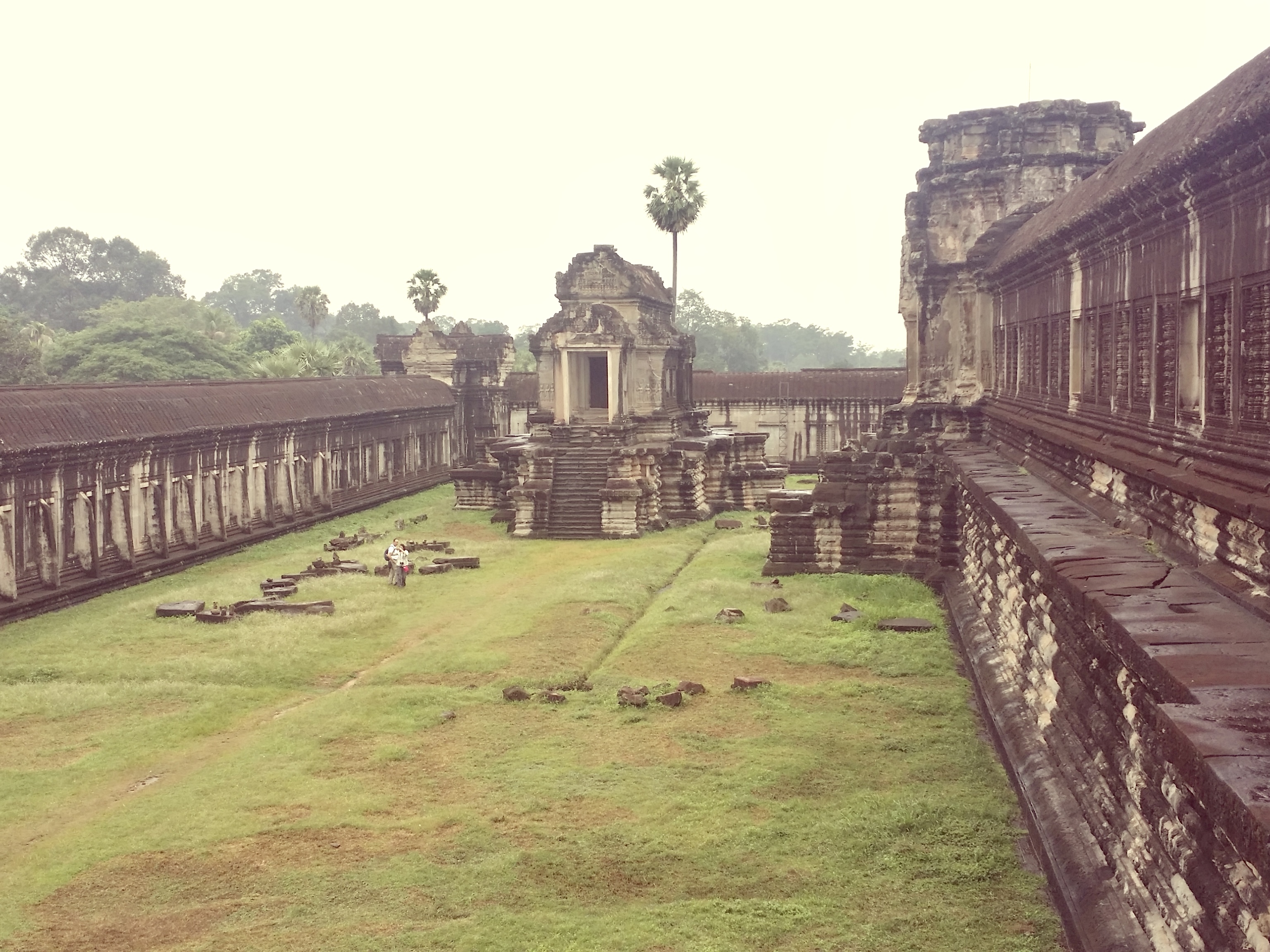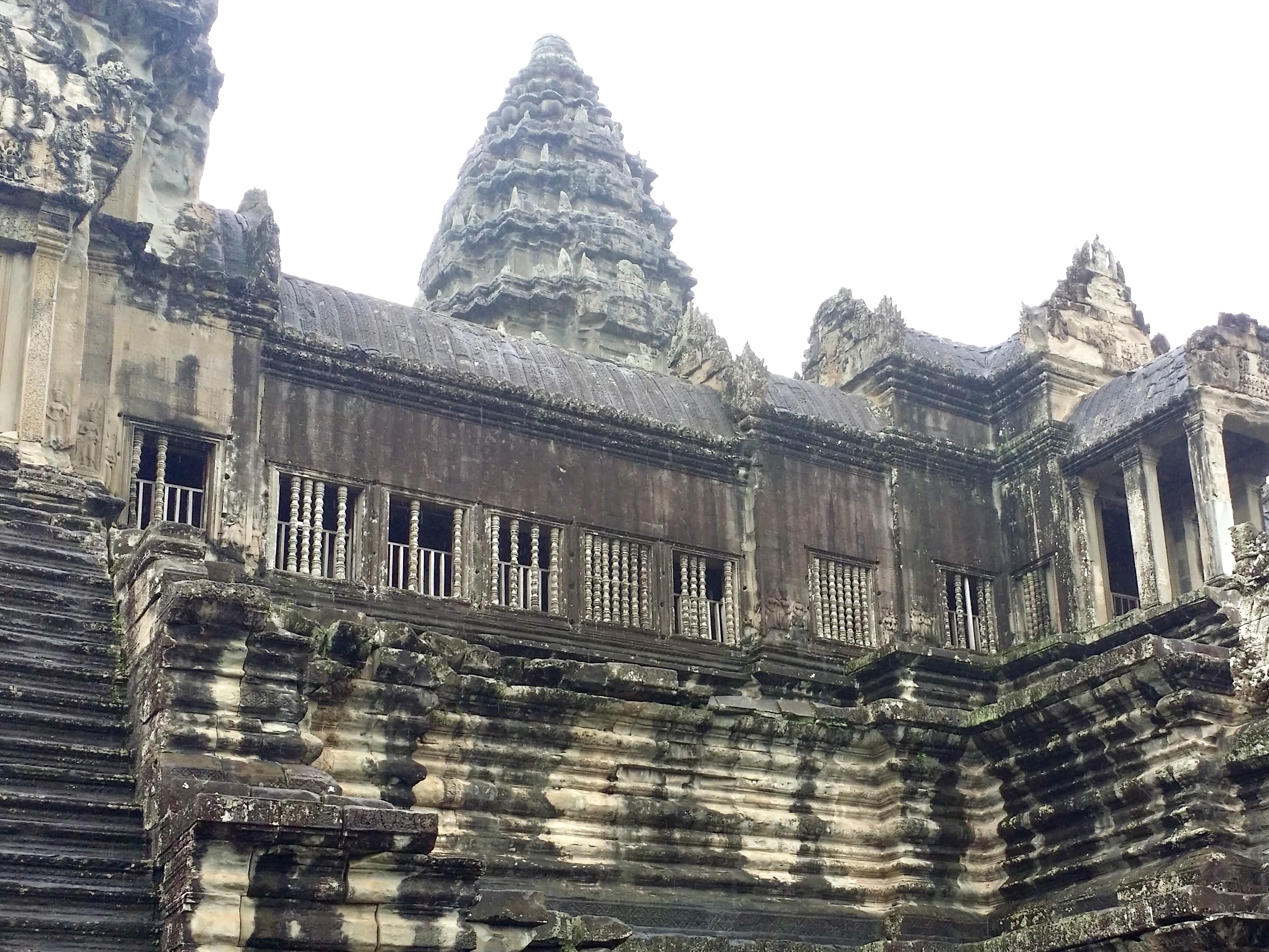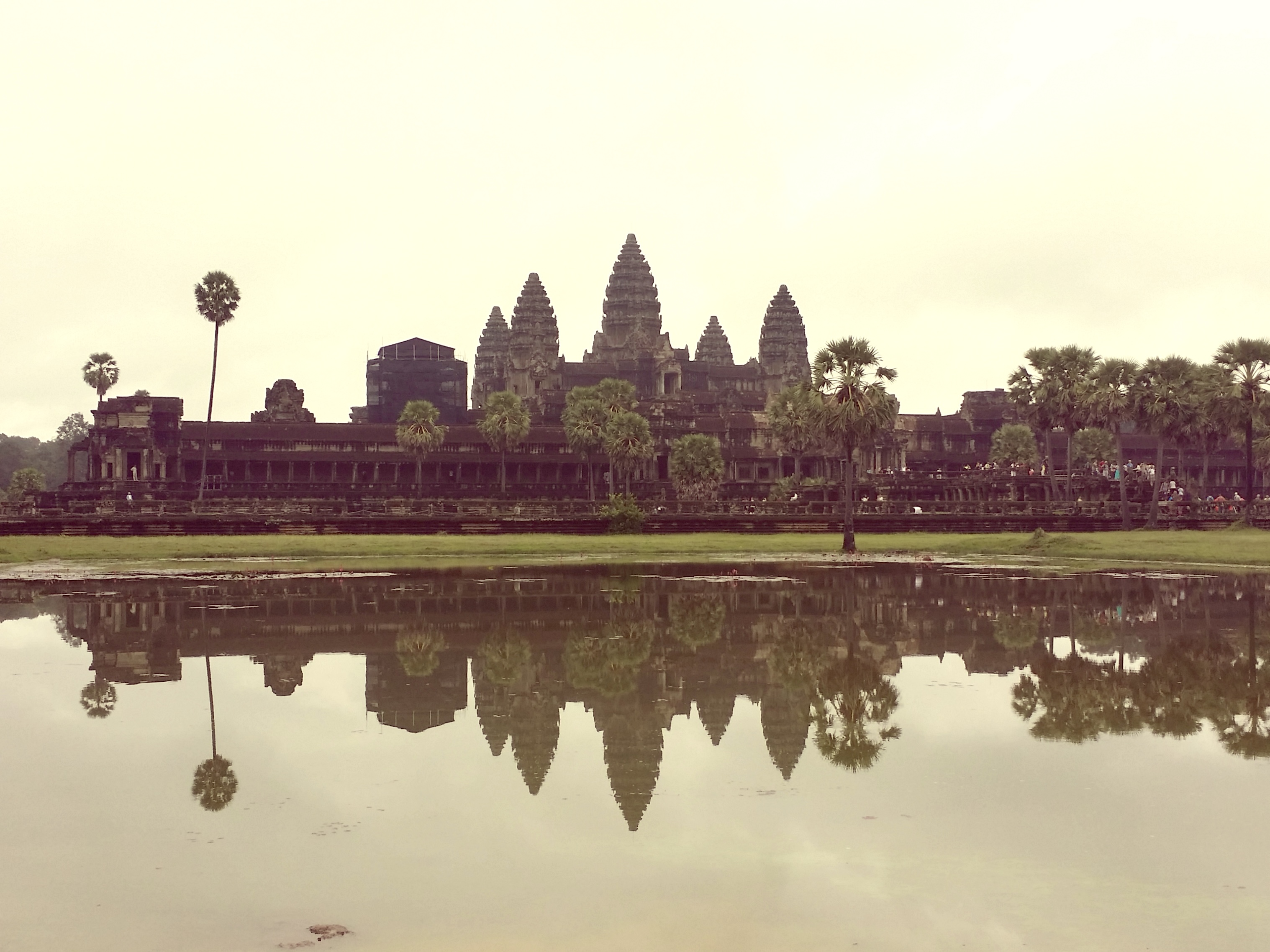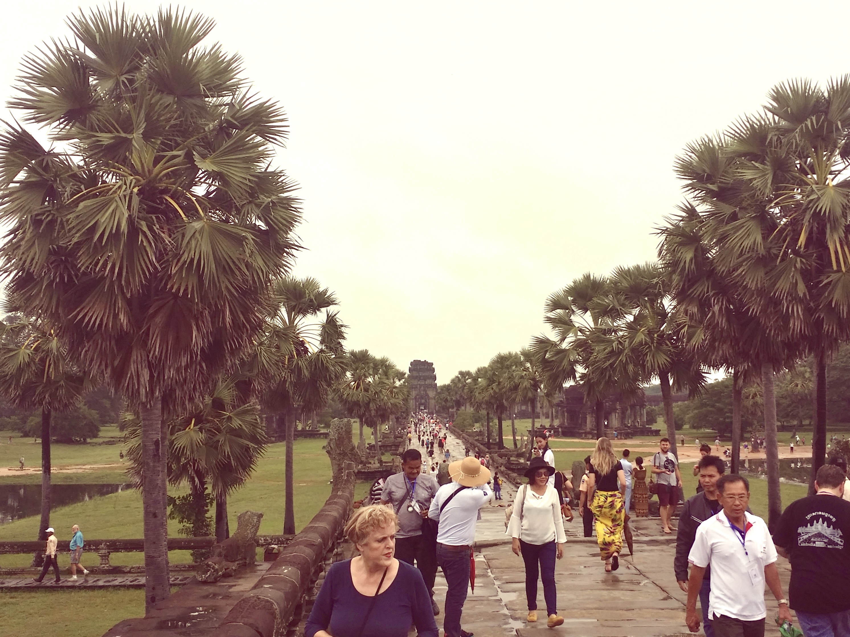 앙코르 와트는 캄보디아 씨엠립의 작은 마을에서 4킬로미터 거리에 있어요. 폭 200m의 해자를 건너는 신도(神道)에는 여전히 부슬비가 내렸습니다.