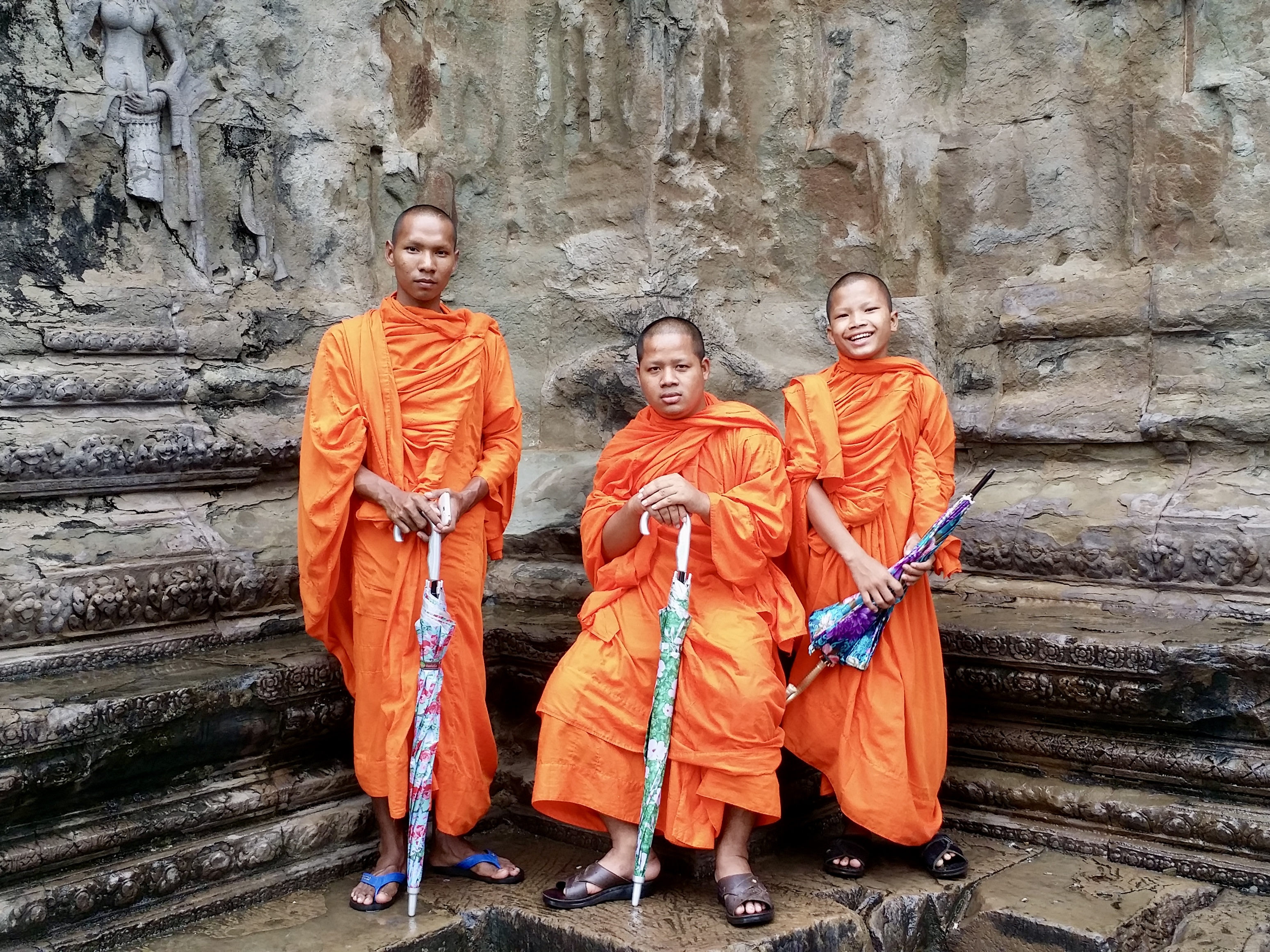 성소 아래에서 캄보디아 승려들을 만났습니다. 사진을 찍고 싶다고 했더니 기꺼이 포즈를 취해 주었어요. 환하게 웃는 동승의 미소에서 마음속에 쌓인 먼지가 한꺼번에 날려가는 느낌입니다.