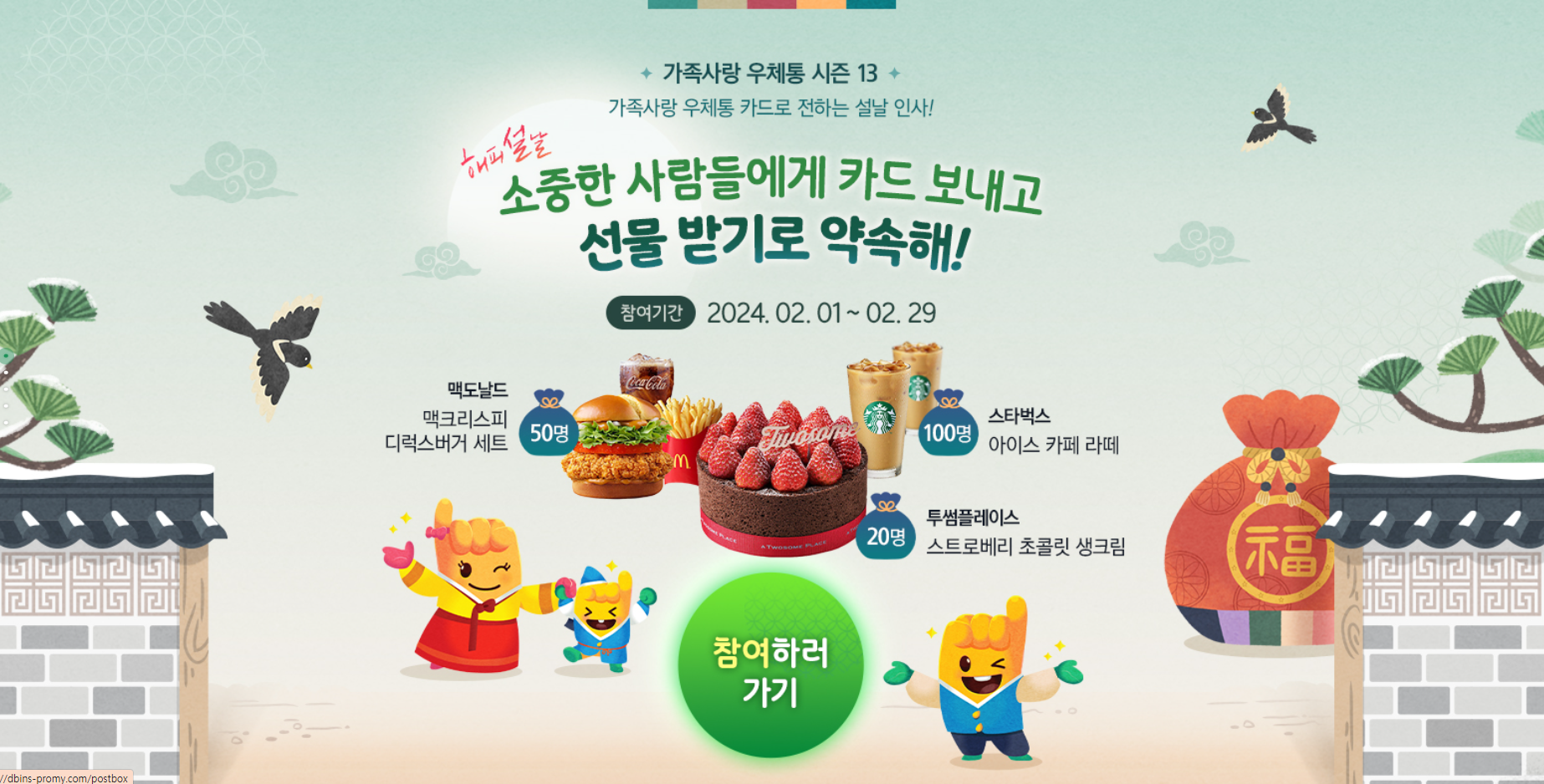 가족사랑 우체통 카드로 전하는 설날 인사소중한 사람들에게 카드를 보내면 선물을 드려요 !