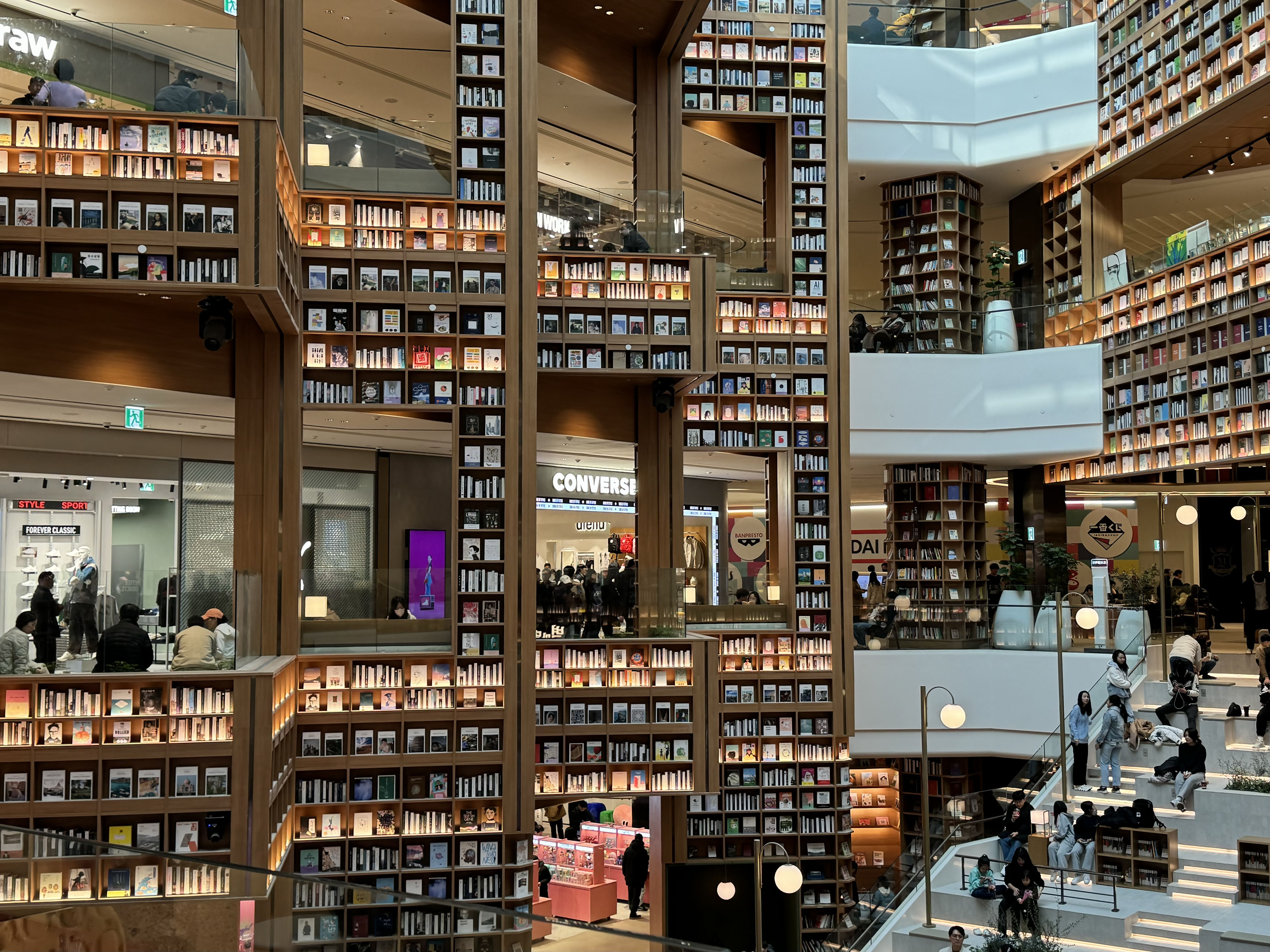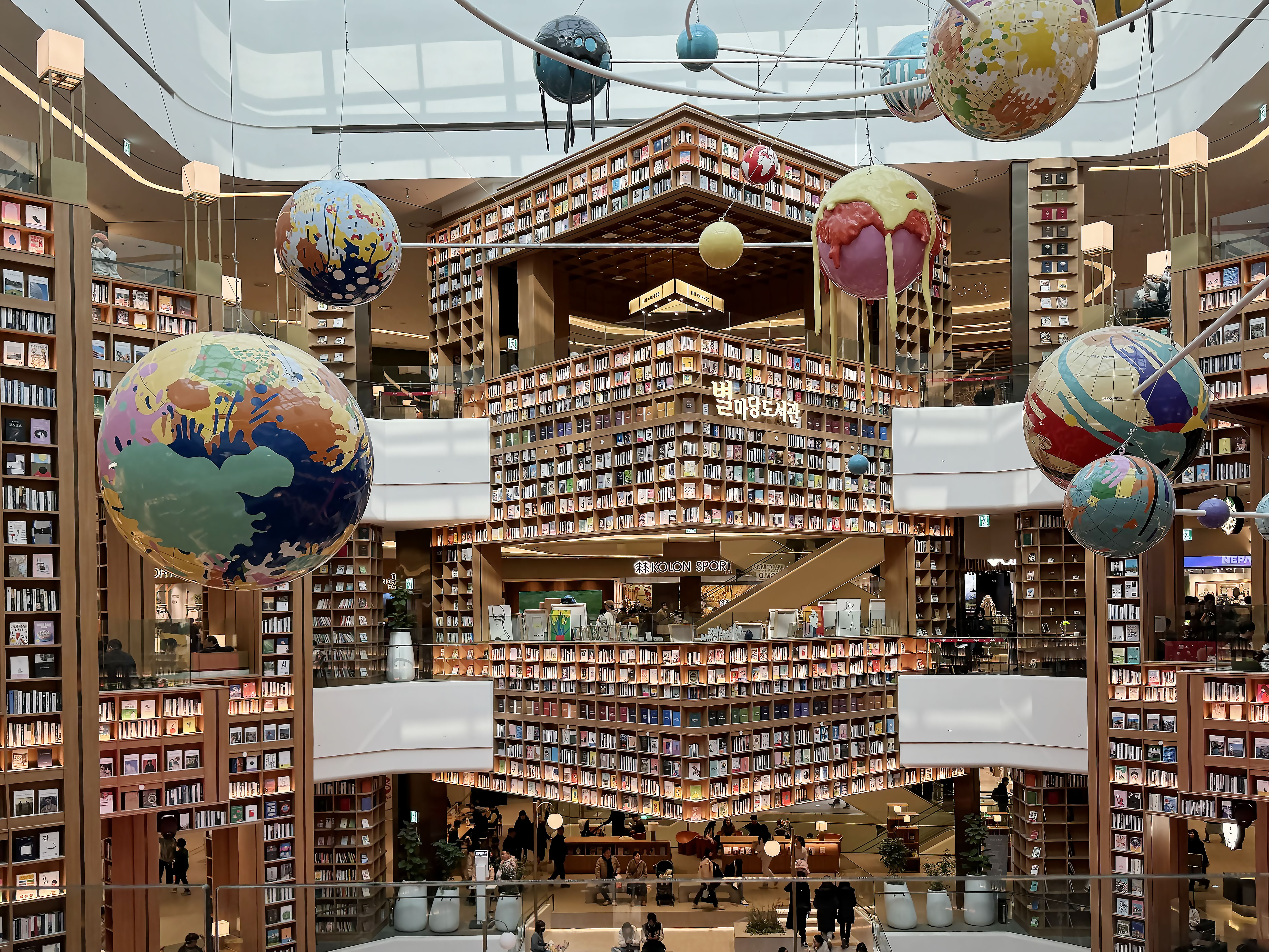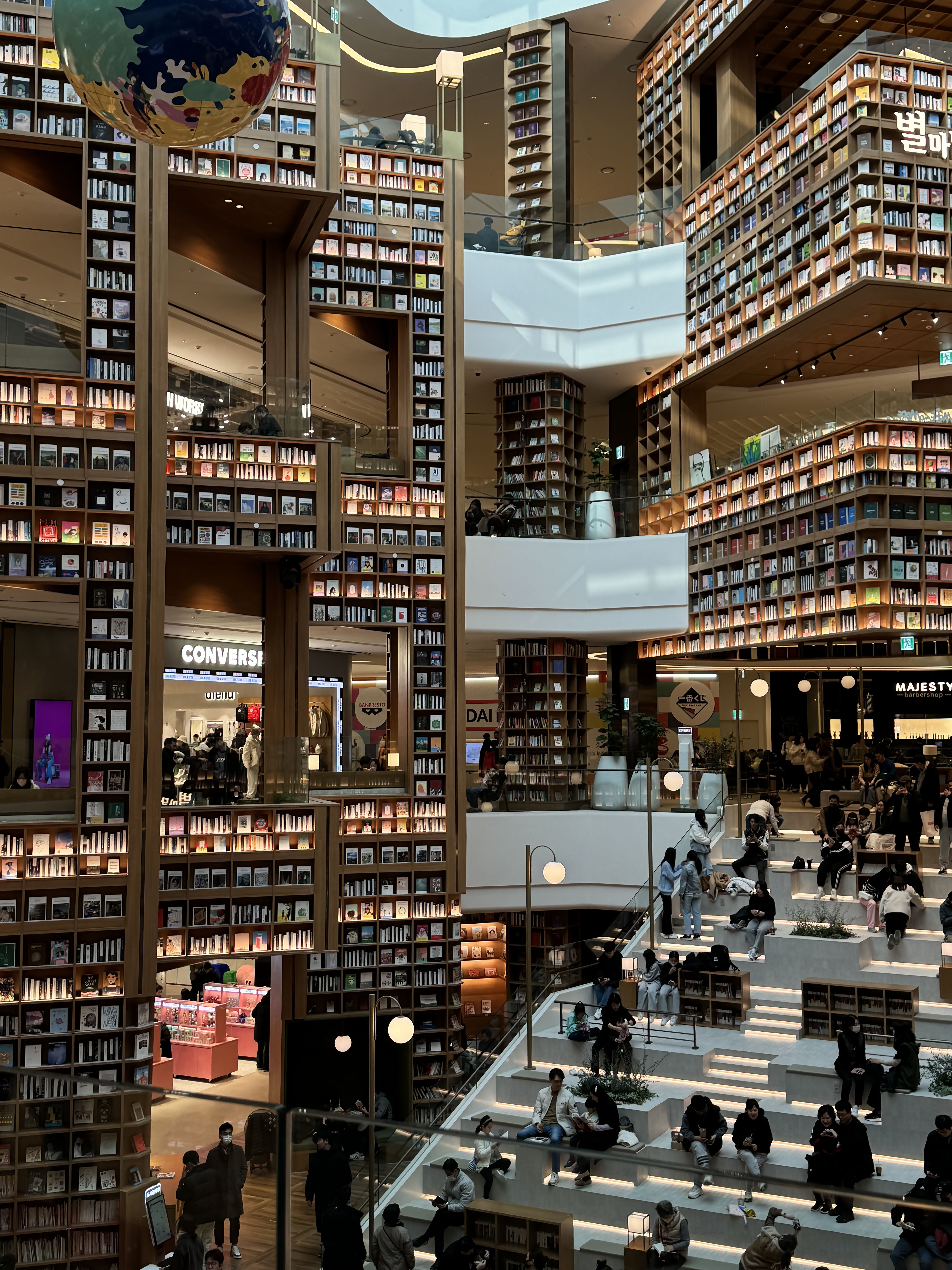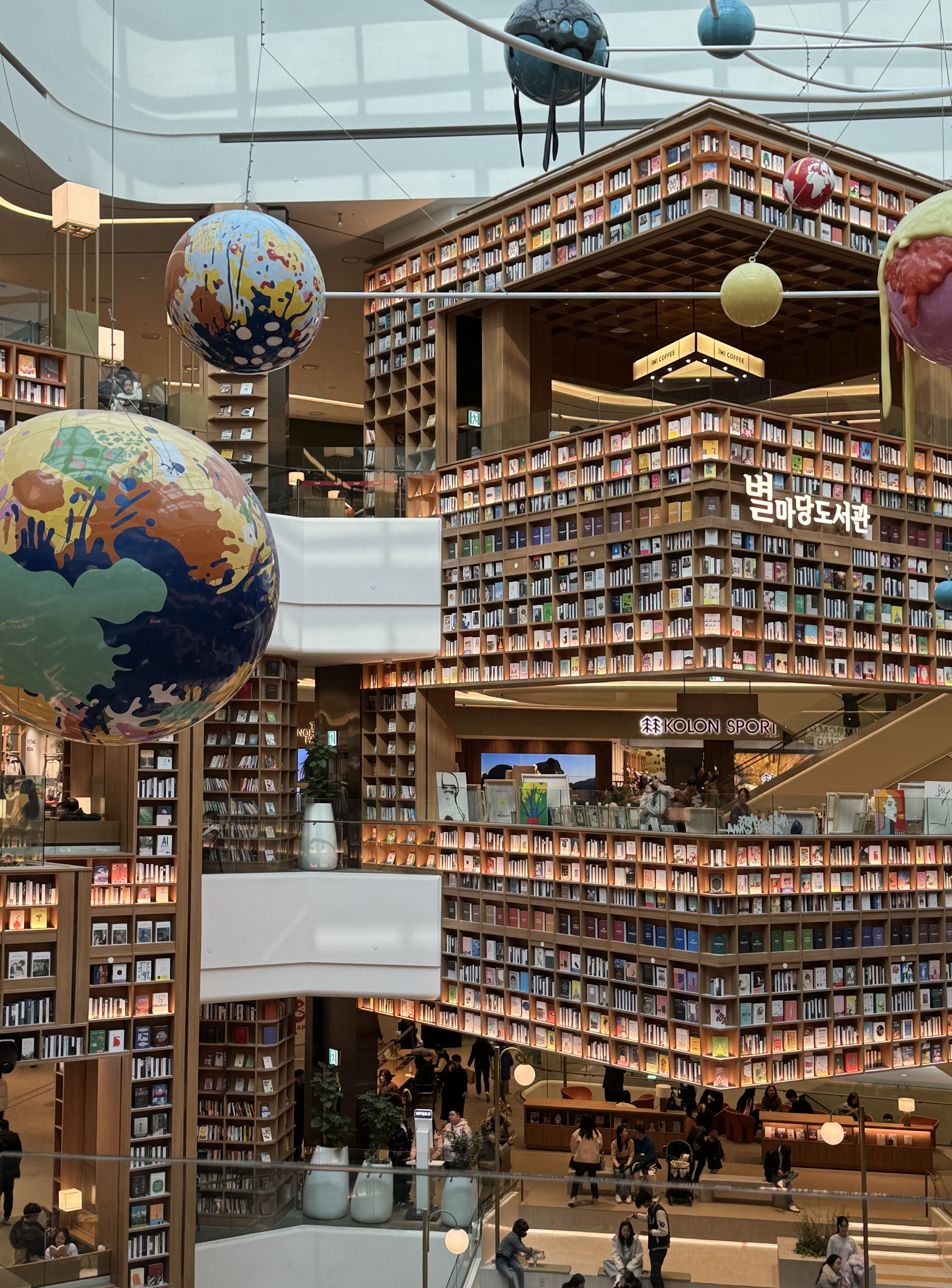 4층에서 7층에 걸쳐 스타필드의 가장 중앙에 자리한 별마당 도서관은 특유의 경계를 무너뜨리고, 집중시킵니다. 어디에서도 시선이 집중되는 이 공간은 앉아서 책을 읽거나 누군가를 기다리는 약속의 장소로도, 또는 발코니에서 내려다보는 즐거운 볼거리로도 역할을 톡톡히 해내고 있었습니다. 특정 요일에는 소울풀 재즈 콘서트부터 다양한 분야의 전문가들이 들려주는 스페셜 토크 콘서트도 준비되어 있으니 궁금하신 분들은 홈페이지 내의 타임테이블을 찾아보시는 걸 추천드립니다.