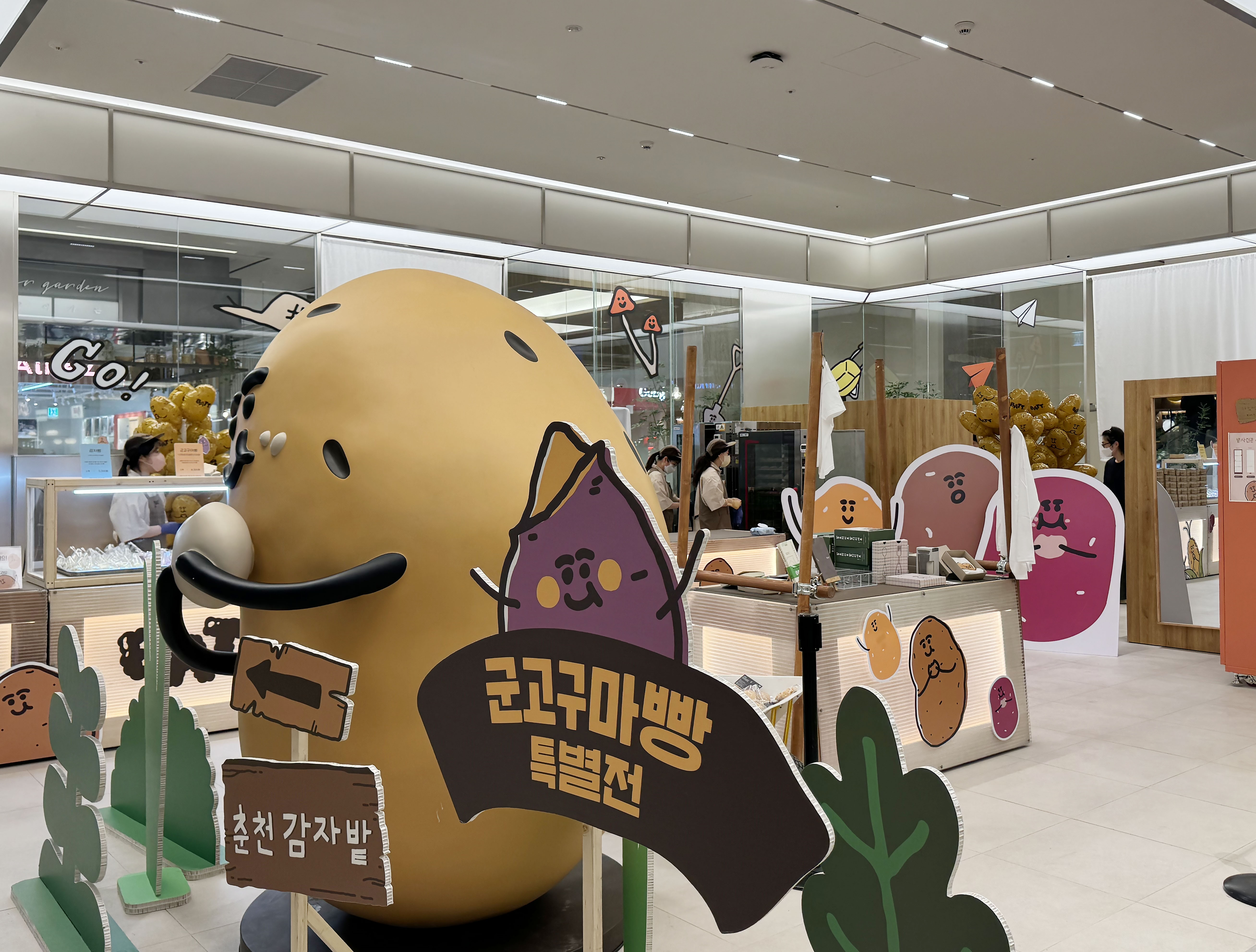춘천까지 가서 먹거나 배달시켜야 했던 감자밭도 팝업 부스로 들어와 있었는데요. 요즘에는 구황작물 친구들인 고구마와 군 옥수수 맛도 출시되었답니다. 요즘 MZ 들의 흥미를 잡아끄는 맛집들, 줄 서서 먹어야 했던 디저트 브랜드들이 총출동해 있고, 주기적으로 로테이션 할 예정이라고 하니 데이트 코스로도 손색없는 것 같습니다.