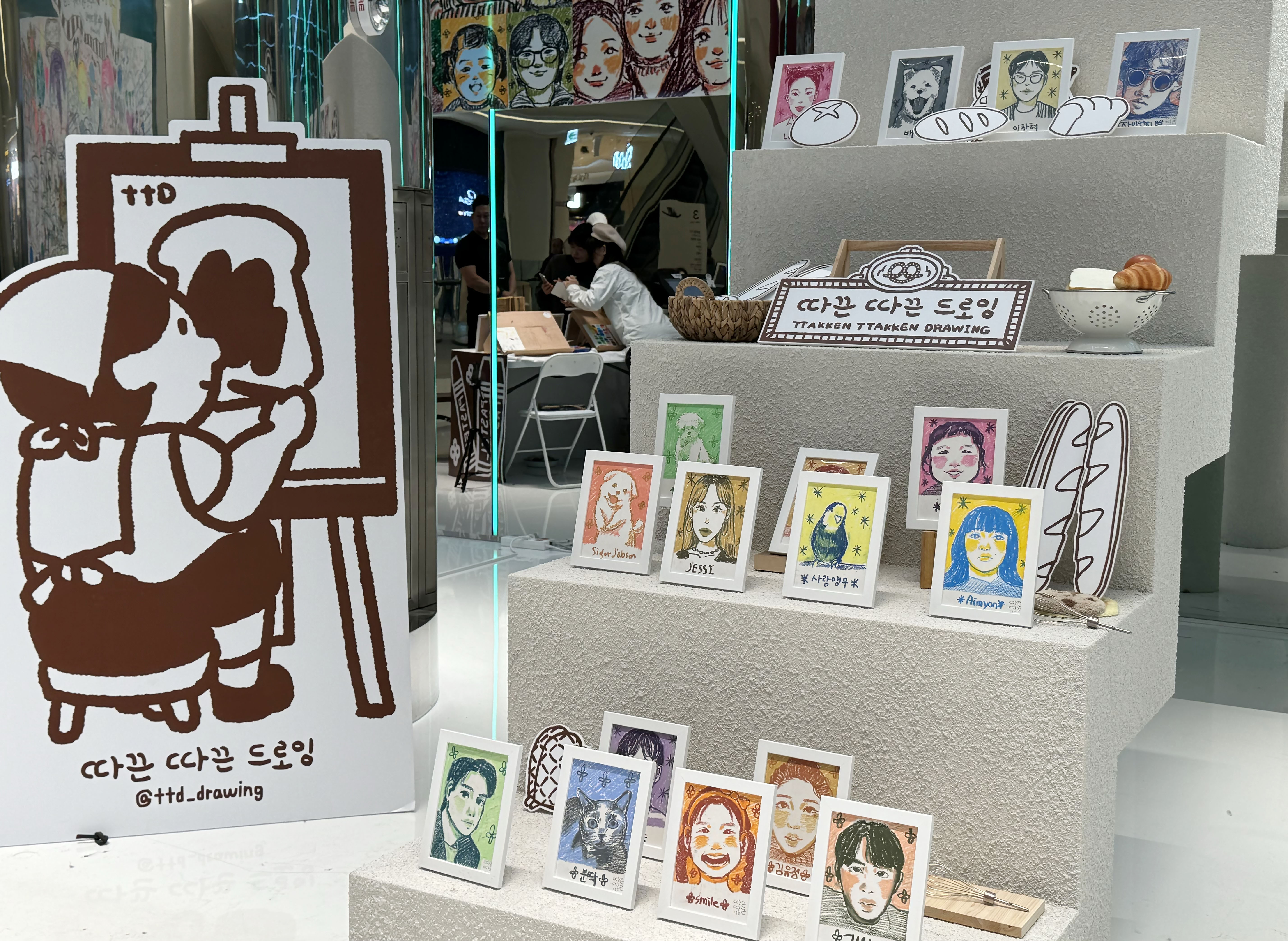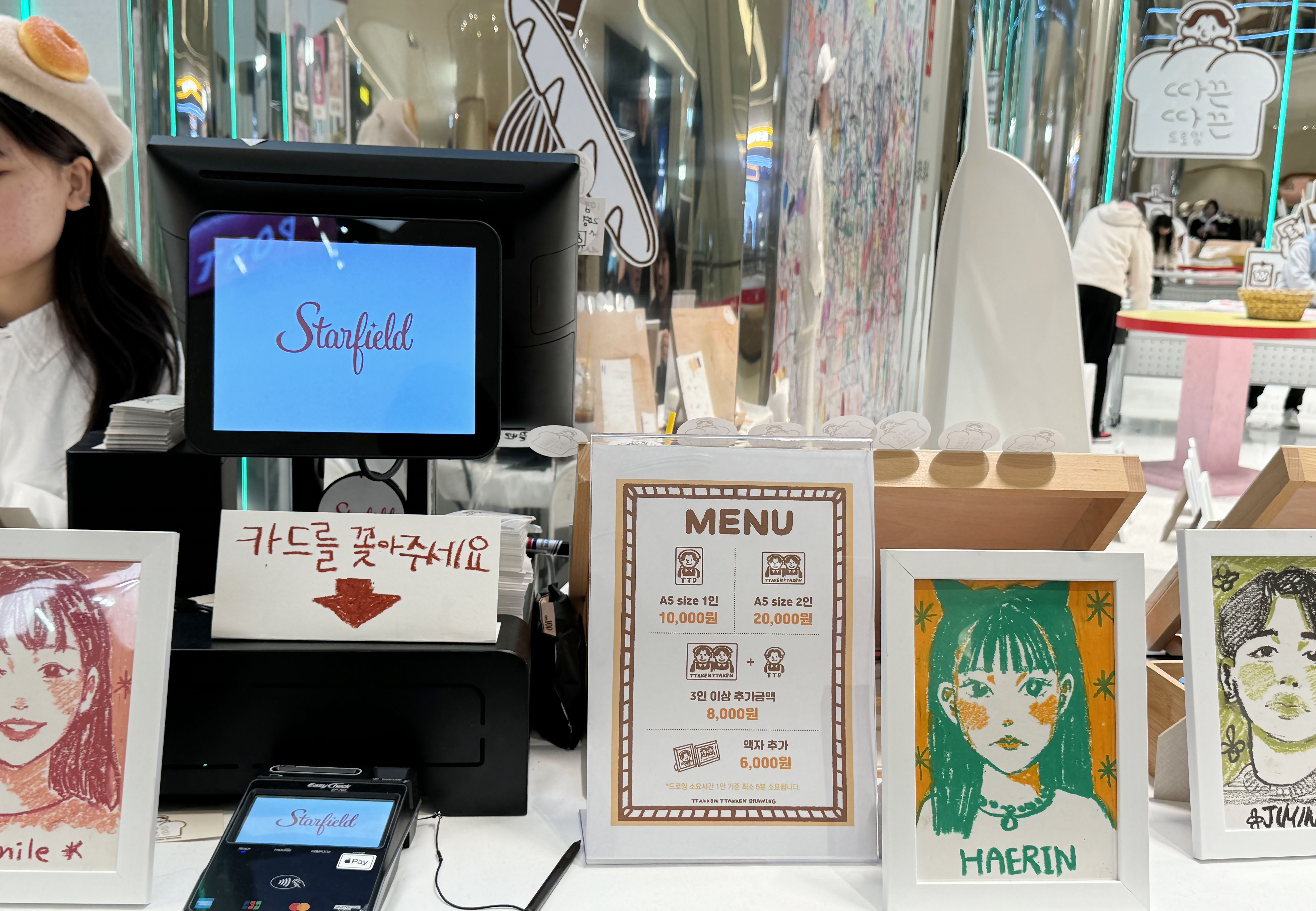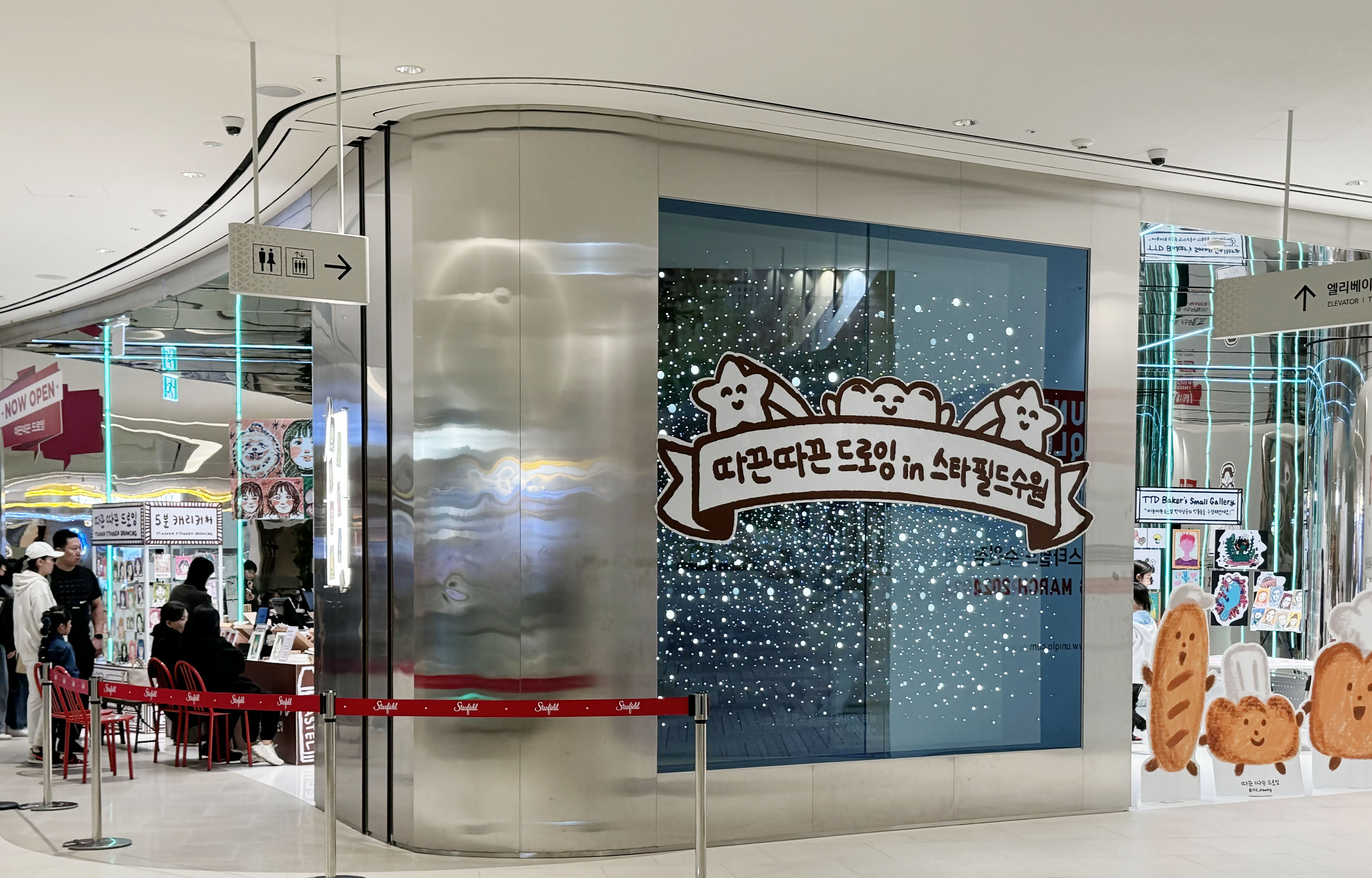 가족이나 친구와 또는 데이트로 스타필드 수원을 방문해 특별한 기념품을 남기고 싶다면, 4층의 따끈따끈 드로잉 화실을 찾아가 보세요. 2월까지 일부 운영되는 팝업으로 5분 정도의 시간을 들여 캐리커처를 그려 줍니다. 보통 캐리커처 하면 생각나는 흑백의 그림체가 아닌 알록달록 크레파스를 이용해 그림이 그려지다 보니 조금은 더 따뜻하고 귀여운 느낌의 결과물들이 탄생합니다. 특별한 경험을 하고 싶다면 가볍게 방문해 보시는 것도 이색적인 시간일 것 같습니다.
