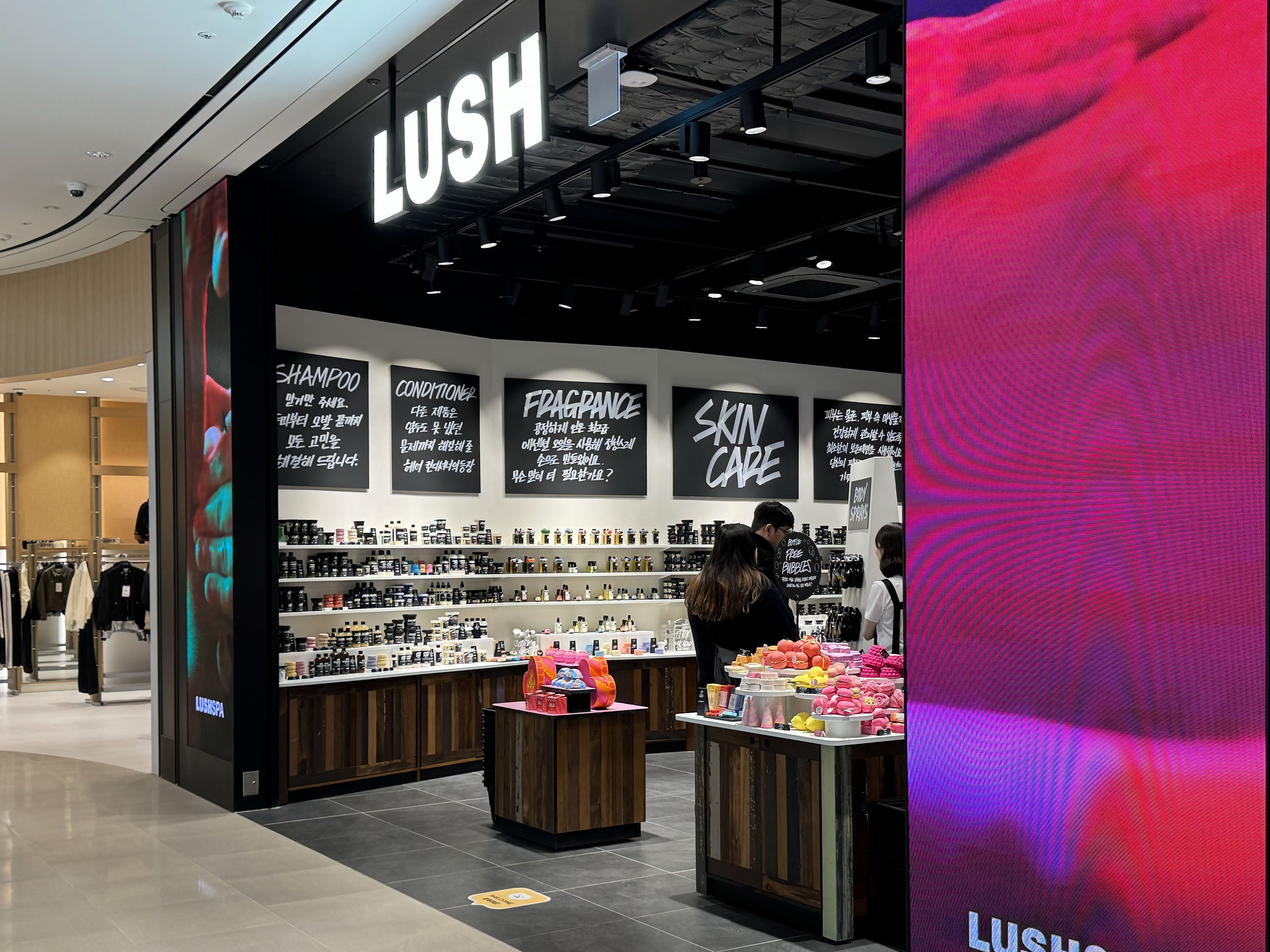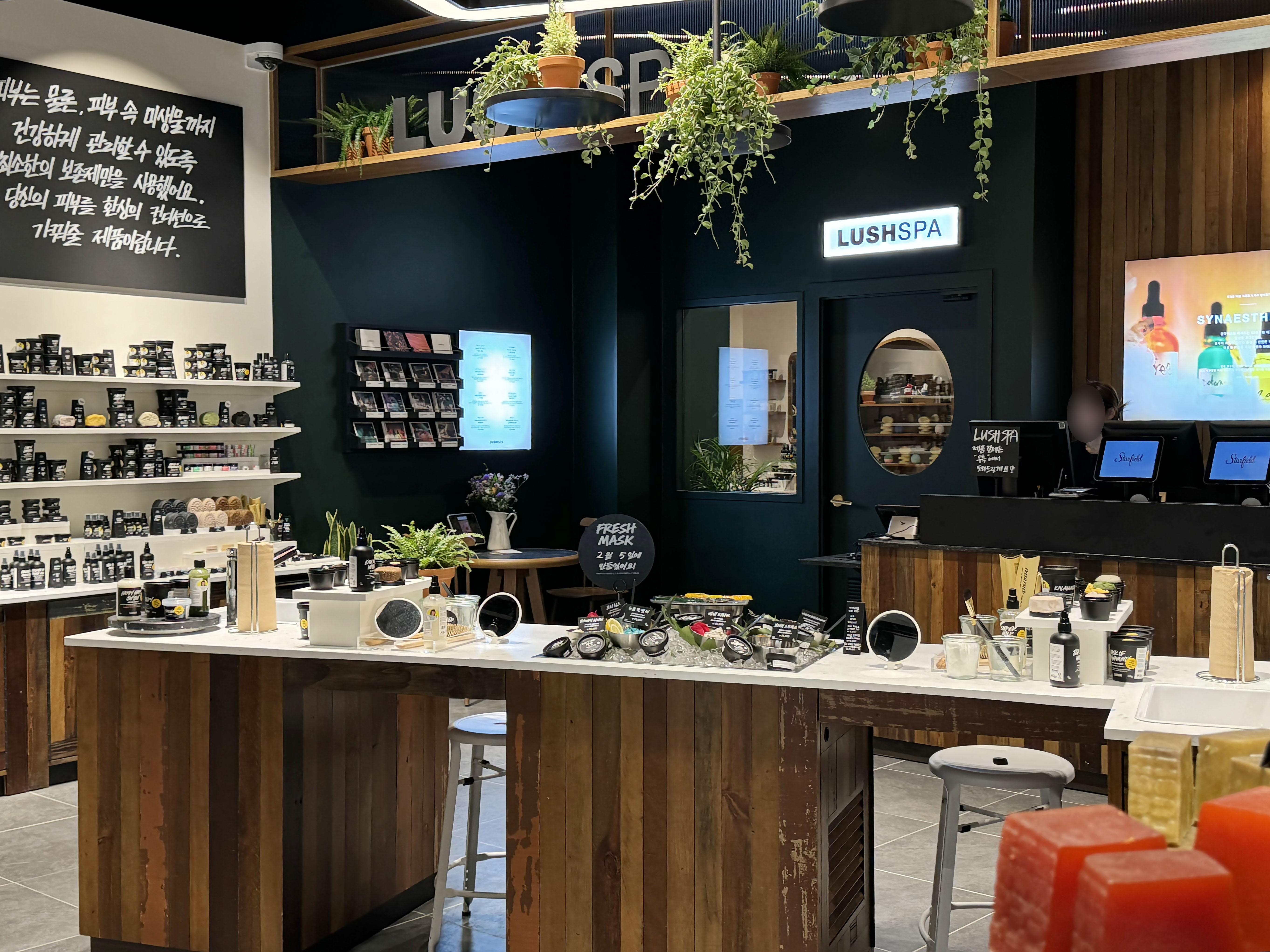 일반 매장과는 달리 러쉬 스파를 경험할 수 있는 러쉬 스타필드 수원점 그리고 올리브영과 시코르 역시 자리해 있기 때문에 사려던 쇼핑 리스트를 한곳에서 해결할 수 있다는 것도 복합 쇼핑 공간의 장점이죠.