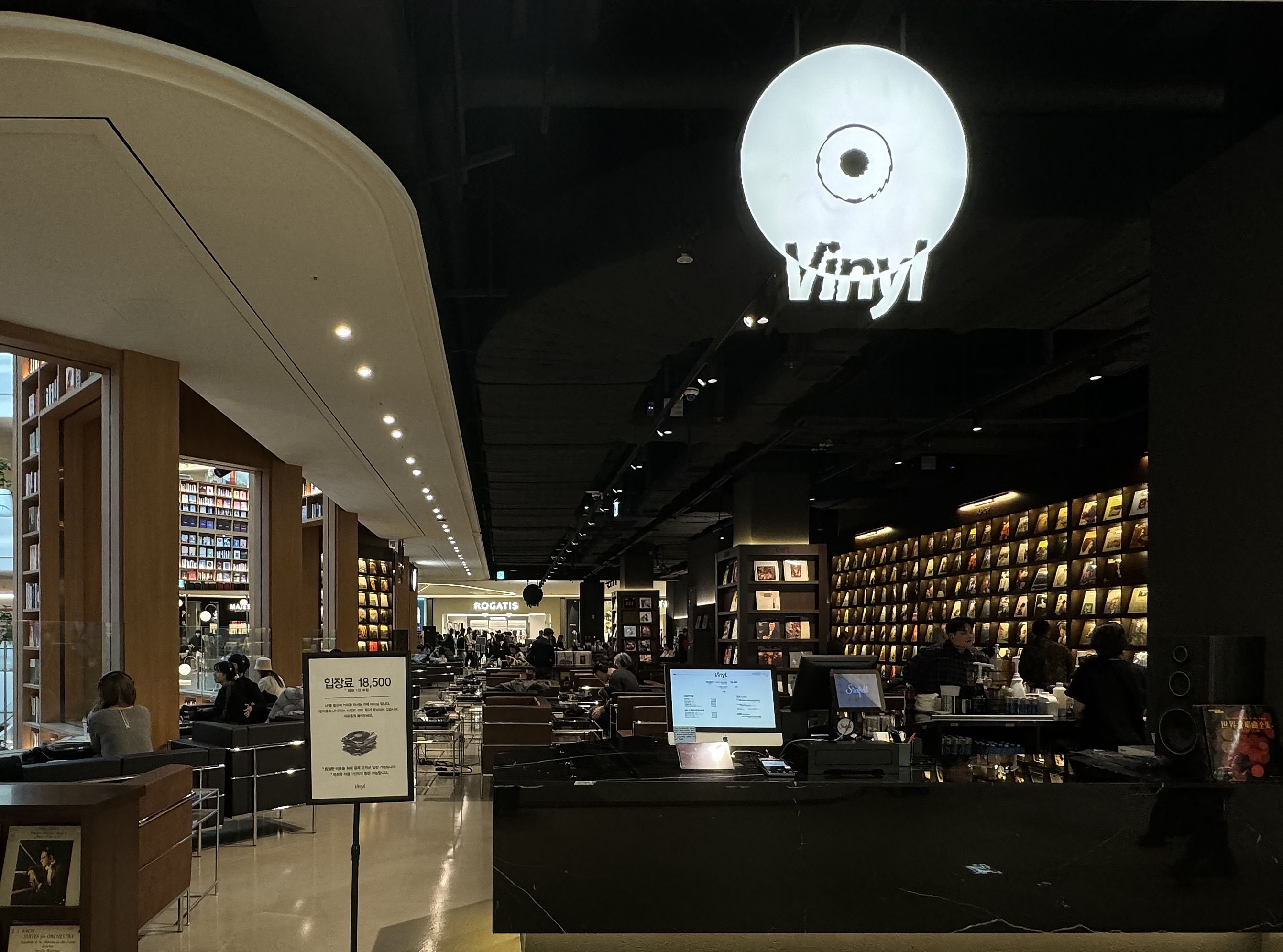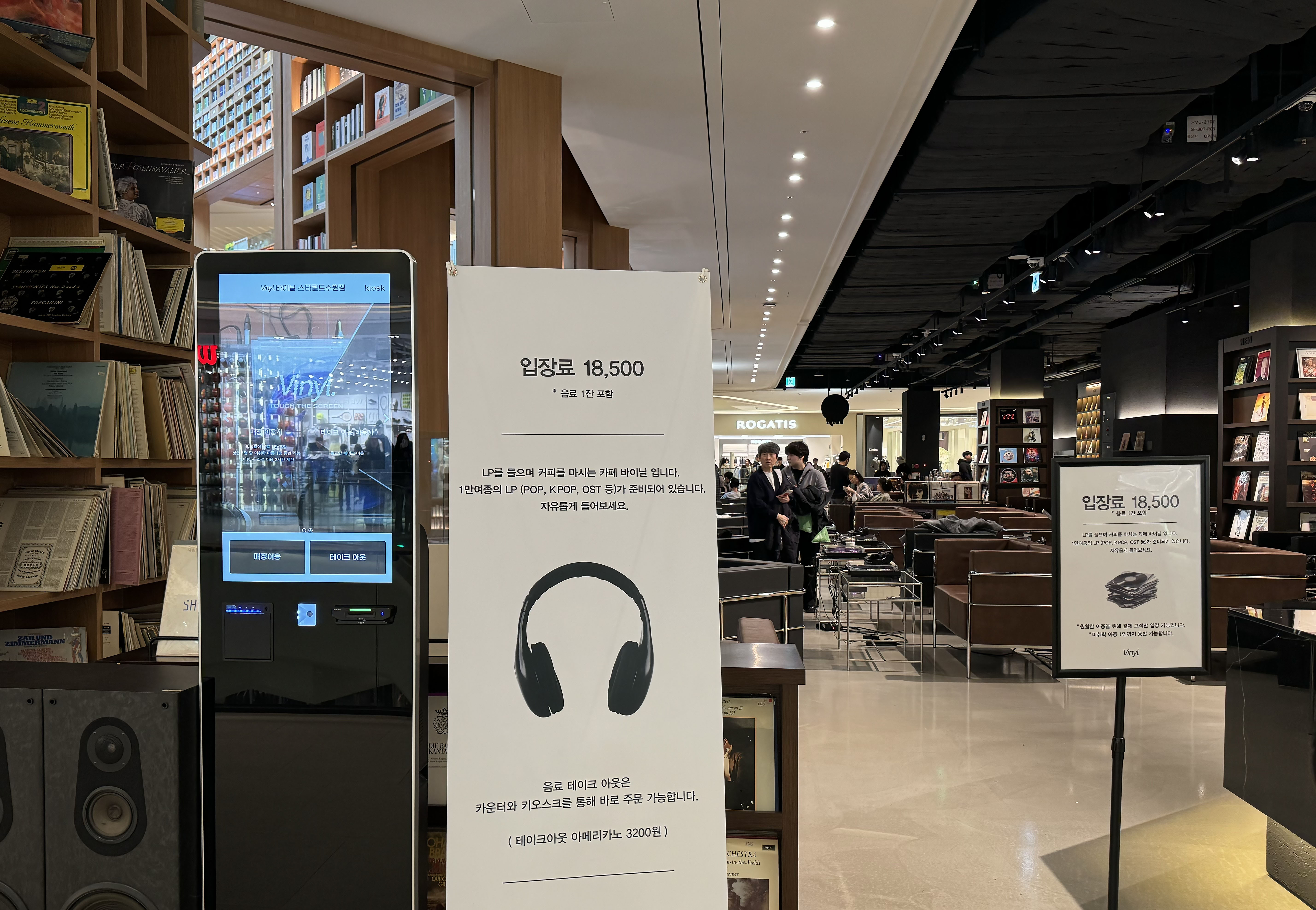 별마당을 발코니에 두고 음악을 즐길 수 있는 LP카페 바이닐을 이용해 보세요. 1인 18,000원의 입장료에는 커피가 한 잔 포함되어 있는데요. 음료를 마시며 가장 안락하고 편안해 보이는 자리를 골라듣고 싶은 음반을 들어 보세요. 요즘에는 워낙 음원이 좋아 핸드폰으로도 쉽게 들을 수 있는 음악이지만 LP판을 통해 들려오는 소리는 분명 다른 그만의 매력이 있는 것 같아요.