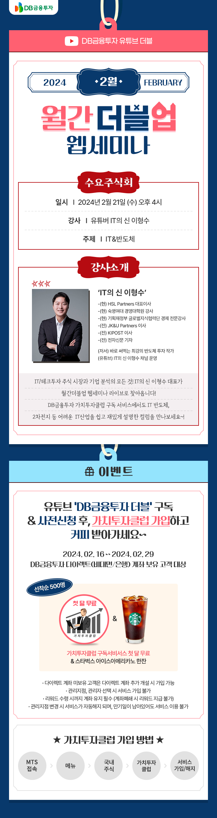유튜브 'DB금융투자 더블' 구독 및 사전신청 시