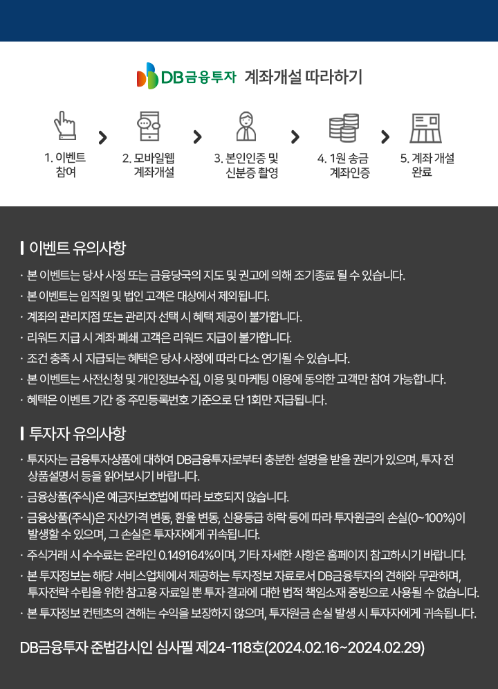 | DB금융투자, 신규/휴먼대상 웰컴 이벤트 (0) | 2024.03.05 |