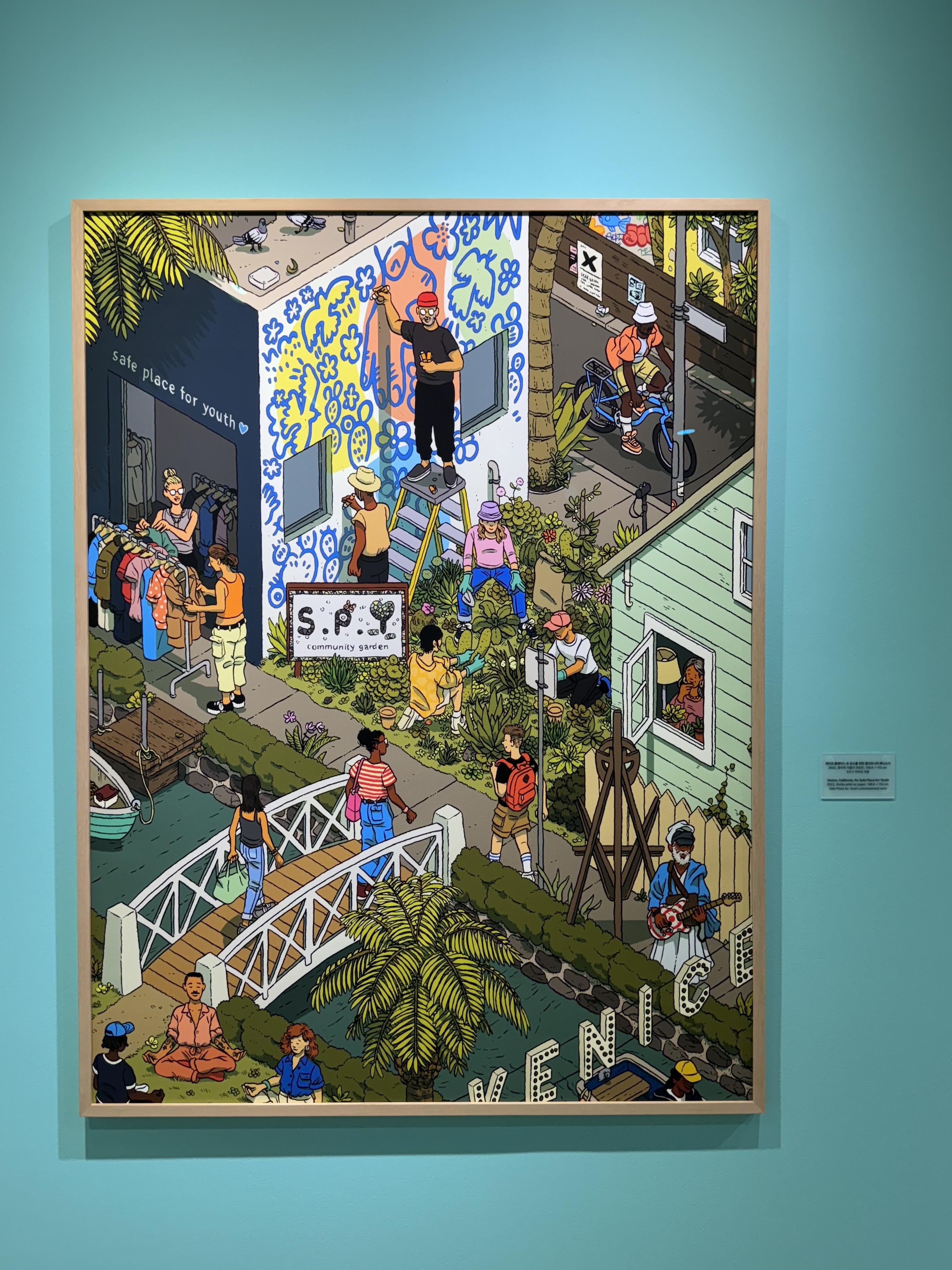 작가만의 독창적인 맥시멀리즘 화풍의 경이로운 디테일과 가독성을 띄는 그의 작품들은 순수미술과 상업 예술의 경계를 자유롭게 넘나듭니다. 단 한 점의 작품 만으로도 작가의 아기자기하고 디테일 넘치는 스타일을 파악할 수 있을 것 같지 않나요? 작품이 한 점씩 더해질수록 지금껏 발견하지 못했던 또 다른 새로운 면모를 발견해 나가는 것 같은 전시였습니다.